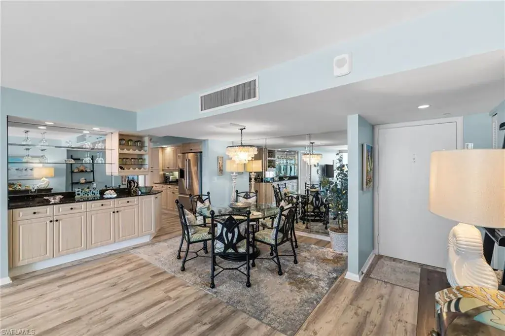Step into a realm of refined indulgence in this turnkey furnished abode. The interior boasts a modern, airy layout with two generous bedrooms both with Gulf views and two pristine bathrooms, creating a welcoming retreat for relaxation or hosting esteemed guests. Marvel at the seamless beauty of luxury vinyl plank flooring underfoot, uniting each space with grace and durability.
