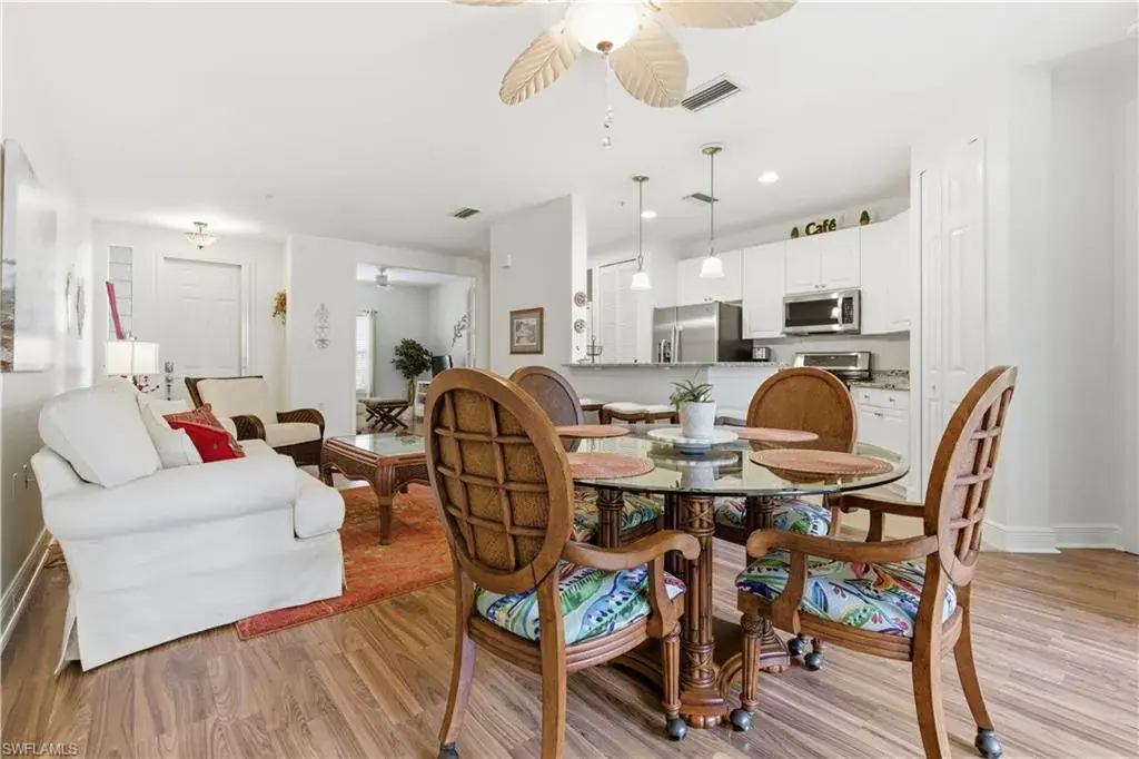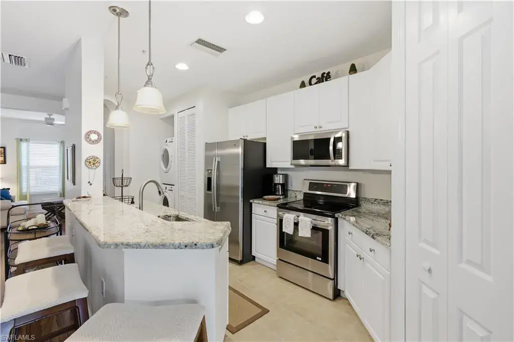Fantastic Naples location just minutes to four of Southwest Florida’s most beautiful beaches, plus shopping, dining, and every convenience imaginable. This immaculate 2 bedroom + den, 2 bath first-floor condo is move-in ready and features durable vinyl plank wood-look flooring, a spacious kitchen with granite countertops, stainless steel appliances, and plenty of cabinet and counter space. Just a short walk away, enjoy all the resort-style amenities Sterling Oaks is known for, including a resort pool and spa with cabana bar for lunch, cold beverages, and happy hour, bocce and pickleball courts, a fitness center with locker rooms and sauna, walking paths, a kids’ play area, and a welcoming on-site restaurant offering Friday dinners, special occasions, and holiday events. Residents also enjoy a very social community atmosphere with year-round activities. Included with your monthly dues are water and sewer, cable TV and internet, and security for peace of mind and hassle-free living. Optional but affordable tennis membership is available with 12 Har-Tru courts, a USTA teaching pro, clinics, lessons, and team play. This is the perfect opportunity to enjoy the relaxed Florida lifestyle in a prime location close to everything!