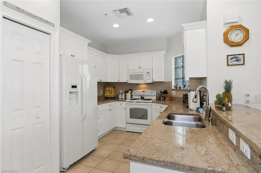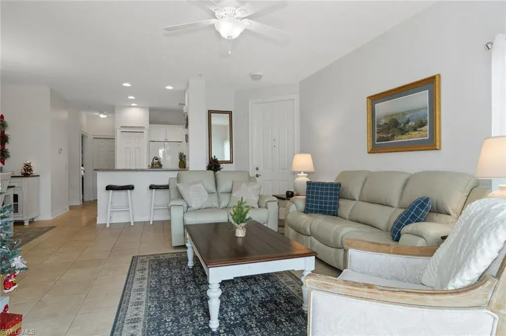 This very well kept 3 bedroom 2 bath first floor end unit condo in Sterling Oaks is a short walk to all the resort style amenities. The open kitchen has granite counter tops and a tiled backsplash. Tile and wood laminate flooring through out. The master bath has newer granite counter tops and tiled shower, plus a walk in closet. Tastefully furnished and ready for its new owners. Enjoy a fantastic Naples location and the resort style amenities of Sterling Oaks. This condo is an easy walk to the tennis courts and all the other fantastic amenities Sterling Oaks has to offer. Amenities included with your purchase are the Jr Olympic pool, hot tub, fitness center, cabana bar where you can enjoy lunch and a cold beverage as well as a happy hour, Florida style clubhouse with restaurant, pickle ball, bocci, kids play area, walking paths and there is an optional tennis membership that has 12 state of the art clay tennis courts, club and league play, clinics and lots of fun and good friends. Great Naples location close to every amenity imaginable. Sidewalks throughout the community!