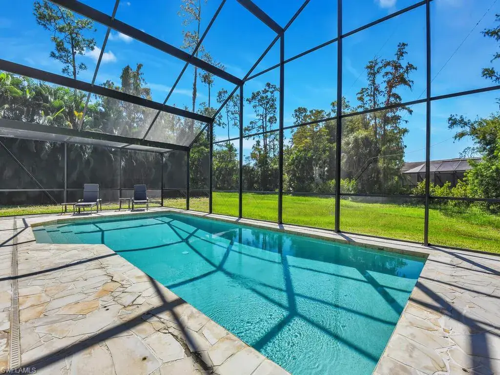 Welcome to this charming two-story pool home nestled in the sought-after community of Tall Pines. Featuring a newer roof (2017), tile flooring (2017), air conditioning units (2017), and hot water heater (2025). This home boasts a bright open living space with high ceilings creating a warm and inviting atmosphere as well as generous bedrooms for the whole family. Enjoy beautiful views of the sunset from the private lanai and large pool- ideal for relaxing or hosting gatherings year-round. Located on a quiet cul-de-sac in a community with low HOA dues, this home combines privacy-with convenience-just minutes away from top-rated schools, shopping, dining, and Naples’ pristine beaches.