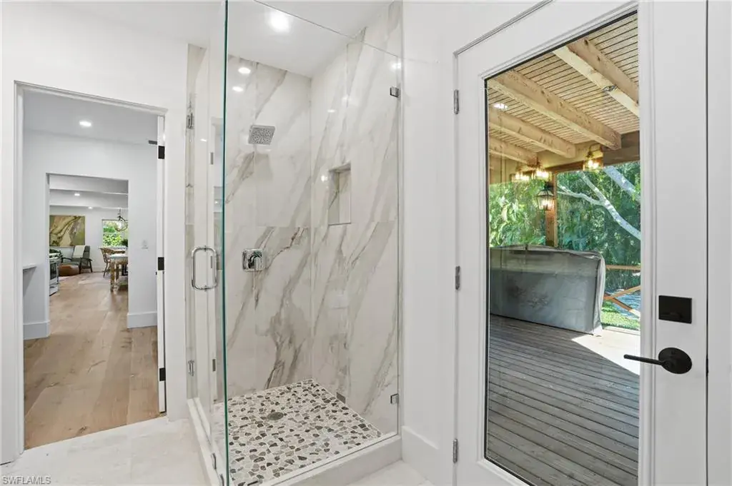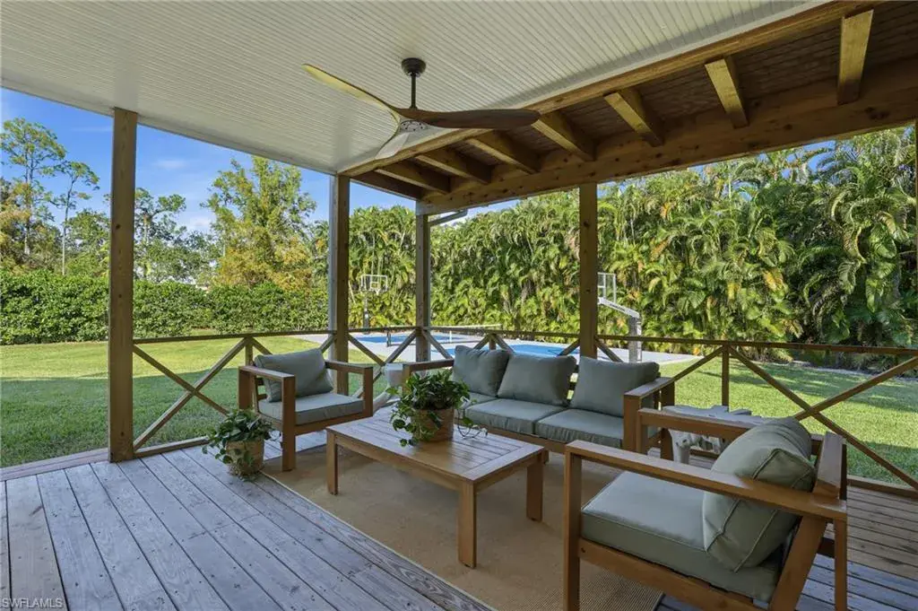 Outdoor living is a major highlight, with a full-length covered back porch, multiple seating and dining zones, and a hot tub overlooking the expansive backyard retreat. With its rare combination of privacy, location, and turnkey readiness, this home offers an exceptional lifestyle in one of Naples’ most coveted neighborhoods.