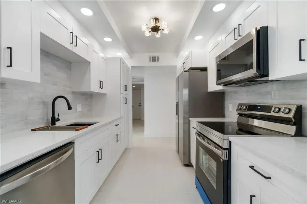soft-close cabinetry, and stylish, contemporary finishes. Whether you’re cooking a gourmet meal or enjoying your morning coffee, this space is designed for both functionality and style. The custom woodwork accent walls in the guest room and owner’s suite add a touch of character and warmth, while the oversized walk-in closet in the master provides ample storage space. Relax or entertain on your private, screened-in lanai, offering tranquil views of a serene greenspace. The attached one-car garage adds convenience, and for those who love outdoor living, the community pool is just steps away from your door. Located in a prime spot within Kings Lake, you’ll enjoy access to exceptional amenities including a 33-acre lake with walking/jogging paths, tennis and pickleball courts, and a community pool with a cabana. With mature trees and shaded walking paths, the neighborhood offers a peaceful, picturesque setting for residents to enjoy. Conveniently close to downtown Naples, the Gulf beaches, shopping, dining, and more, this home offers the perfect balance of style, comfort, and location. Some photos include virtual staging. This property also includes DESIGN SERVICES to make furnishing the home effortless. Design boards and links will convey with the sale.