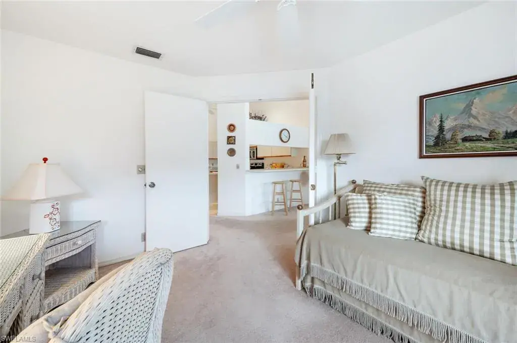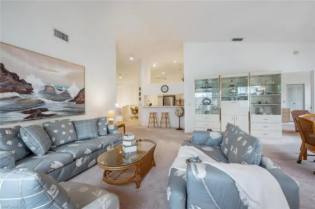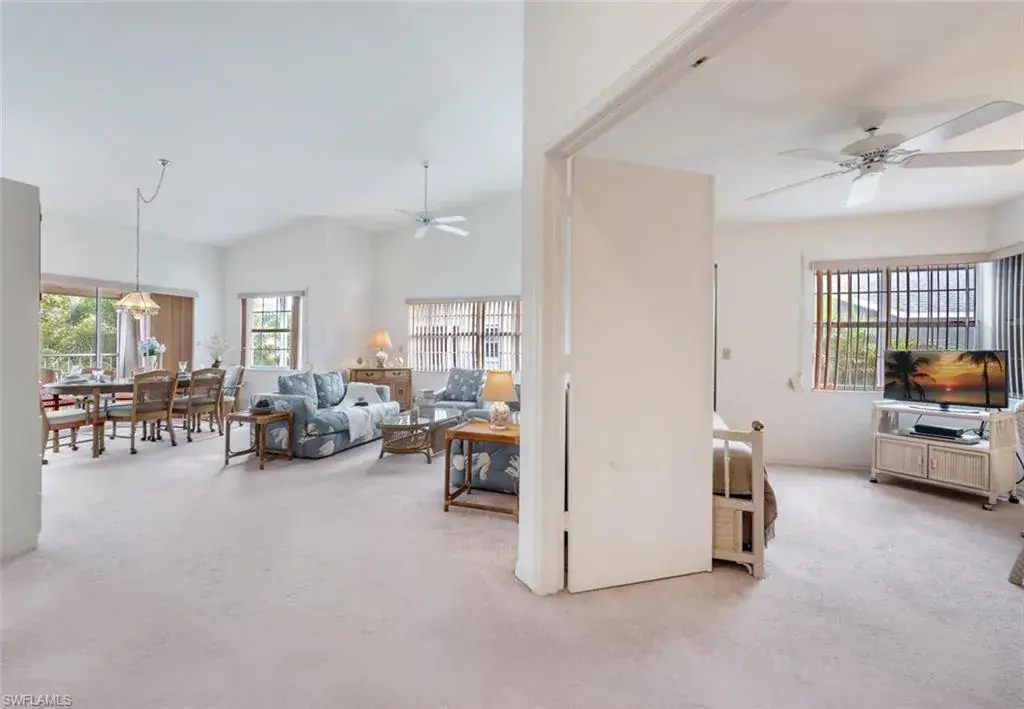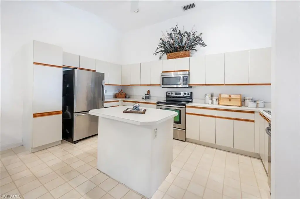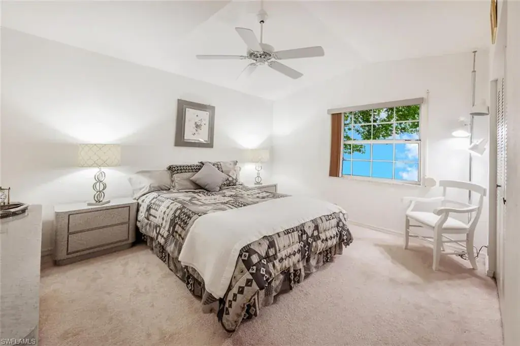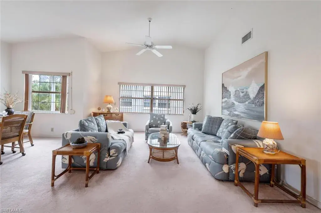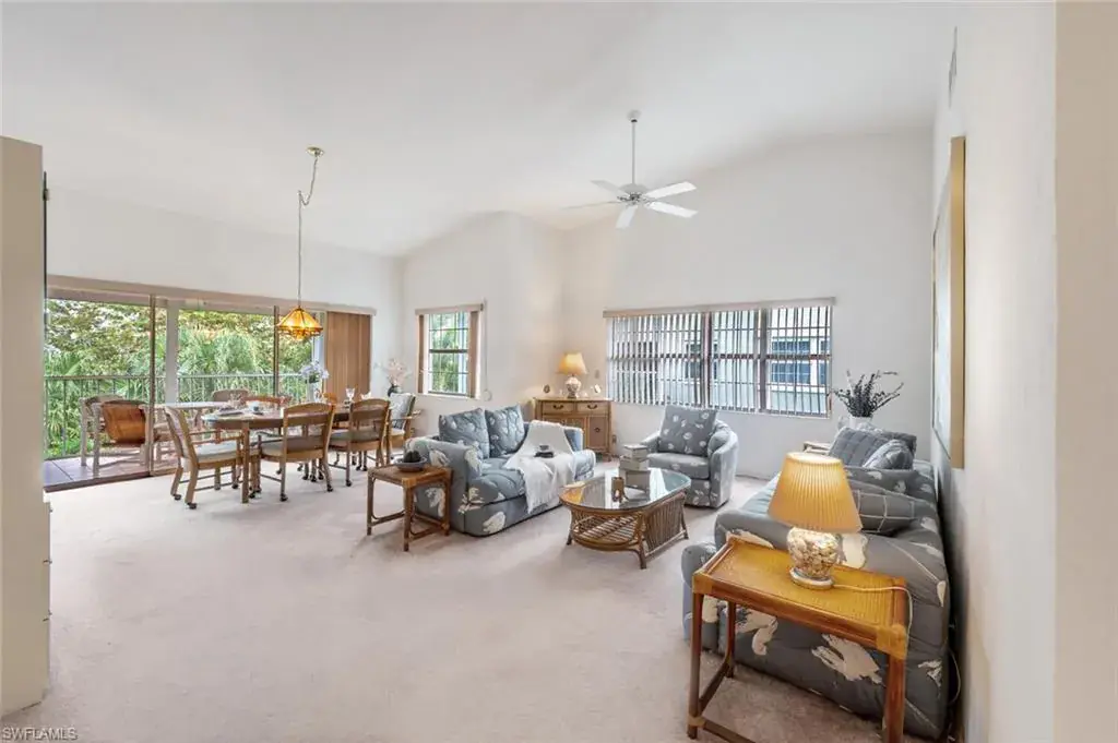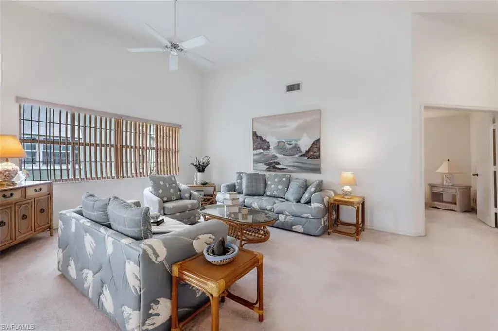 Welcome to this well maintained 3 bedroom, 2 bath coach home in the heart of Kings Lake, ready to begin its next chapter with you. Step inside to an inviting open layout with soaring ceilings, abundant natural light, and plenty of room for both relaxation and entertaining. The split bedroom floor plan offers privacy, while the large primary suite is your own retreat with a walk-in closet and ensuite bath. Two additional bedrooms provide space for family, visiting guests, or even a home office. A bright and functional kitchen flows seamlessly into the dining and living areas, making everyday living and hosting effortless. Enjoy peaceful mornings and breezy evenings on your screened lanai, surrounded by lush greenery that creates the perfect backdrop for Florida living. Just 5 miles from Naples’ sugar-sand beaches and minutes from the world-class dining, shopping, and entertainment of Fifth Avenue, this home delivers the ideal blend of comfort and convenience. Kings Lake also offers walking and biking paths, a sparkling community pool, and a welcoming neighborhood feel that makes every day feel like vacation. Whether you are seeking a seasonal retreat, an investment opportunity, or a full-time home base in paradise, this spacious coach home is waiting for its new story to begin.