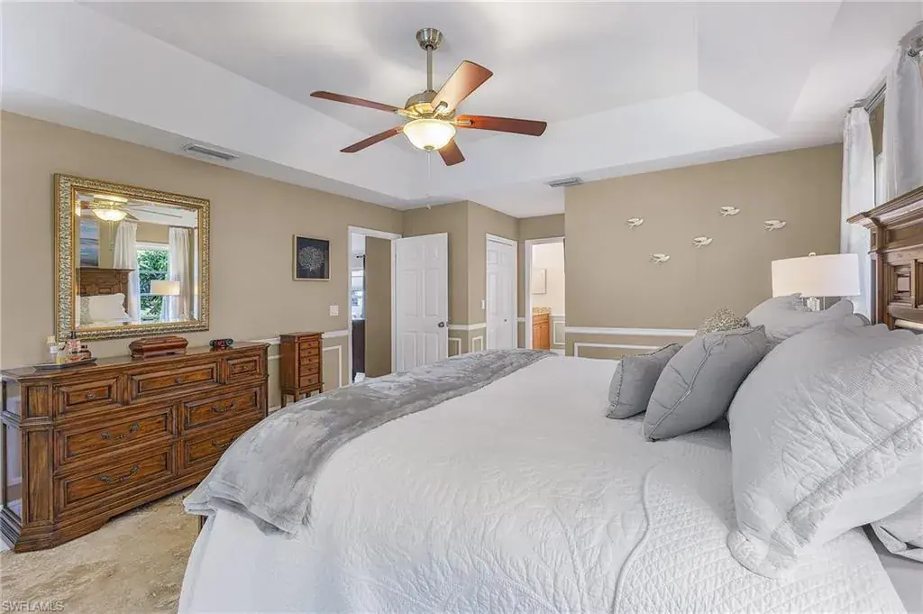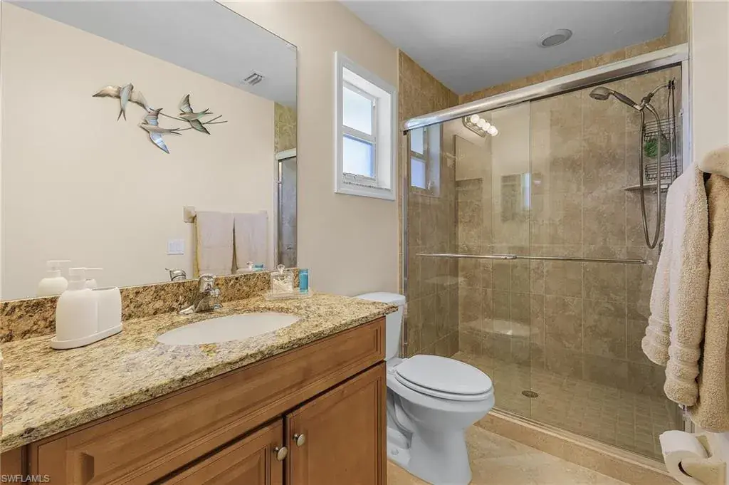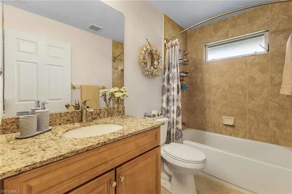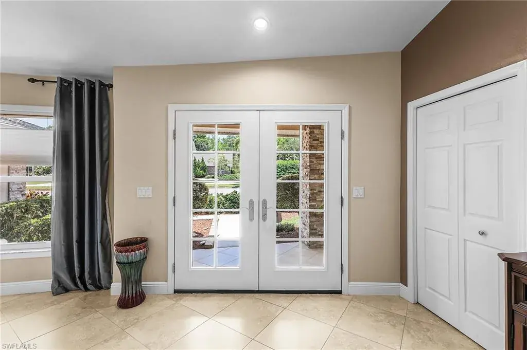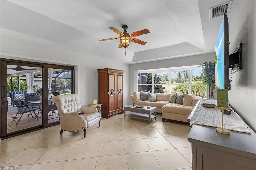 ‘SELLER VERY MOTIVATED” This beautifully renovated single-family home has a great west facing sunset views making this prime property a unique hidden gem. Upon entering, one will encounter a light and bright open concept living and dining area with high ceilings. The gourmet chef’s kitchen includes a large island and breakfast bar, white shaker-style cabinets, quartz Countertops and matching quartz Backsplash as well as all stainless steel appliances. The entire home features beautiful tile flooring, modern baseboards and trim. Additionally, the baths have been fully updated, and the home has been painted with new light and plumbing fixtures installed. The primary bedroom is generously sized, featuring two walk-in closets and sliding doors that lead to the lanai. The guest bedrooms are positioned on the opposite side of the home for privacy. Enjoy your morning coffee or evening cocktails from the expansive screened lanai with pool and spa offering quiet serene tranquility views of the lake and golf course views / preserves that are often visited by deer. The New impact sliders and doors installed in 2024, along with manual shutters for most windows, providing peace of mind. This property is conveniently about six miles from downtown 5th Avenue Naples, offering easy beach access, boating, shopping, dining and more. Don’t miss this wonderful opportunity to start living in paradise today. Items that I have fixed in the house or replaced.