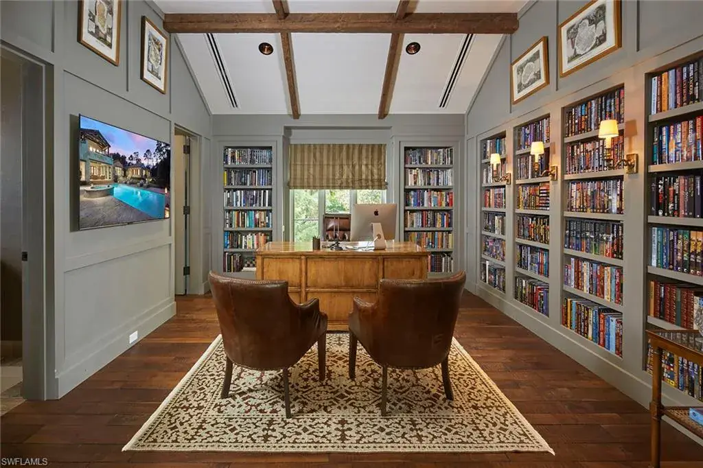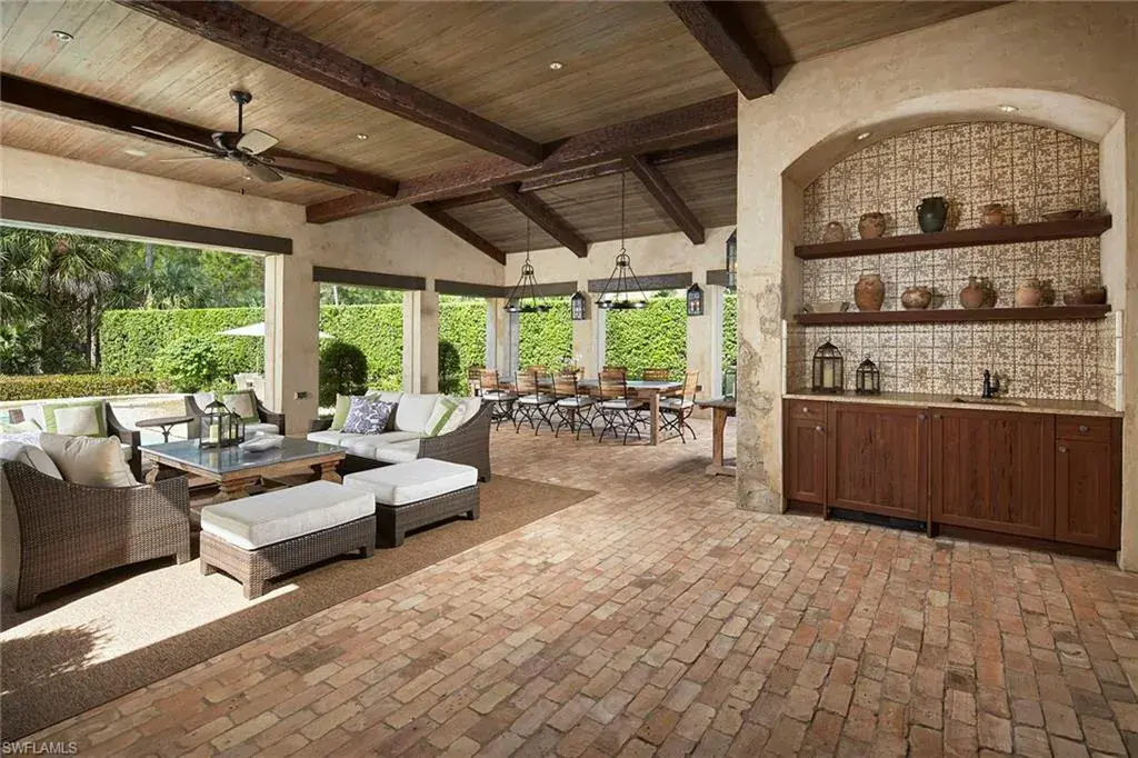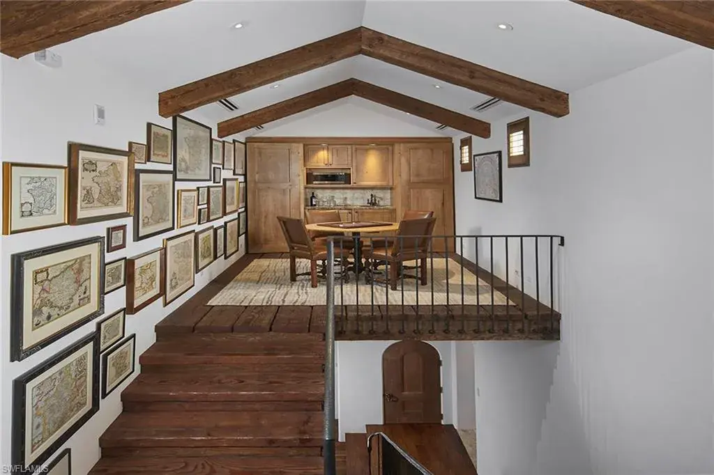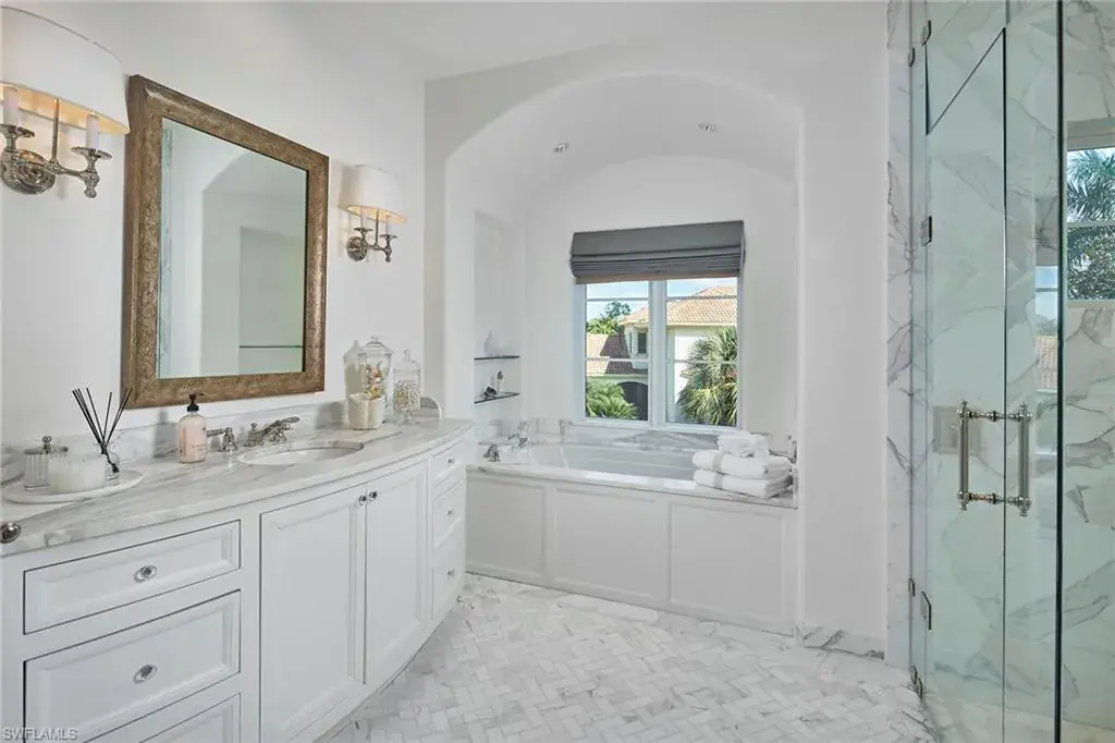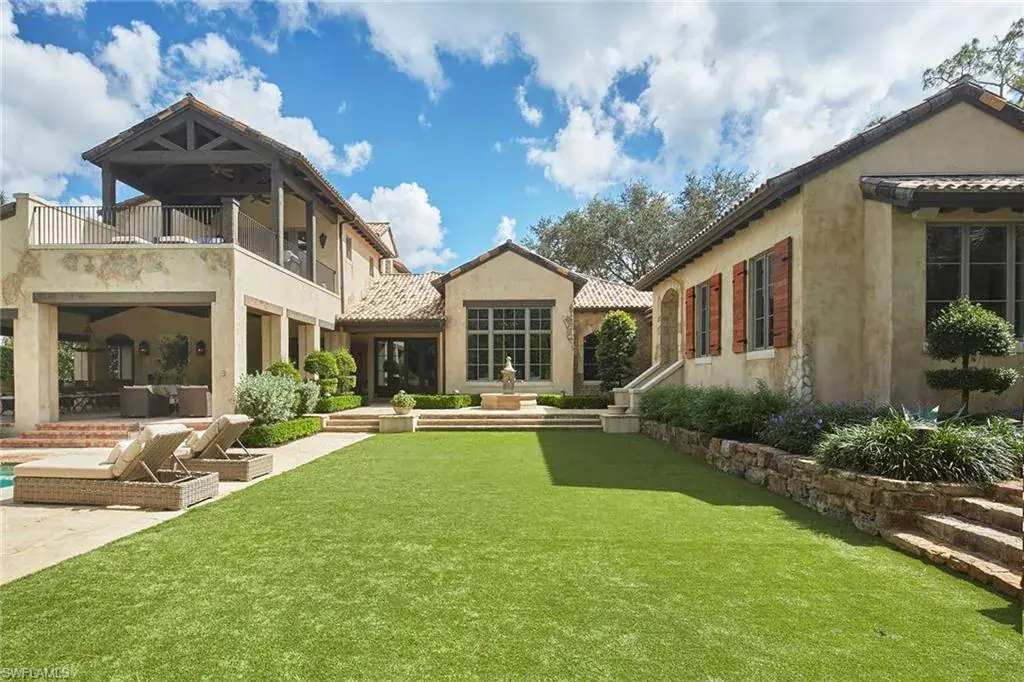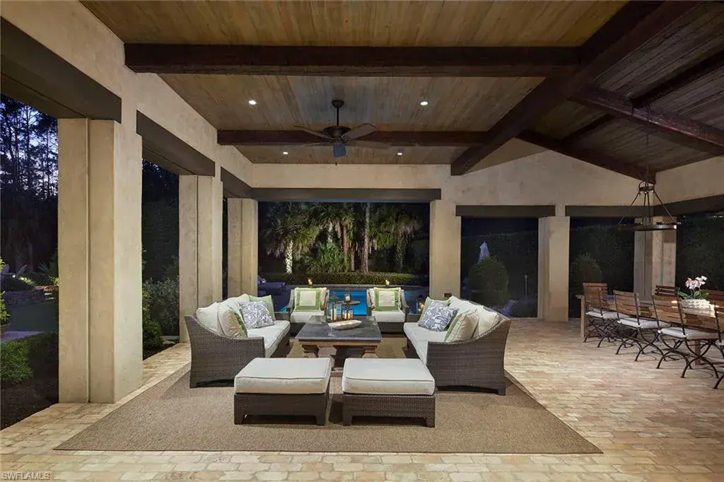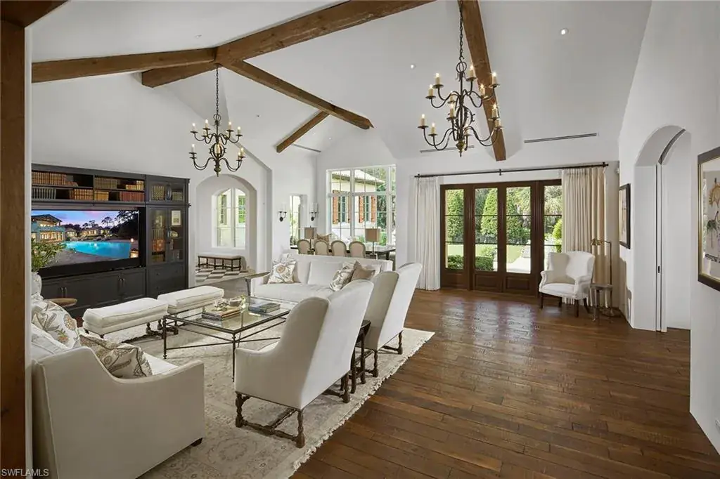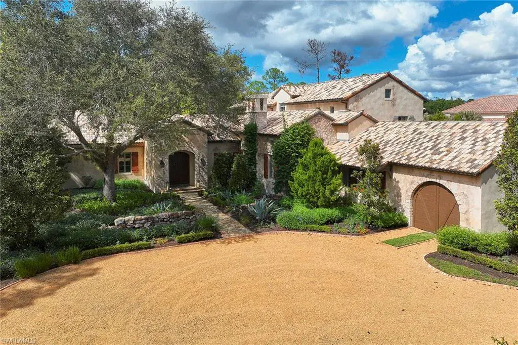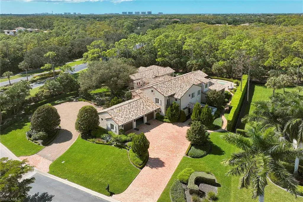 This authentic custom home, hand-crafted by BCB Homes in 2009, is on an extremely private .74-acre homesite within the prestigious Mediterra community. Offering over 6,600 square feet of luxurious living space, the residence features four bedrooms, four full baths, and one-half bath designed for elegance and comfort. The open-concept floor plan is ideal for entertaining family and friends, with a chef’s kitchen boasting top-of-the-line Viking and Sub-Zero appliances, a spacious center island, a well-appointed butler’s pantry ideal for catering and abundant custom cabinetry. The family room serves as the heart of the home and flows seamlessly into an impressive library adorned with vaulted wood-beam ceilings and a stone gas fireplace. The private owner’s suite is a serene retreat, highlighted by hand-scraped wood floors, an adjacent wood-paneled study, a white marble bath and dual custom closets. Outdoor living is equally impressive, featuring a large, covered lanai with a dining area, comfortable sitting space and a fully equipped outdoor kitchen. The outdoor oasis continues with a heated pool, raised spa and gas fire pit, ideal for year-round enjoyment. Additional features include a Lutron lighting system, a climate-controlled three-car garage, Andersen impact windows and doors, and a custom temperature-controlled wine cellar. Residents of Mediterra enjoy an unmatched lifestyle with access to two 18-hole Tom Fazio–designed golf courses, a full-service wellness and fitness center, and a newly refurbished Beach Club offering an elevated pool and Gulf-front dining on the white sands of Hickory Island. A world of luxury, privacy and craftsmanship awaits within this exquisite Mediterra estate.