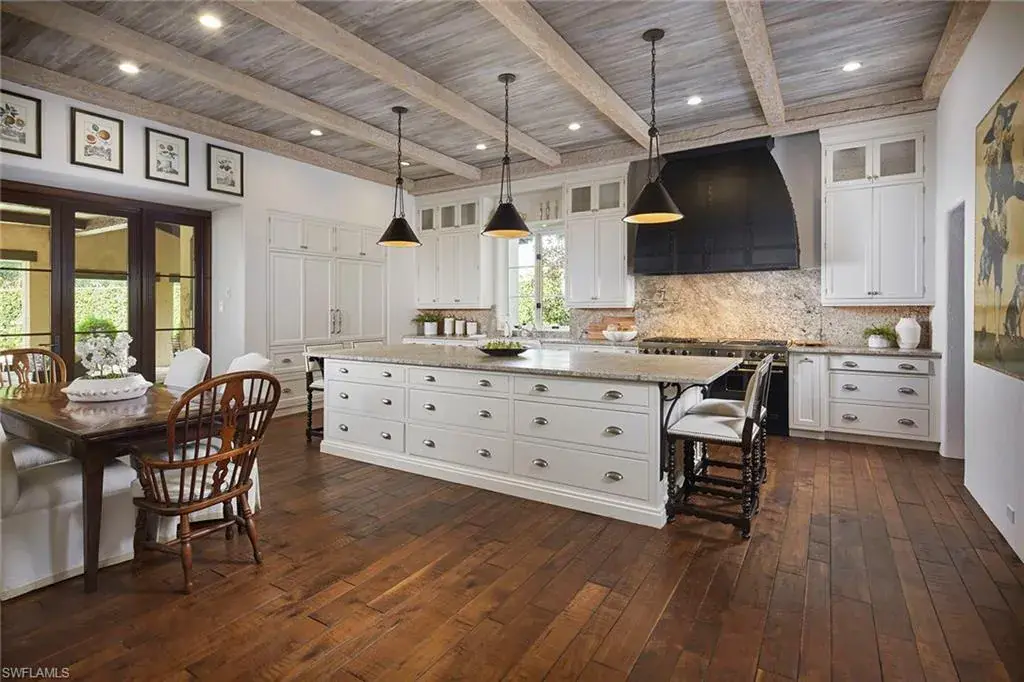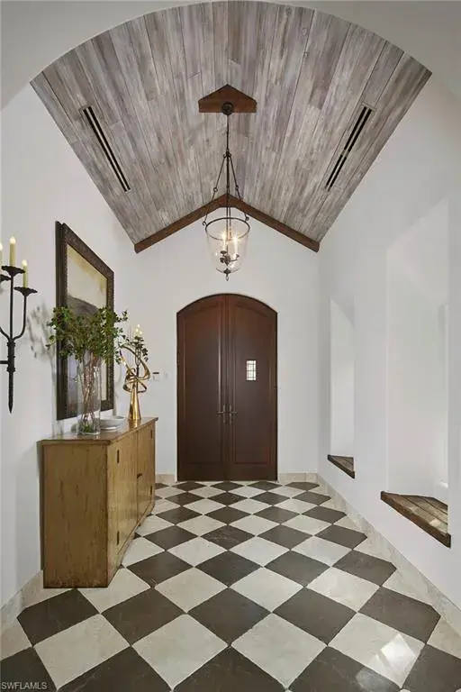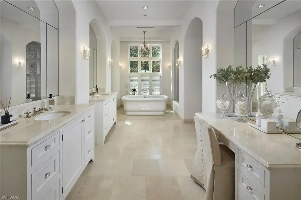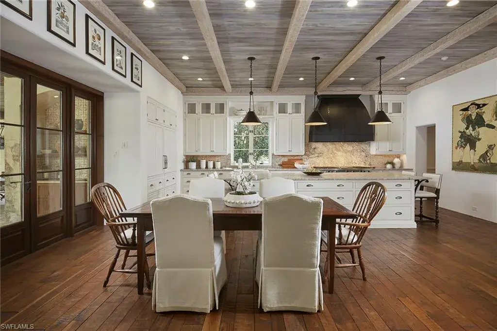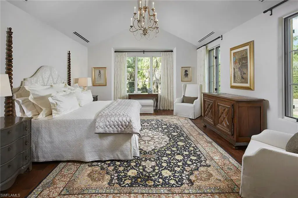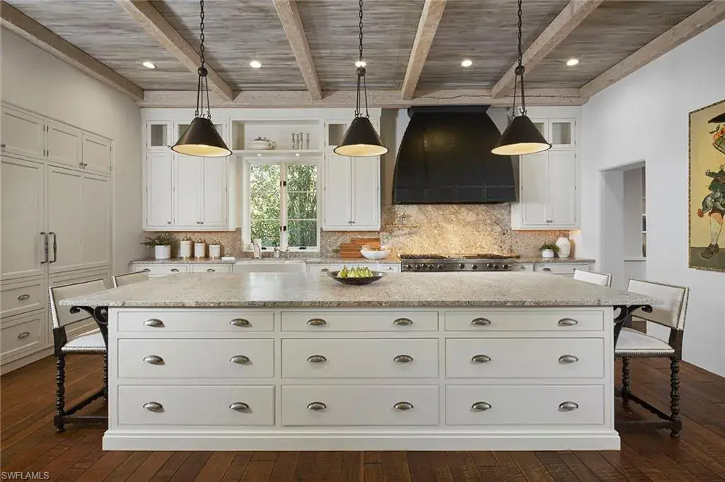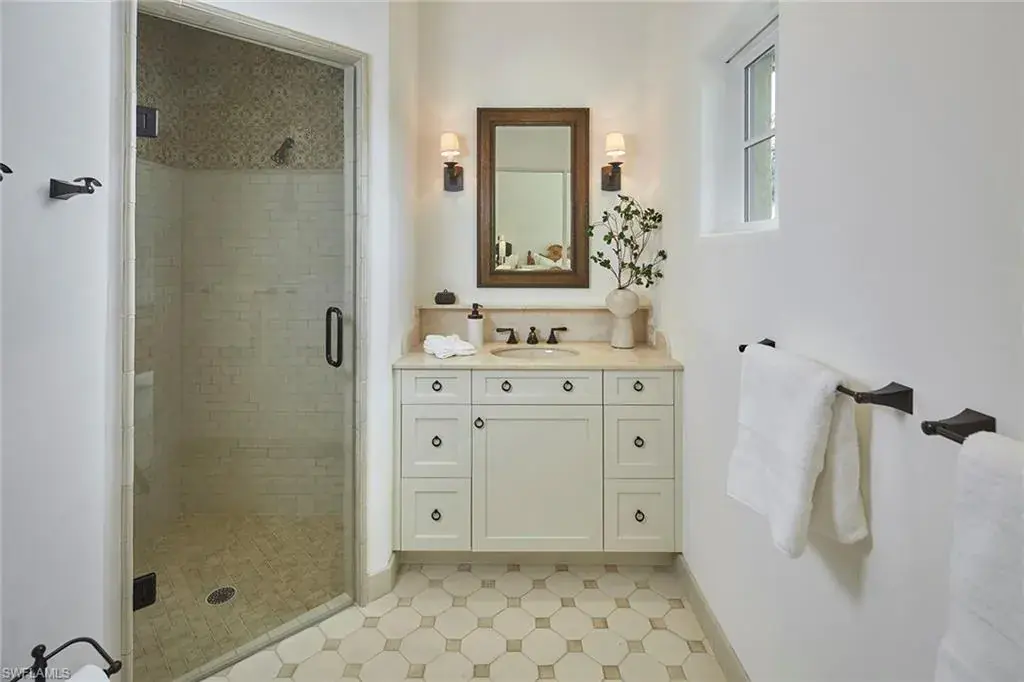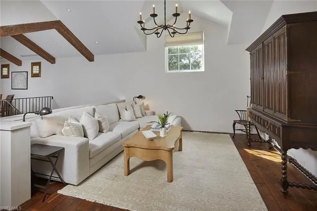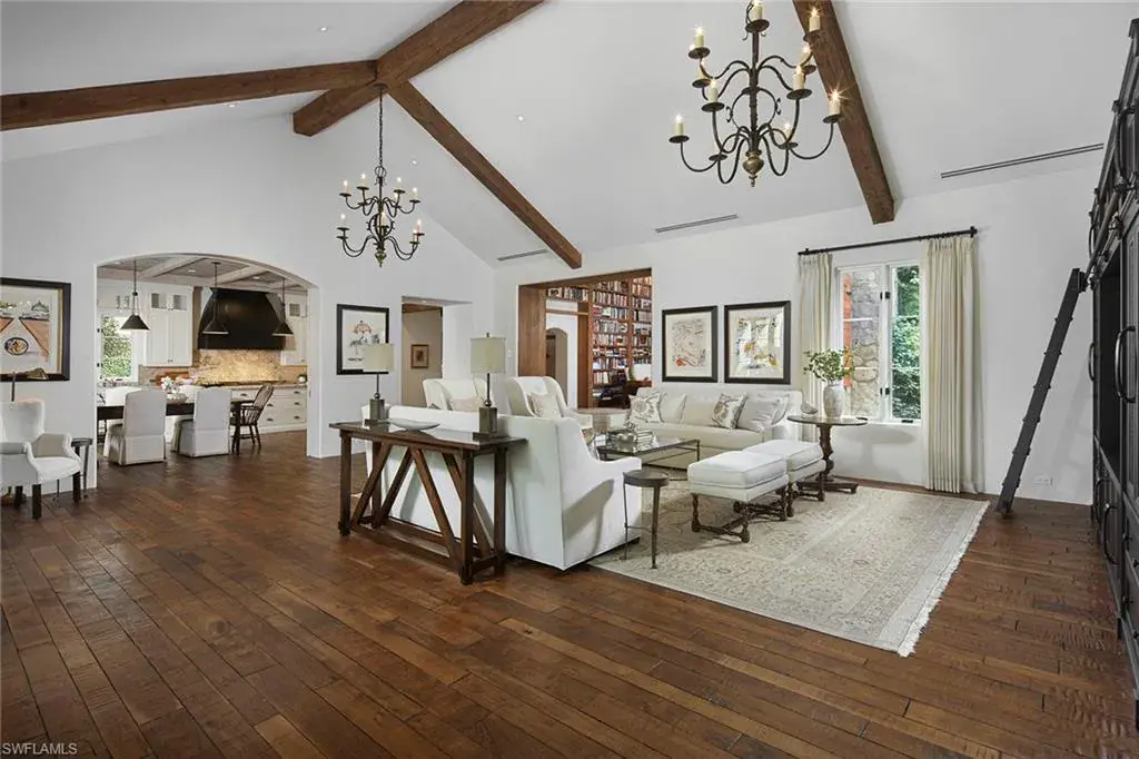 This authentic custom home, hand-crafted by BCB Homes in 2009, is on an extremely private .74-acre homesite within the prestigious Mediterra community. Offering over 6,600 square feet of luxurious living space, the residence features four bedrooms, four full baths, and one-half bath designed for elegance and comfort. The open-concept floor plan is ideal for entertaining family and friends, with a chef’s kitchen boasting top-of-the-line Viking and Sub-Zero appliances, a spacious center island, a well-appointed butler’s pantry ideal for catering and abundant custom cabinetry. The family room serves as the heart of the home and flows seamlessly into an impressive library adorned with vaulted wood-beam ceilings and a stone gas fireplace. The private owner’s suite is a serene retreat, highlighted by hand-scraped wood floors, an adjacent wood-paneled study, a white marble bath and dual custom closets. Outdoor living is equally impressive, featuring a large, covered lanai with a dining area, comfortable sitting space and a fully equipped outdoor kitchen. The outdoor oasis continues with a heated pool, raised spa and gas fire pit, ideal for year-round enjoyment. Additional features include a Lutron lighting system, a climate-controlled three-car garage, Andersen impact windows and doors, and a custom temperature-controlled wine cellar. Residents of Mediterra enjoy an unmatched lifestyle with access to two 18-hole Tom Fazio–designed golf courses, a full-service wellness and fitness center, and a newly refurbished Beach Club offering an elevated pool and Gulf-front dining on the white sands of Hickory Island. A world of luxury, privacy and craftsmanship awaits within this exquisite Mediterra estate.