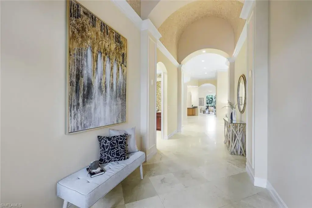 New roof installed in 2024! Nestled in the heart of the prestigious Pelican Marsh community in Naples, this exquisite 3-bedroom + den, 3.5-bathroom home epitomizes luxury and comfort. The moment you enter, you’re welcomed by soaring high ceilings and an open floor plan that seamlessly connects the living, dining, and kitchen areas—creating an ideal space for entertaining guests or enjoying family gatherings. The expansive layout allows for effortless flow, making it perfect for both casual and formal occasions.