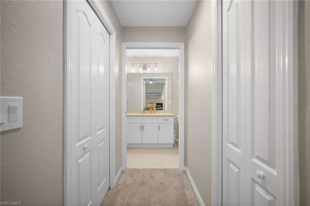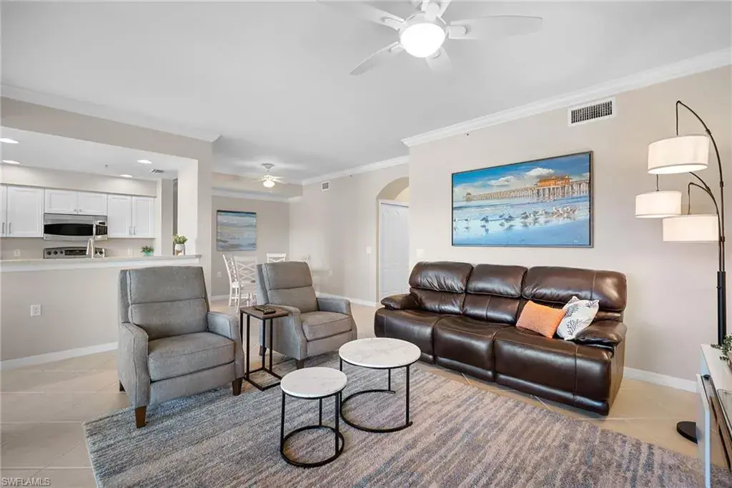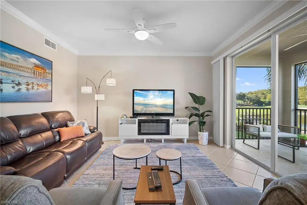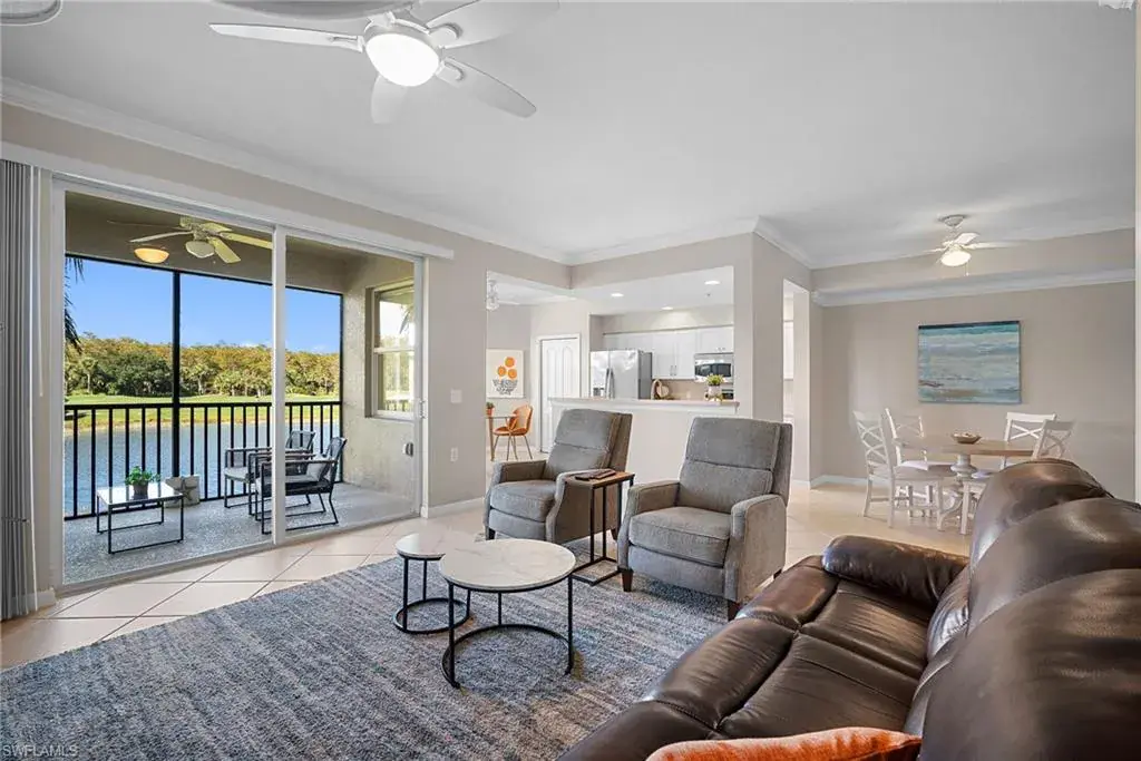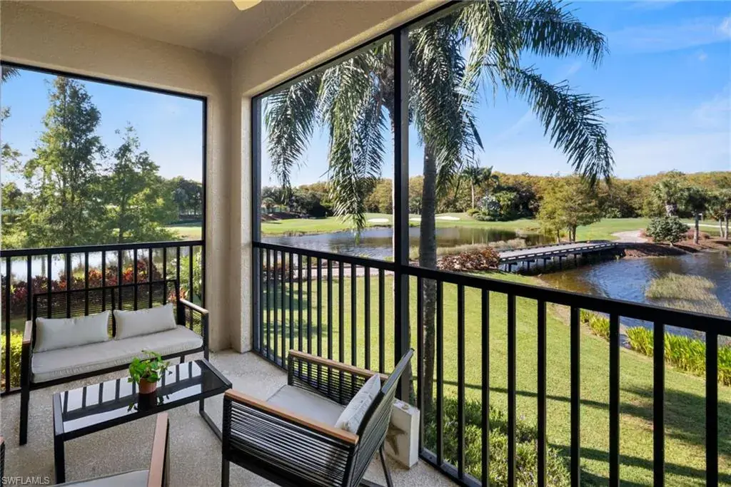The absolute best Terrace condo view in Heritage Bay! When you walk through the front door of this “Brookside” model, you’ll immediately notice a stunning view of BOTH the 16th and 17th holes as well as multiple lakes & preserve! With western exposure, the sunset behind all of this is incredible every evening! The Brookside features an open floorplan with 2 bedrooms and 2 baths, opening into the great room with open kitchen and lots of windows to enjoy the incredible view and lots of natural light! Upgrades include freshly painted walls, updated kitchen & bathroom cabinets with new hardware, newer AC & appliances, updated light fixtures, impact windows and sliders, new carpets in both bedrooms with large diagonal tile everywhere else, crown molding & more. It also has a generously sized outside storage locker to keep your bikes, beach chairs, golf clubs etc. This condo is being sold FULLY turnkey, move-in ready, with sleek, modern furniture & accessories. Just bring your golf clubs and swim trunks, and enjoy everything Heritage Bay has to offer! Heritage Bay features a stunning 27-hole Lewis-Azinger designed golf course and aqua driving range. The grand clubhouse offers diverse dining options, elegant event spaces, and a lively social scene. Have a bite to eat in The Grille Room— a casual indoor/outdoor bar & dining area, with an incredible southern view of the 27th green. Members can also enjoy a resort-style pool area with heated spa & ‘The Cabana’ poolside bar & grille with a full service kitchen. The community also includes a top-notch tennis program with 7 har-tru clay courts, pickleball & bocce courts, and a state-of-the-art fitness center. With a calendar full of events and activities, Heritage Bay ensures a vibrant and luxurious lifestyle for its members. Whether you’re a golf enthusiast or simply looking for serene views and luxury living, Heritage Bay offers it all. 2019 special assessment for amenities renovations paid in FULL