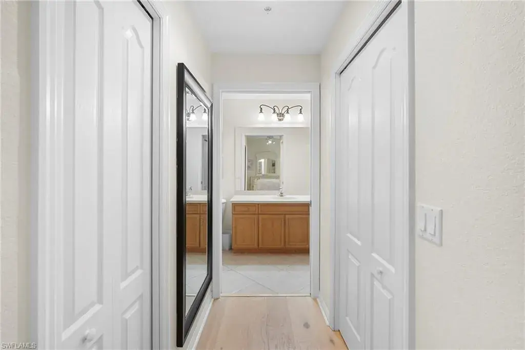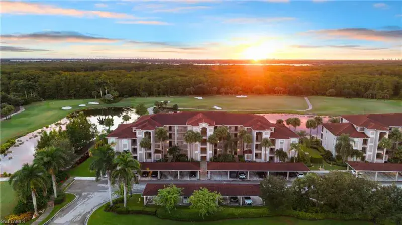 Immaculate 2nd floor “Brookside” model Terrace condo at Heritage Bay, where your FULL membership to 27 holes of championship golf is INCLUDED with purchase! Located in the very first Terrace condo building, about 1/3 of a mile from the bag drop, aqua range and putting greens, clubhouse, tennis, pickle ball, & bocce courts, and the resort-style pool & poolside “Cabana” bar & grille! The “Brookside” model features an open, great room layout, and this one has a GORGEOUS panoramic golf, water, & preserve view that you can watch the sun go down behind every night from your screened lanai! Tastefully decorated and furnished, fully turnkey (MOVE IN READY, just bring your golf clubs!) with high quality furnishings and fixtures, and added luxury REAL WOOD flooring in the bedrooms. This condo features hurricane IMPACT glass and windows throughout for peace of mind, and the A/C was replaced in 2021. There is also a generously sized storage unit outside the front door, with plenty of space to put all of your stuff!