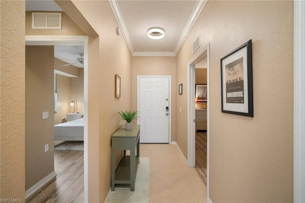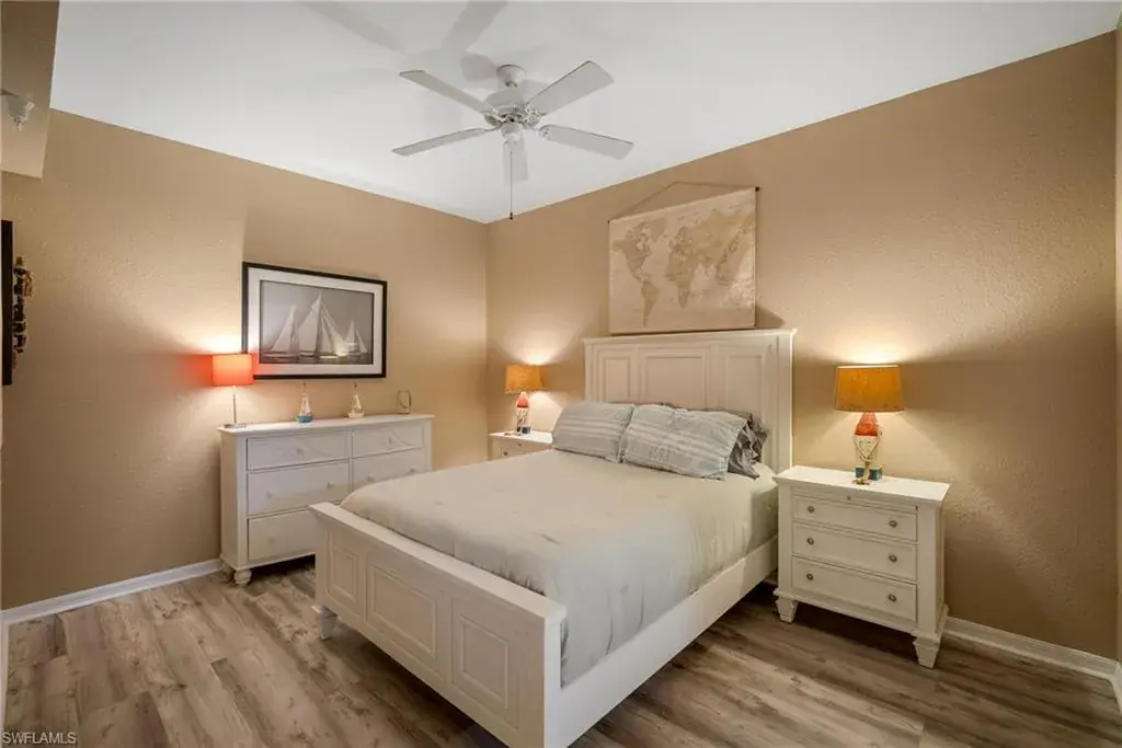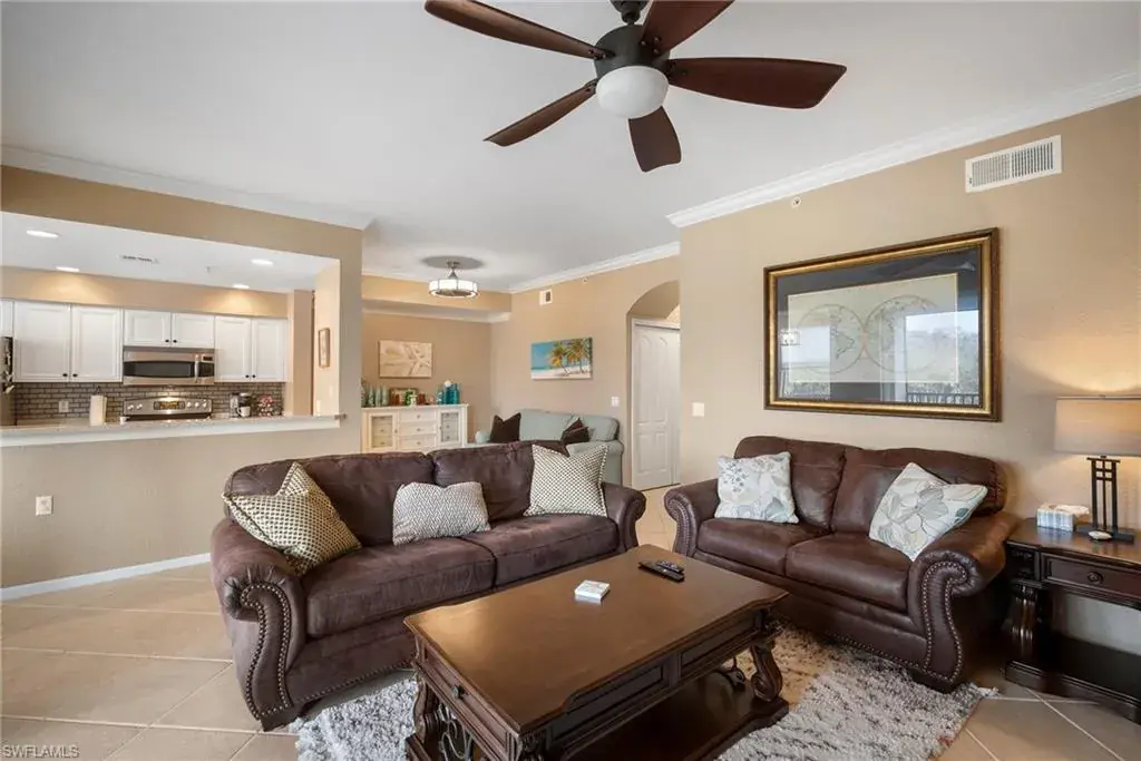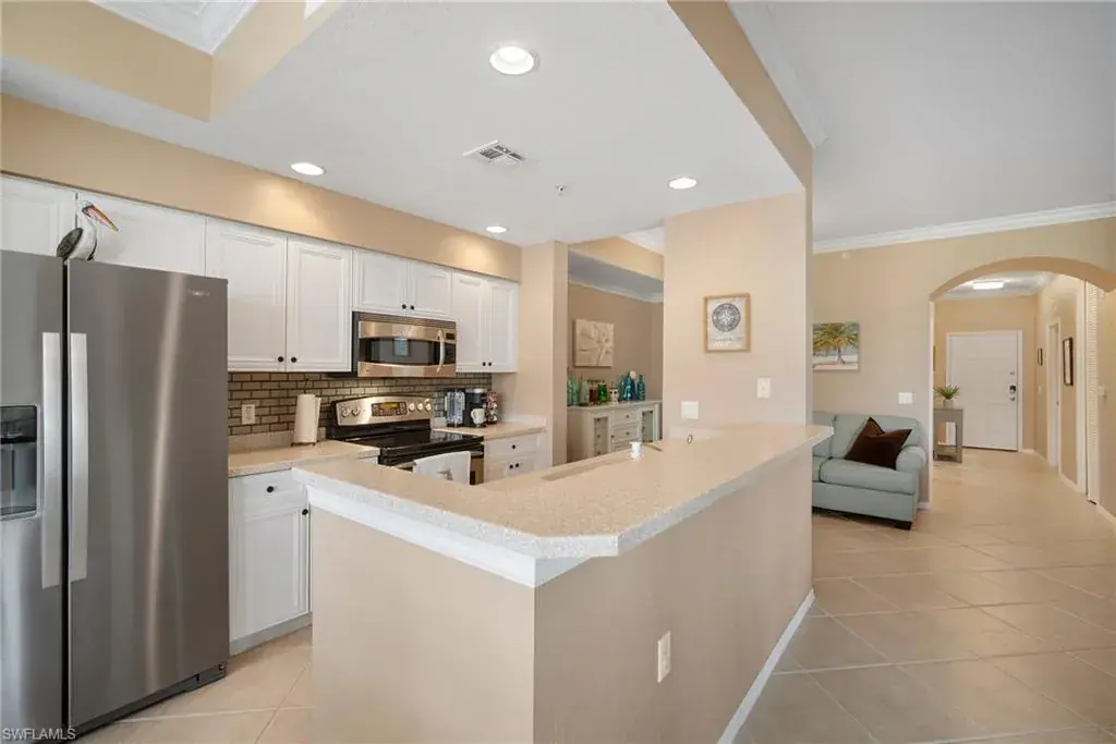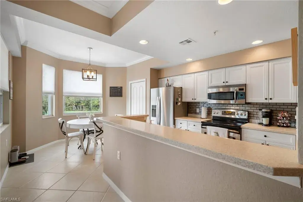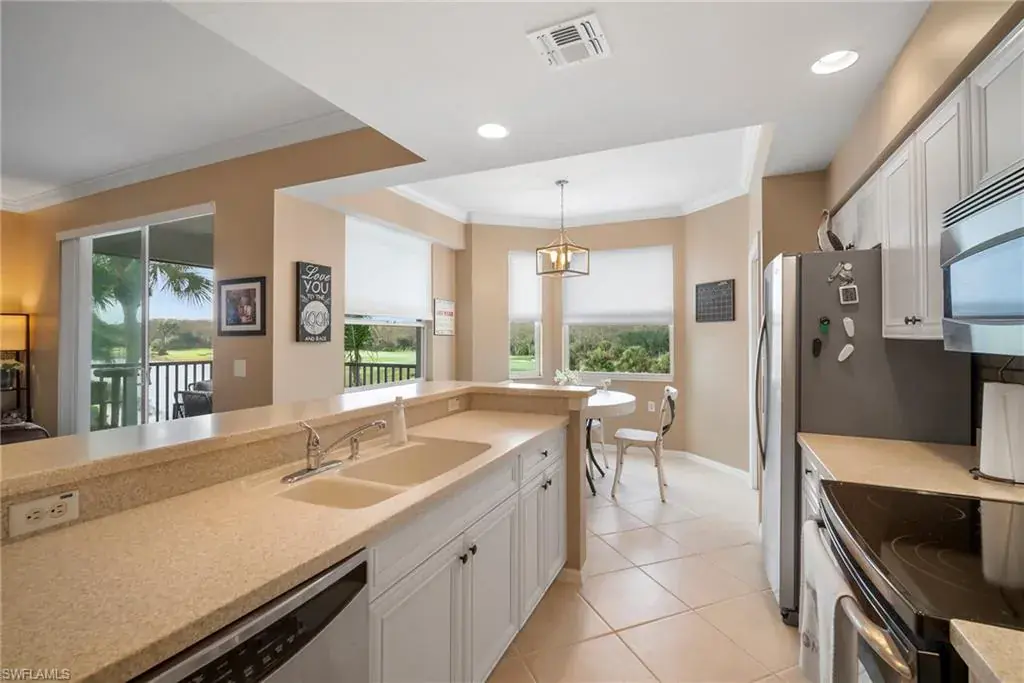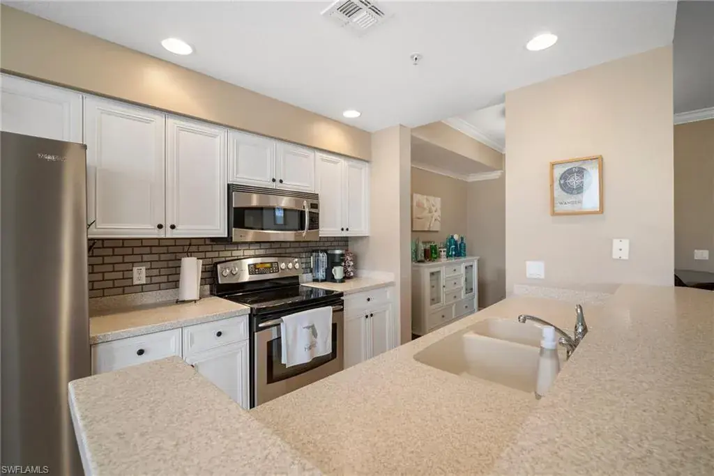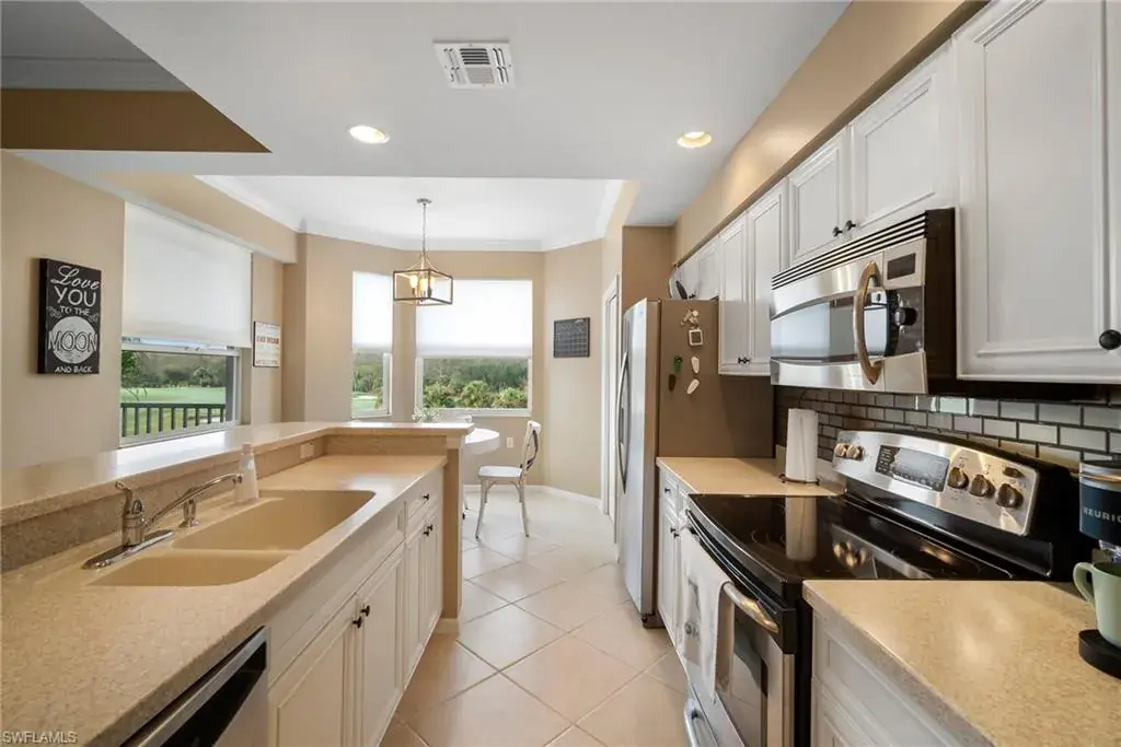 Golfer’s delight! Full golf membership is included with this pristine, 3rd floor “Brookside” with an incredible sunset golf, water & preserve view. Fully turnkey, move-in ready, just bring your golf clubs and swim trunks! Tastefully updated with luxury vinyl flooring in the bedrooms, stainless appliances, subway tile backsplash, modern fixtures & lighting, peppered ivory stone countertops & upgraded white cabinets in the kitchen and both bathrooms. Heritage Bay features a stunning 27-hole Lewis-Azinger designed golf course and aqua driving range. The grand clubhouse offers diverse dining options, elegant event spaces, and a lively social scene. Have a bite to eat in The Grille Room— a casual indoor/outdoor bar & dining area, with an incredible southern view of the 27th green. Members can also enjoy a resort-style pool area with heated spa & ‘The Cabana’ poolside bar & grille with a full service kitchen. The community also includes a top-notch tennis program with 7 har-tru clay courts, pickleball & bocce courts, and a state-of-the-art fitness center. With a calendar full of events and activities, Heritage Bay ensures a vibrant and luxurious lifestyle for its members. Whether you’re a golf enthusiast or simply looking for serene views and luxury living, Heritage Bay offers it all.