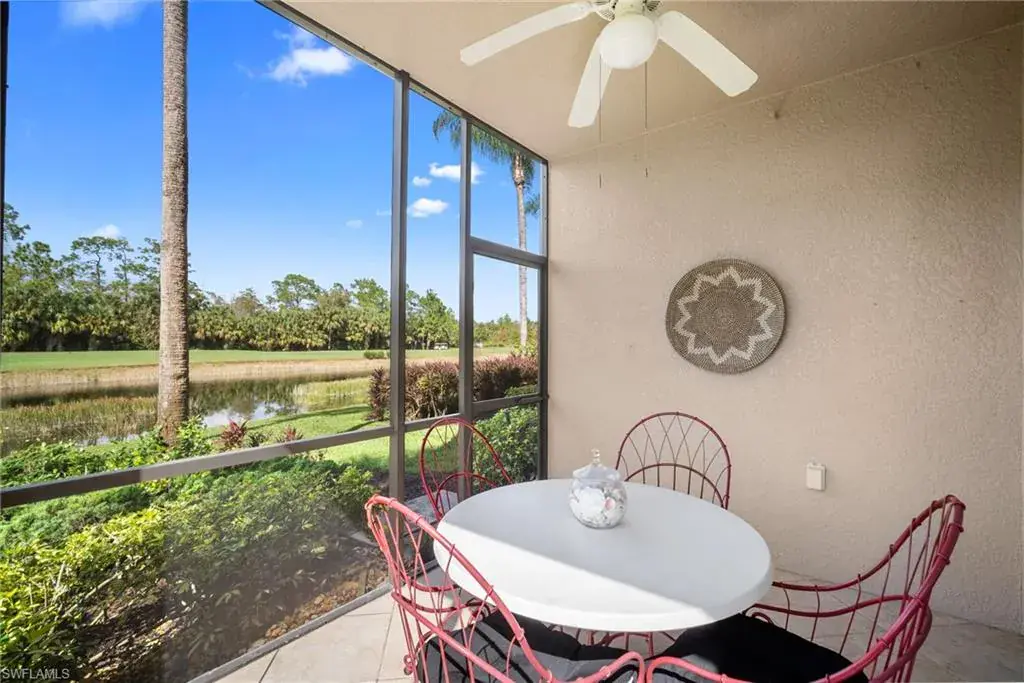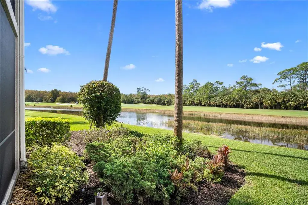 Move right in to this turnkey condo and experience Florida resort living this season! This bright first-floor corner unit in Heritage Bay Golf & Country Club is perfect for year-round or seasonal living. The split-bedroom floor plan offers comfort and privacy, while the flexible den space can serve as an office, TV room or extra bedroom. Perfect location just steps away from a beautiful satellite community pool. Start your mornings enjoying coffee on the lanai with panoramic views of the golf course. The first floor unit is ideally situated to maximize sunlight with a gorgeous view. Whether you’re lounging or dining alfresco in your private screened lanai, you will love the serene surroundings. The convenience of first floor living makes daily errands or walking your dog a breeze. The property includes a covered carport to shield your vehicle from the Florida sun. Heritage Bay is an amenity-rich bundled golf community featuring 27 holes of golf, a staffed fitness center, aqua range, putting greens, lighted tennis and pickleball courts, bocce, a resort-style pool with a poolside Cabana bar and restaurant, clubhouse with a grille room, event spaces, game rooms and meeting rooms. Don’t miss this opportunity to enjoy Florida’s luxury lifestyle!