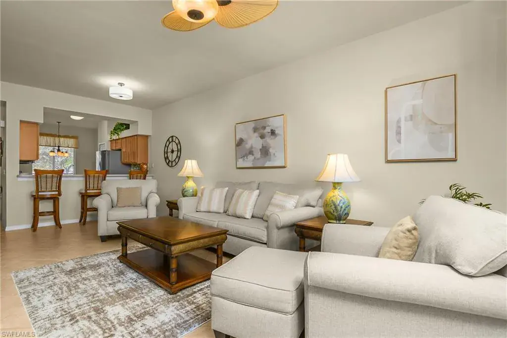 Experience resort-style living in this beautifully maintained second-floor Ashbury model located in the highly desirable bundled golf community of Heritage Bay in Naples, Florida. Enjoy spectacular views of the lake, golf course, and nature preserve, offering a peaceful and private backdrop that captures the essence of the Florida lifestyle. This 2-bedroom, 2-bath split-bedroom floor plan is being offered turnkey furnished, allowing for an effortless move-in experience. The open-concept living area features a bright, inviting atmosphere that seamlessly connects to the tiled rear lanai, the perfect spot to relax with morning coffee or take in the sunset over the water and fairway. The kitchen is equipped with stainless steel appliances, a new microwave, new refrigerator, and an attractive tile backsplash, making it as functional as it is stylish. Additional features include a 2023 air conditioner, newer roof, and tasteful décor throughout. For added value and peace of mind, the special assessment for the Heritage Bay Enhancement Project has been paid in full. Residents of Heritage Bay Golf & Country Club enjoy access to world-class amenities including 27 holes of golf, tennis, pickleball, bocce, a state-of-the-art fitness center, resort-style pools, and multiple dining venues, all included with ownership. The newly enhanced Grille Room and Cabana offer both upscale and casual dining, while the full-time activities director ensures there’s always something happening. Whether you’re seeking a seasonal getaway, second home, or full-time residence, this move-in-ready condo combines comfort, style, and an unbeatable view in one of Naples’ premier golf and country club communities.