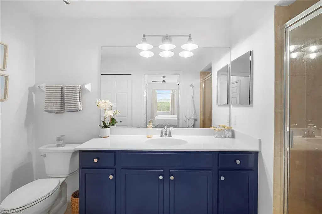 Absolutely gorgeous TOP FLOOR condo with view of multiple golf holes & nature preserve! This “Ashbury” model has been fully updated with white & navy “Coastal” finishes including all new fans & fixtures, white kitchen cabinets, and navy bathroom vanities with updated lighting; also a brand new Daikin Fit A/C with 12 YEAR warranty. You won’t find a nicer Terrace condo in HB for under 400k! There’s also a nicely sized outdoor storage unit right outside the front door. Heritage Bay features a stunning 27-hole Lewis-Azinger designed golf course and aqua driving range. The grand clubhouse offers diverse dining options, elegant event spaces, and a lively social scene. Have a bite to eat in The Grille Room— a casual indoor/outdoor bar & dining area, with an incredible southern view of the 27th green. Members can also enjoy a resort-style pool area with heated spa & ‘The Cabana’ poolside bar & grille with a full service kitchen. The community also includes a top-notch tennis program with 7 har-tru clay courts, pickleball & bocce courts, and a state-of-the-art fitness center. With a calendar full of events and activities, Heritage Bay ensures a vibrant and luxurious lifestyle for its members. Whether you’re a golf enthusiast or simply looking for serene views and luxury living, Heritage Bay offers it all.