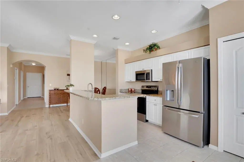 Spectacular views from this 2 bed/2 bath penthouse overlooking the 11th Hole of Cedar Hammocks Championship Golf Course – coveted south facing, 4th floor end unit is located on “the Island”, with an elevator, extra large storage unit and lots of privacy. Beautifully updated, this condo is being sold “Turnkey”. Granite countertops in the kitchen & baths, plantation shutters throughout, light fixtures & furnishings, new stainless steel appliances, water heater and AC. The guest room features a Murphy Bed – so there is plenty of room for an office or second TV viewing room. The active Cedar Hammock Community offers the perfect lifestyle – boasting a top bundled golf course – 4 community pools – beautifully updated amenities/gym/clubhouse facilities, updated tennis courts and neighborhood wired with fiber optics (fast internet), included in HOAs. Ride your bike to the gym for a yoga class or to the bocce court to meet a friend, followed by lunch or dinner at the outstanding country club restaurant. Cedar Hammock is close to Naples and Marco Island, world class beaches, fine dining and minutes from shopping on famous 5th Avenue. Come see this beautiful condo in a great neighborhood.