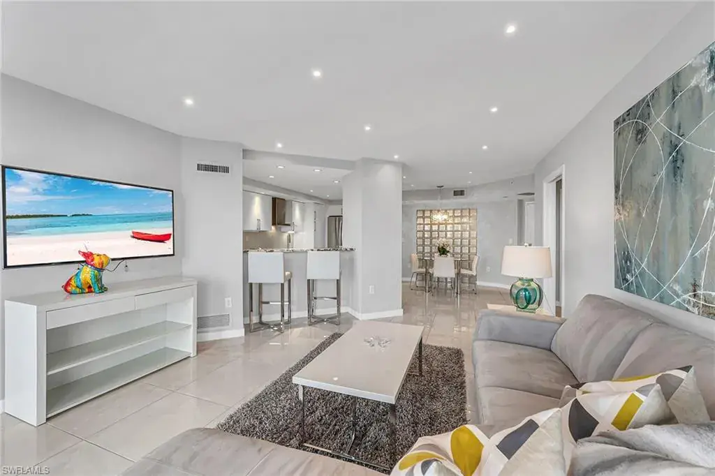 Turnkey Furnished! Beautiful, spotless sophisticated contemporary elegance with a wall of windows and bay views in this custom renovation! This modern masterpiece showcases raised ceilings, a chef’s custom kitchen boasting Dera Supreme cabinets, glass subway tile, LG stainless steel appliances and wine bar. Porcelain tile floors and mini Halogen recessed lighting. The master bathroom suite has double vanity and vertical mosaic glass tile, a Euro glass double shower and custom closets. Offered furnished and ready for you to move in and enjoy the season. The Terraces is a 19-story pet-friendly building with 24-hour security, fitness center, and pool. Close to the beach, world-class dining and designer shopping at Waterside!