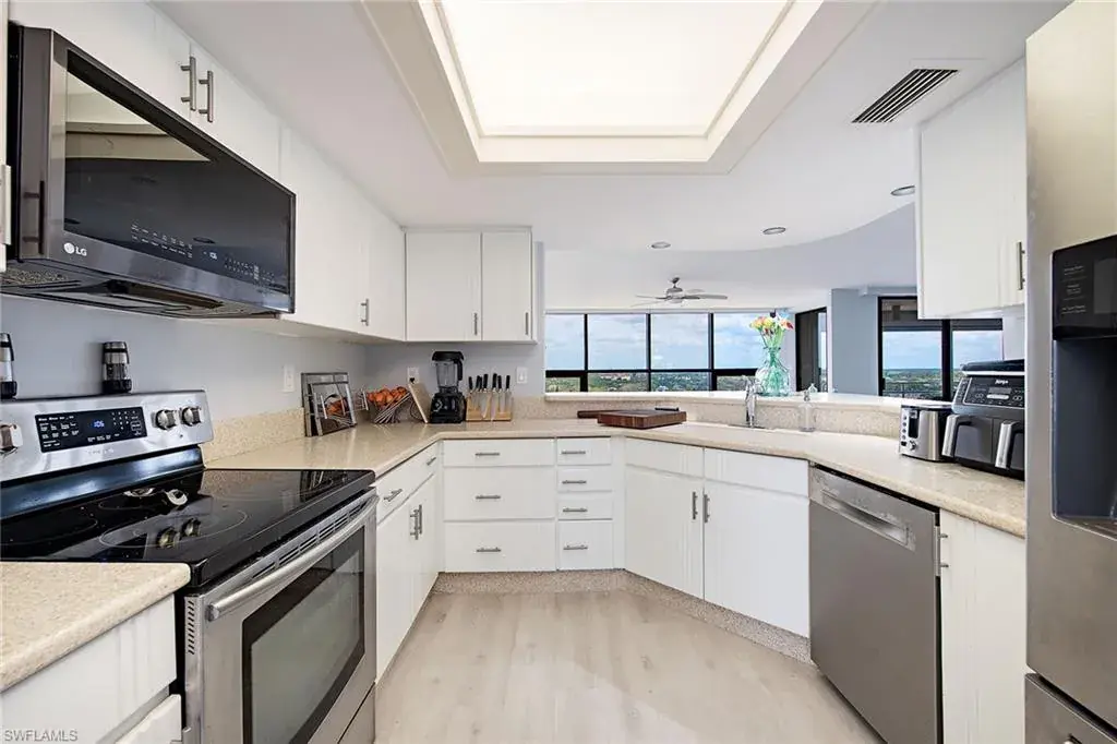 Indulge in panoramic views of the Gulf of Mexico and Venetian Bay from this beautiful beachfront condominium in the rarely available 01 Stack, located on the beach in Park Shore. The immaculate 16th-floor residence is tastefully finished and has a large living room surrounded in glass to enjoy Naples sunrises and sunsets. This residence boasts two lanais and a large primary suite. The Terraces has a dramatic multi-story entry, a social room with a full catering kitchen, a fitness center, a gorgeous pool, hot tub, fire pit, three guest suites, and 24-hour doorman. Walk to shopping and dining at Venetian Village and Waterside. Partake in boating with slips and boat rentals conveniently located across the street!
