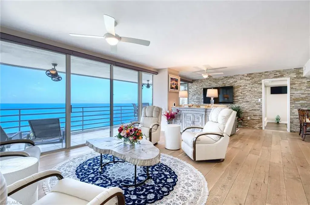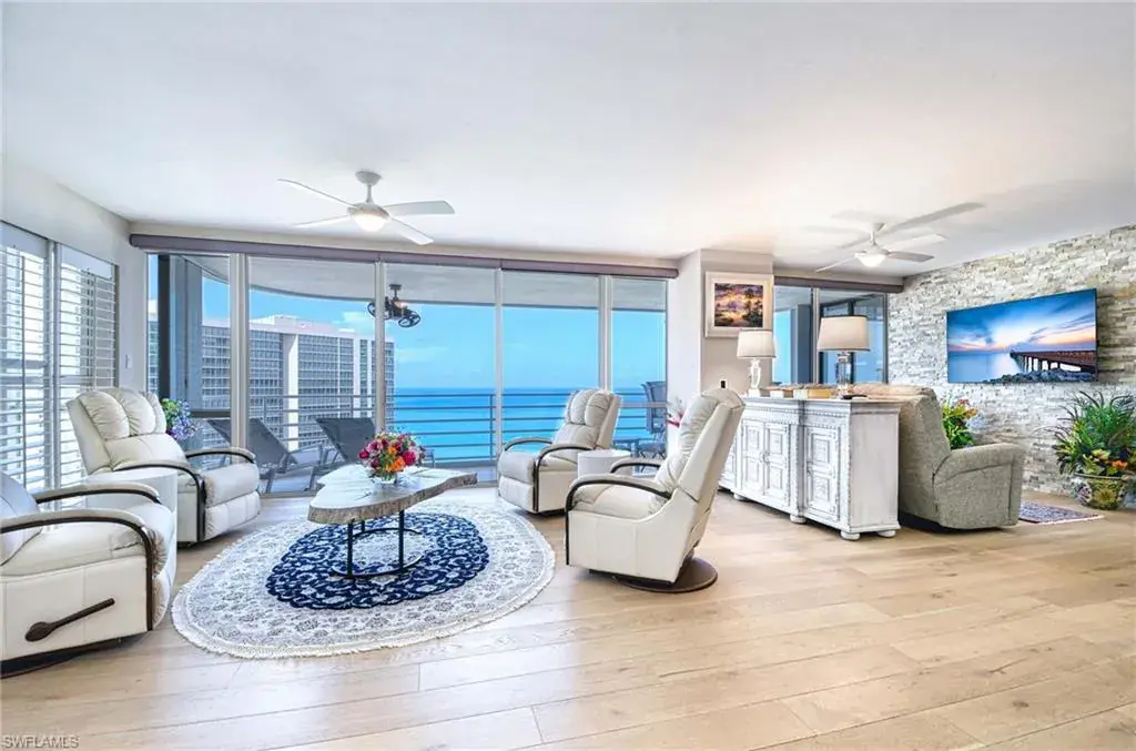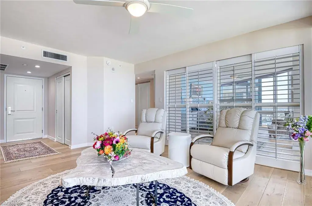 Welcome to the 06 stack on the 17th floor in the terraces of Parkshore, where inspiration meets breathtaking beauty. This beautifully appointed two-bedroom, two-bathroom western-facing unit showcases stunning Gulf, Beach, Boardwalk and Lush Landscaping views. Every room has been revitalized with fresh paint, new furniture, and a state-of-the-art Hunter Douglas window covering system, and is designed for comfort and tranquility. The building offers three guest suites, an exercise room, pool, hot tub, barbecue area, and an outdoor fire table, all just steps away from the beach and vibrant Venetian Village, where shopping, spa services, and a diverse array of restaurants await your discovery. This unit comes deeded with upper level G2 parking.