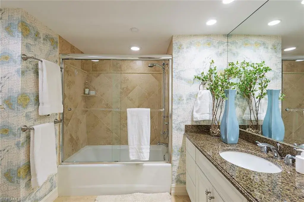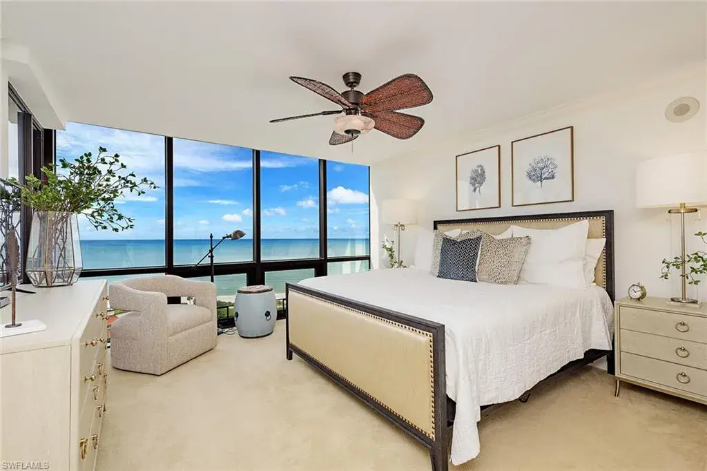 Escape to serenity on the 16th floor of this beachfront condominium in Park Shore, where the soothing sound of the waves creates a symphony of tranquility. This 2-bedroom, 2-bathroom impeccably renovated residence has recently received a fresh coat of paint, presenting a coastal contemporary ambiance that is both light and bright. Enjoy sunsets from your oversized lanai. The Terraces is a 19-story contemporary building with a fitness center, pool, fire pit, grills, social room with catering kitchen, 24-hour doorman and 3 beautiful guest suites. The Terraces is close to world-class dining and shopping at Waterside and Venetian Village.