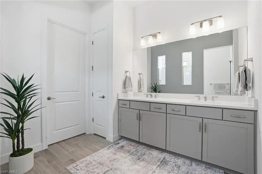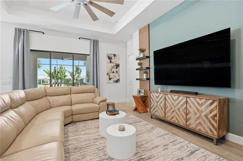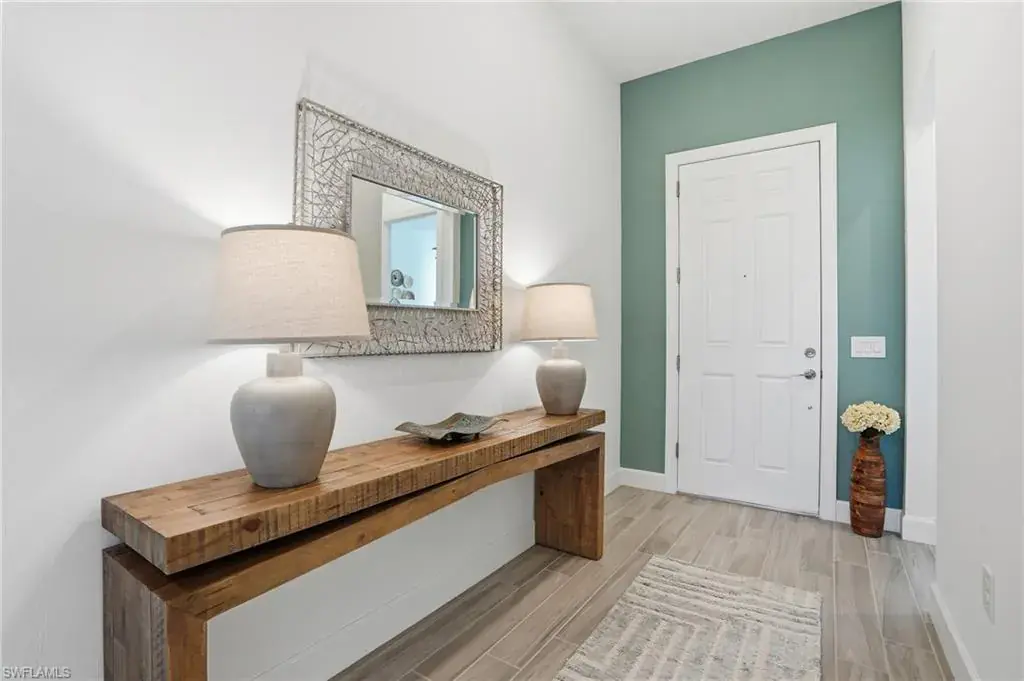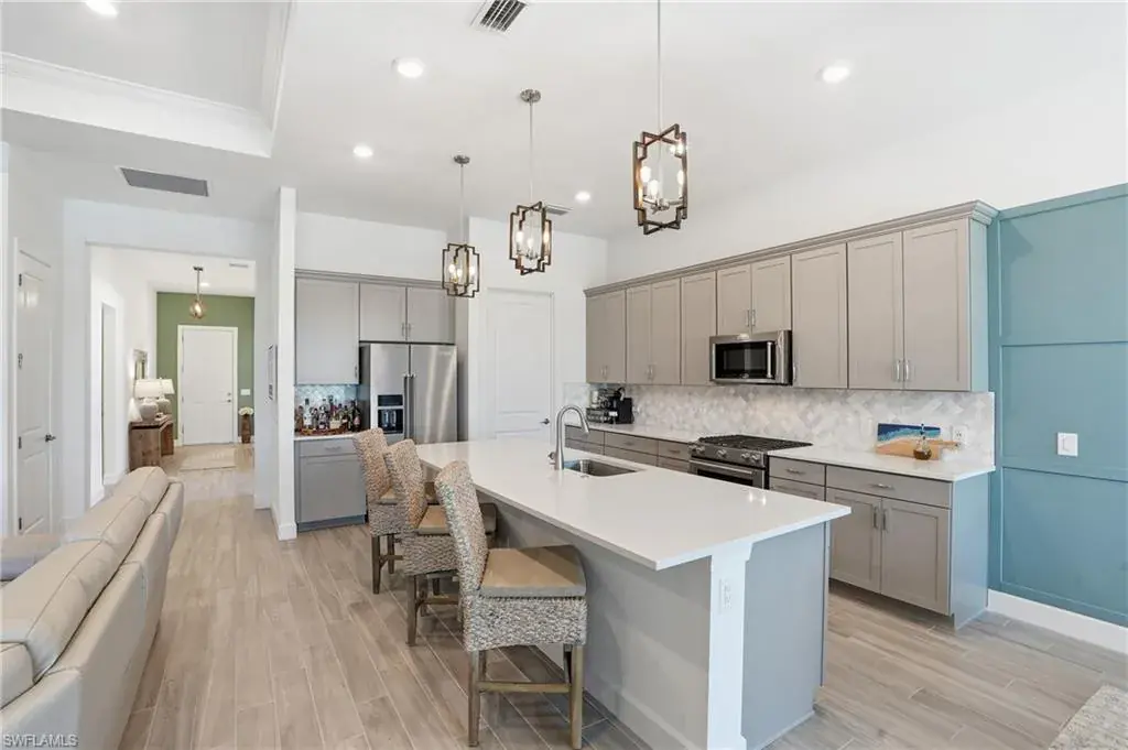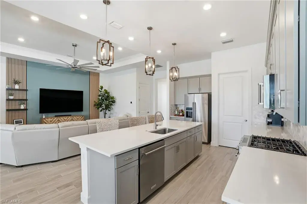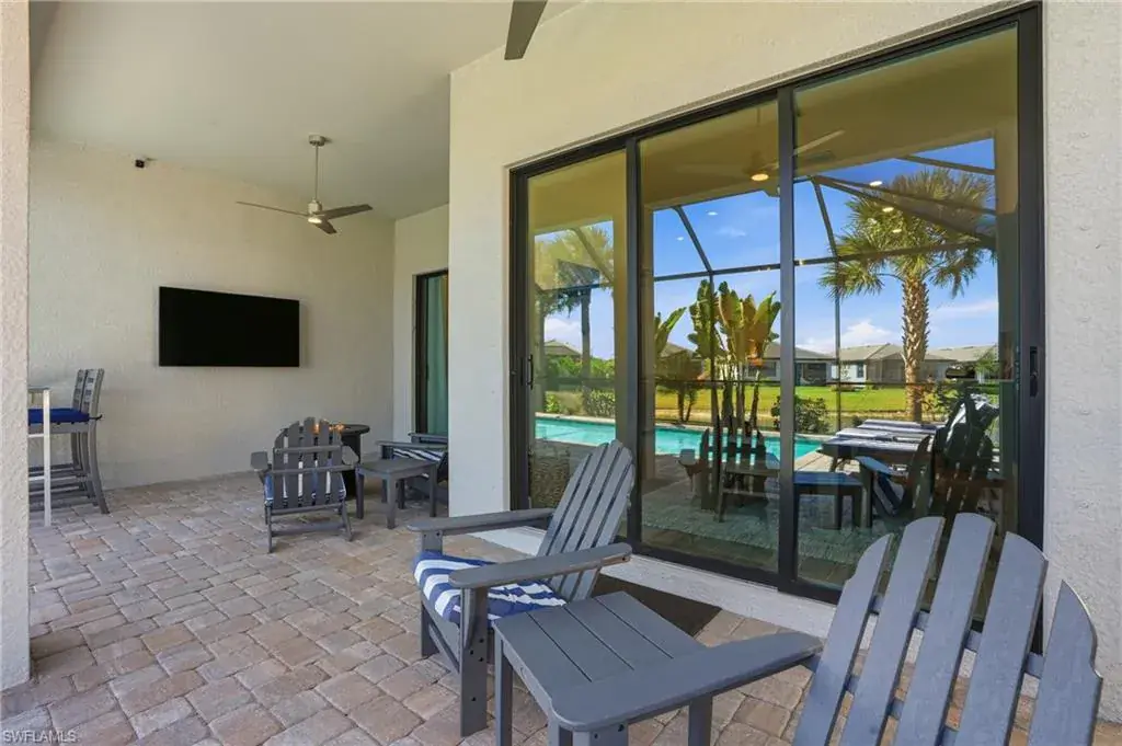 Beautifully upgraded “Prestige” floor plan by Pulte in Terreno! This 3BR/2.5BA home features tall ceilings, wood-look tile flooring, designer finishes, and an insulated air-conditioned garage. Enjoy a modern salt water pool with autofill wrapped with tropical plants for privacy, overlooking peaceful water views! Covered lanai space for perfect outdoor living. With the option to purchase furnished, this home is truly move-in ready. Terreno is a gated, amenity-rich, natural gas, community with golf access, pickleball, tennis, state-of-the-art fitness, resort and lap pools, spa, and the new Olive & Thyme restaurant and bar. Schedule a showing now this Home truly shines in person!