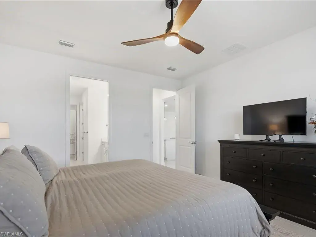 This 2025 SMART HOME is move-in ready and is conveniently located across the street from the recently-opened 15,000 sf clubhouse. Smart home benefits include convenience, security, and energy efficiency. Enjoy fabulous sunsets from the comfort of your screened lanai with private pool and hot tub. This home has stunning lake views and over $200K in upgrades, including custom closet systems, a whole home natural gas generator (installed in July 2025), whole home blinds with plantation shutters in the front bedroom, indoor and outdoor ceiling fans in all rooms, pendant lights in the kitchen, a 4-foot garage extension, and premier landscaping.