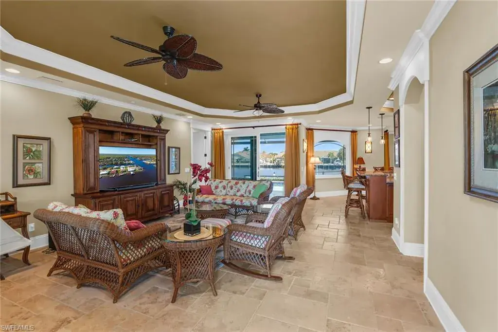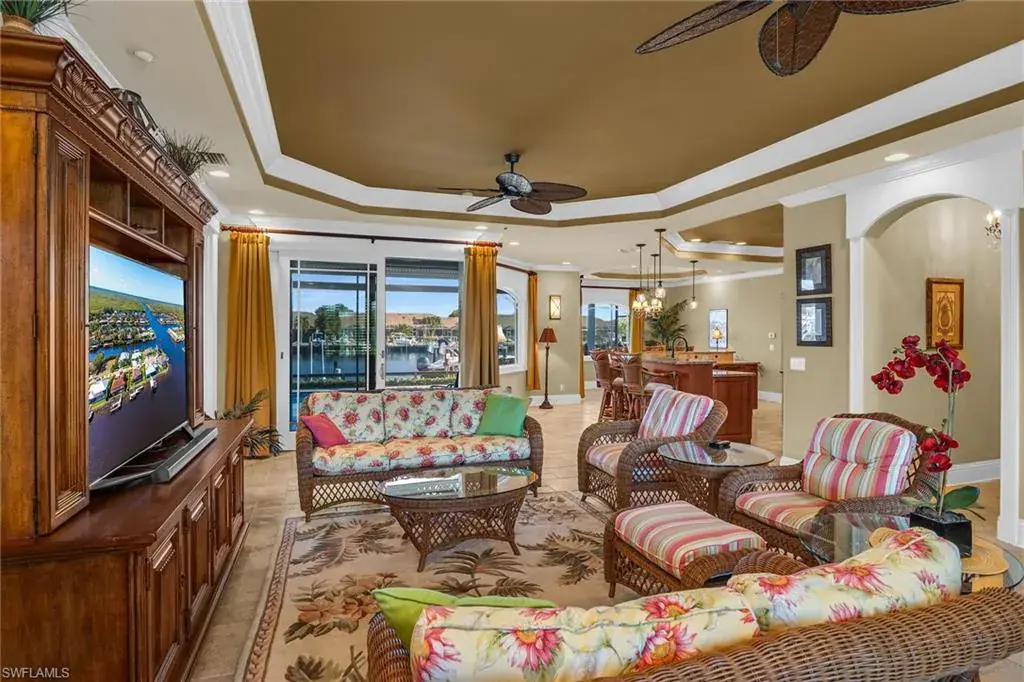 Live the Florida dream from sunrise to sunset at 171 Sunset Cay, located in the hidden gem of Port of the Islands. This exceptional waterfront home offers outstanding quality, value, and lifestyle, and serves as your gateway to the legendary Ten Thousand Islands and world-class fishing. With direct Gulf access via the Faka Union Canal, you will enjoy cruising through some of the most pristine backwaters in Southwest Florida. The magic begins the moment you step inside. Sweeping wide water views overlook the marina and intersecting canals, creating your own private slice of waterfront paradise. Outside, an expansive 80-foot American-made, maintenance-free dock awaits. Designed for the avid boater, it features a Captain’s Walk, two boat lifts rated at 10,000 lb and 7,500 lb, and two large fiberglass dock boxes. Cast a line from your backyard or head out for a sunset cruise, embracing the true essence of coastal living. Inside, this approximately 2,000 square foot residence features three spacious bedrooms and a gourmet chef’s kitchen with solid wood custom cabinetry, wood-paneled appliances, a 6-burner gas Dacor range, wine cooler, and a large granite breakfast bar that seats seven. Plantation shutters allow warm natural light to fill the home while maintaining privacy. Custom built-in cabinetry enhances every closet, providing elegant and efficient storage. Travertine tile flows throughout the main living areas, complemented by rich wood flooring in each bedroom. Tray ceilings with crown molding, designer lighting, and solid-core interior doors highlight the high-end craftsmanship found throughout. The two-car garage is equally impressive with epoxy floors, built-in workspaces, and storage accessories that keep tools and recreational gear organized. Outdoors, lush tropical landscaping and a half-moon driveway create striking curb appeal and offer ample guest parking. The heated pool, equipped with both solar and electric systems, provides a serene retreat for relaxation and fun. Hurricane impact doors and windows, roll-down shutters, and a 250-gallon buried propane tank offer peace of mind during storm season. This stunning home is being sold furnished, making your transition to paradise effortless. Discover why Port of the Islands is one of Naples’ best-kept secrets and experience waterfront living at its finest.