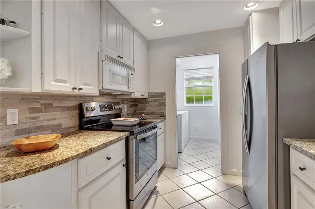 Inside, you’ll find a beautifully renovated interior with fresh paint, tile and wood floors, a new refrigerator, and an electric range. The screened-in patio invites you to bask in the warm Florida sunshine.
