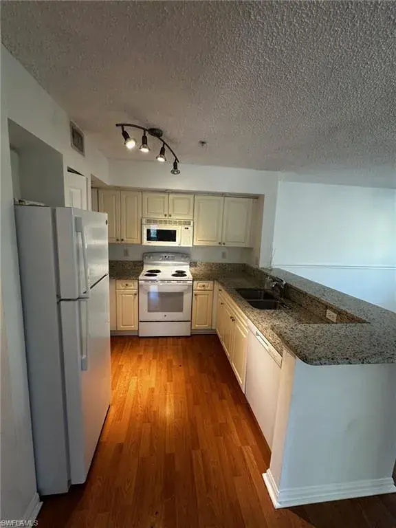 The open-concept floor plan includes a well-equipped kitchen with granite countertops, a pantry, breakfast bar, and dining area. The family room flows seamlessly to a private lanai and balcony—perfect for relaxing with morning coffee or evening cocktails. The bedrooms are comfortable and inviting. The bathroom has a tub/shower combination providing a peaceful retreat after a long day. Recent updates include a newer roof and upgraded washer, dryer, kitchen appliances, water heater, and HVAC, ensuring convenience and peace of mind. As an end unit, the condo benefits from added natural light and extra privacy with no neighbors on one side.