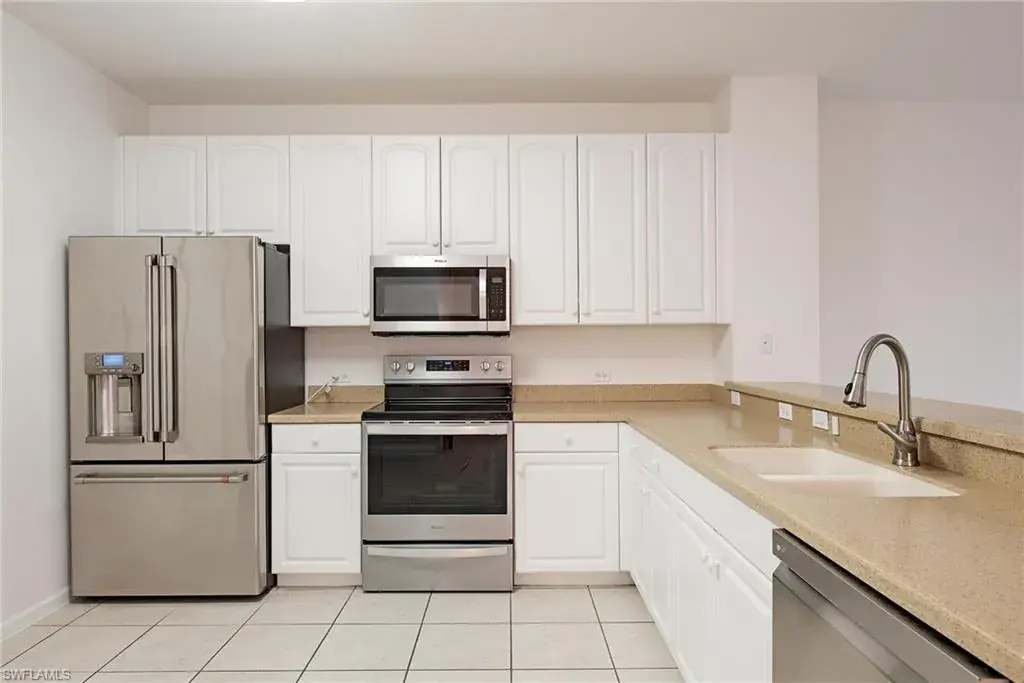Step into this beautiful move-in-ready first-floor condo featuring 3 bedrooms and 2 baths. This residence showcases new carpet that adds warmth, complemented by beautiful large tile in the common areas for an elegant and low-maintenance lifestyle. The modern open and bright kitchen is equipped with sleek stainless steel appliances, perfect for hosting delightful dinners at home.