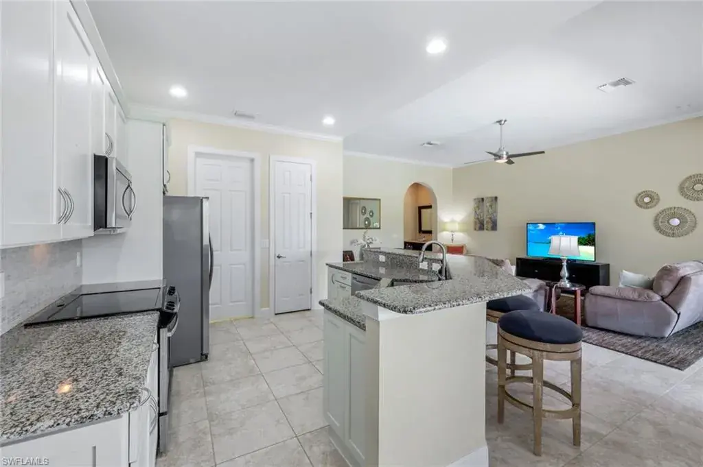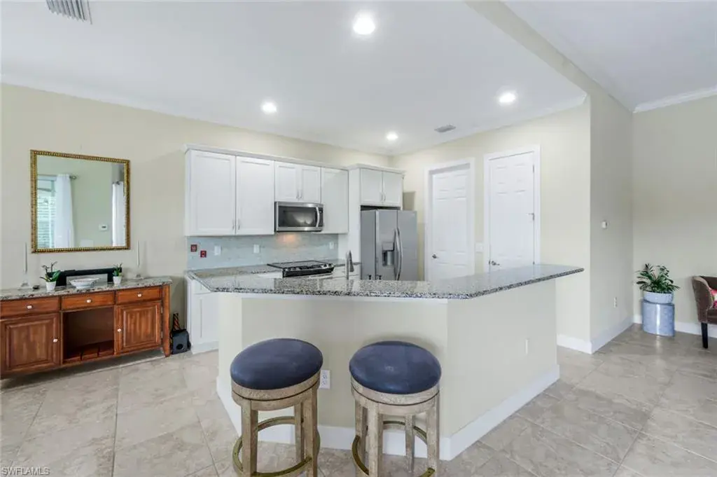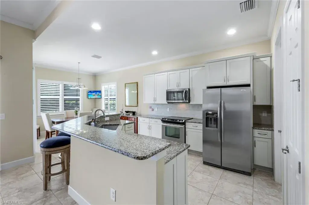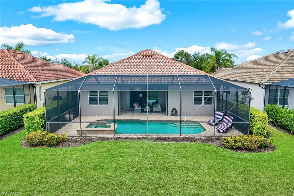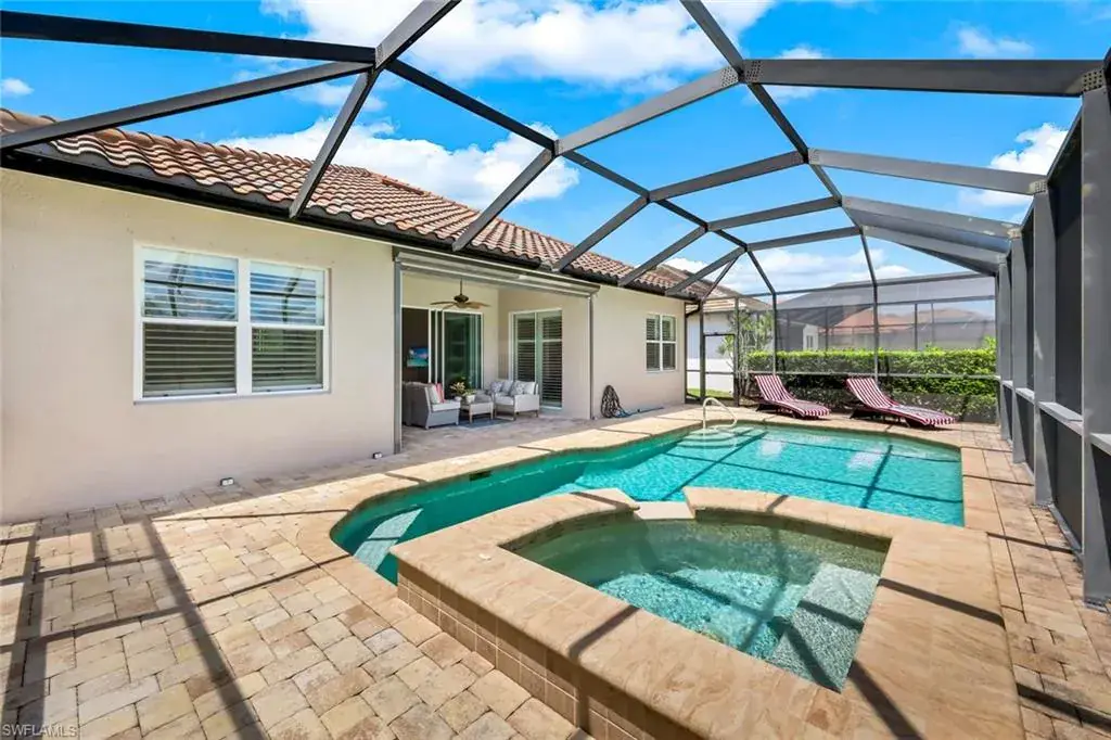 Are you looking for a luxury, amenity-rich optional golf and boating community? Look no further than The Quarry, an exceptional lakefront community sprawled across over 500 acres of pristine lakes. This immaculate 3 bedroom, 2 bath, 2 car garage home is situated on a large lot with stunning golf and preserve views and is now being offered TURNKEY! ALL YOU NEED IS YOUR SUITCASE TO START ENJOYING THE FLORIDA LIFESTYLE! The light and bright kitchen is perfect for entertaining family and friends and features white shaker cabinets with pull out drawers, granite countertops, and stainless-steel appliances. Enjoy sitting on your spacious lanai with a saltwater pool and spa overlooking the golf course. Additional features include 20-inch tile floors in the main living area, upgraded luxury plank floors in the bedrooms, plantation shutters, electric shutters on the lanai, NEW AC plus more! This gated, amenity-rich environment is perfect for golfing, boating, water skiing, jet skiing, kayaking, and fishing enthusiasts. Enjoy the Beach Club, which features a resort pool, lap pool, hot tub, tennis, pickleball, and bocce courts, a Tiki bar with poolside food and beverage service, a state-of-the-art wellness center, and a full-time activities director who organizes a variety of social events. There is also NO WAITLIST for OPTIONAL golf membership to The Quarry Golf Lodge and a NEW Limited-time 3-year payment plan available for the PGA-level Hurdzan-Frye 18-hole golf course. Whether you are an avid golfer or simply want the lifestyle without the obligation, discover The Quarry!