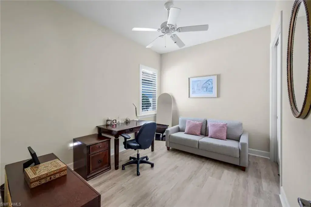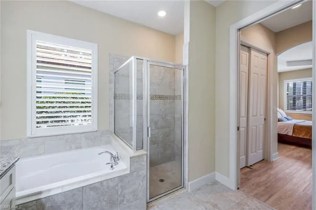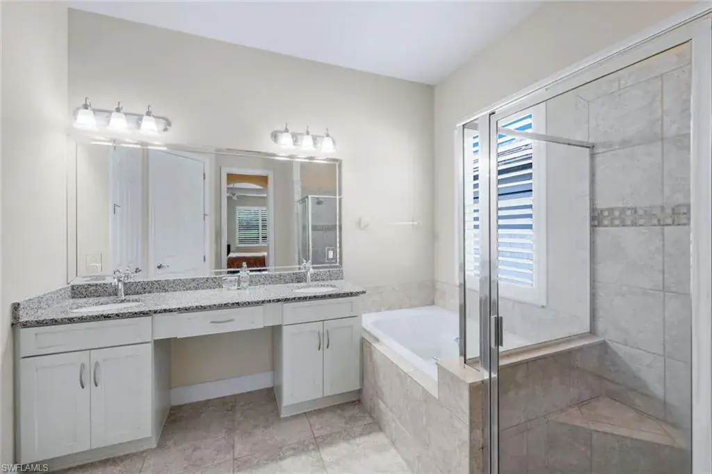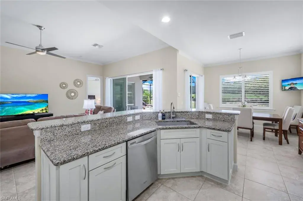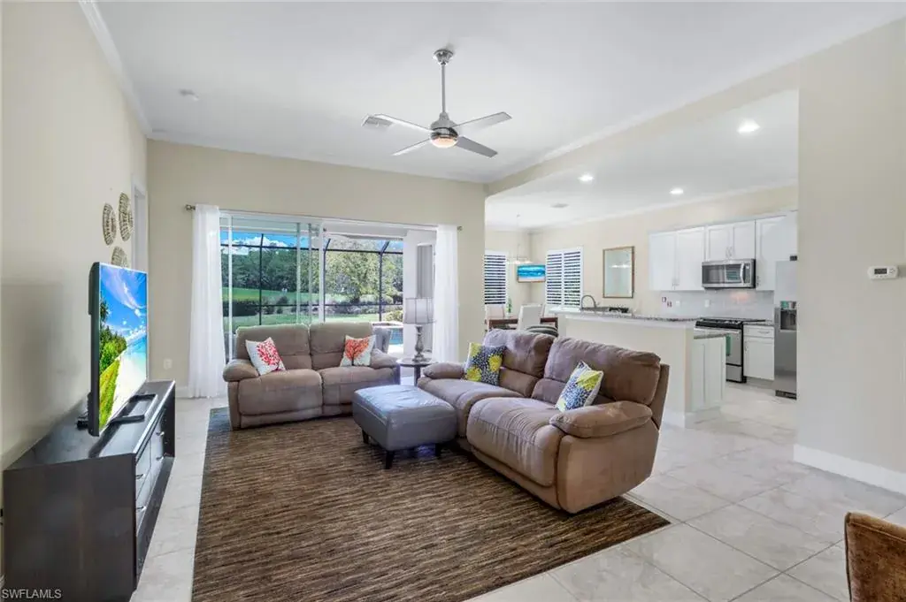 Are you looking for a luxury, amenity-rich optional golf and boating community? Look no further than The Quarry, an exceptional lakefront community sprawled across over 500 acres of pristine lakes. This immaculate 3 bedroom, 2 bath, 2 car garage home is situated on a large lot with stunning golf and preserve views and is now being offered TURNKEY! ALL YOU NEED IS YOUR SUITCASE TO START ENJOYING THE FLORIDA LIFESTYLE! The light and bright kitchen is perfect for entertaining family and friends and features white shaker cabinets with pull out drawers, granite countertops, and stainless-steel appliances. Enjoy sitting on your spacious lanai with a saltwater pool and spa overlooking the golf course. Additional features include 20-inch tile floors in the main living area, upgraded luxury plank floors in the bedrooms, plantation shutters, electric shutters on the lanai, NEW AC plus more! This gated, amenity-rich environment is perfect for golfing, boating, water skiing, jet skiing, kayaking, and fishing enthusiasts. Enjoy the Beach Club, which features a resort pool, lap pool, hot tub, tennis, pickleball, and bocce courts, a Tiki bar with poolside food and beverage service, a state-of-the-art wellness center, and a full-time activities director who organizes a variety of social events. There is also NO WAITLIST for OPTIONAL golf membership to The Quarry Golf Lodge and a NEW Limited-time 3-year payment plan available for the PGA-level Hurdzan-Frye 18-hole golf course. Whether you are an avid golfer or simply want the lifestyle without the obligation, discover The Quarry!