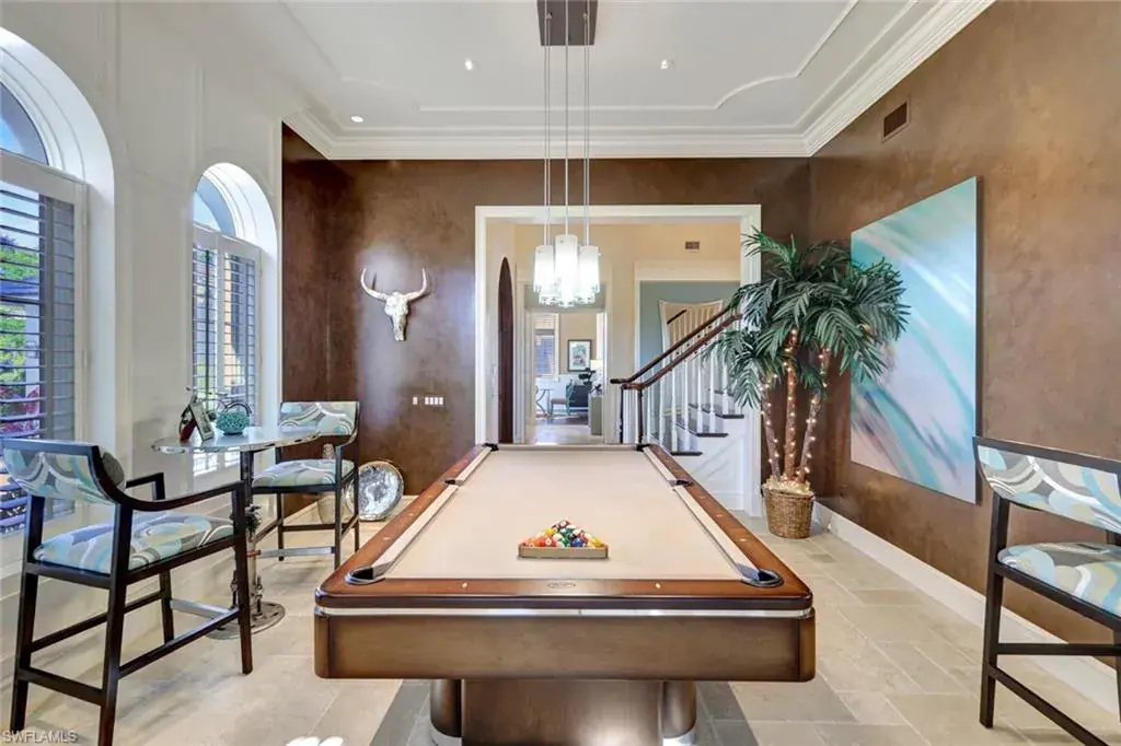 This extraordinary estate home offers an opportunity to own a masterpiece of luxury and design. Situated on a large freshwater lake in The Quarry, every detail reflects exceptional craftsmanship and architectural design in an impressive 7122 square feet (5306 sq ft under air). Entering through massive carved wooden doors introduces the 2-story foyer highlighted by a grand staircase of dark espresso and white wood. Continue through the white wood paneled archway to the open living room revealing stunning panoramic views of lakefront property that will captivate your senses and create a serene backdrop for your everyday life. Perfectly suited for hosting gatherings and entertaining guests, the chef-inspired kitchen is designed for gourmet culinary adventures with high-end branded appliances, an 8-burner cooktop and walk-in pantry. Adding to the entertainment options are the separate wine bar and game room complete with another wine refrigerator and convenient Butler’s pantry. The Master Suite reveals a true sanctuary of relaxation with an intimate bay window seating area overlooking the water. Custom designed His and Her closets offer built in cabinetry including dressers and wardrobes. An exquisite primary bath provides a spa-like experience with dual vanities, a separate water closet, and oversized shower and soaking tub. Attention to detail continues in the upstairs Lounge and Guest Suites with access to another outside balcony where you can enjoy an aerial perspective of the recreational lake and pool. This spacious floor, with 3 full bathrooms and a flex lounge area, can sleep up to 10 people. The Quarry community delivers an unmatched array of amenities that cater to a wide range of interests. The newly renovated Beach Club serves as the social and recreational hub, offering both casual and formal dining options. A two-story fitness center provides a variety of classes ensuring residents have access to top-notch wellness programs. Sports enthusiasts will appreciate the tennis, pickleball, and bocce courts, while golfers can indulge in the private 18-hole course designed by the renowned Hurdzan-Fry team. For those who love the outdoors, The Quarry is a paradise of natural beauty and adventure. Over 500 acres of navigable lakes invite exploration by boat, kayak, paddleboard, or fishing excursions. Scenic walking trails wind through lush preserves, offering opportunities to connect with nature and enjoy the tranquility of the surroundings. Owning an estate home of this caliber is truly a dream come true for those seeking the ultimate in comfort, elegance and recreation.