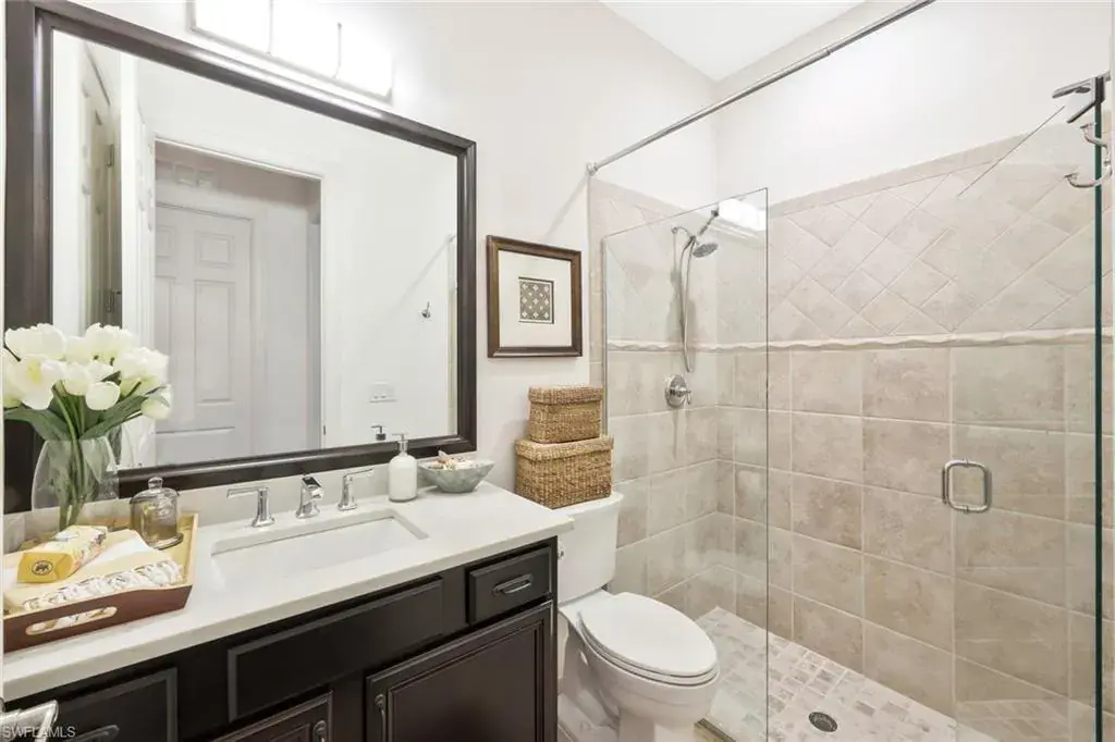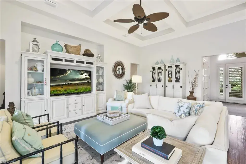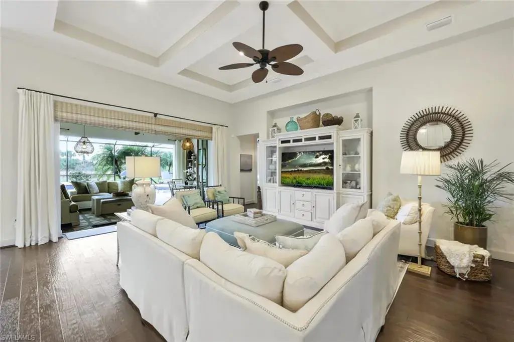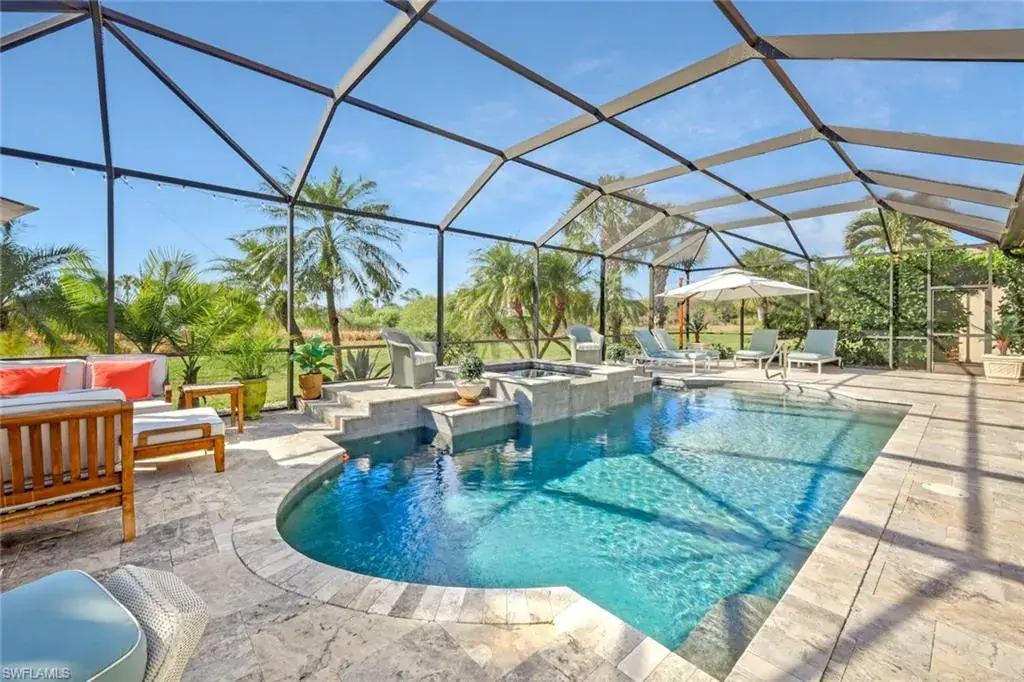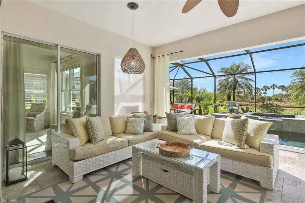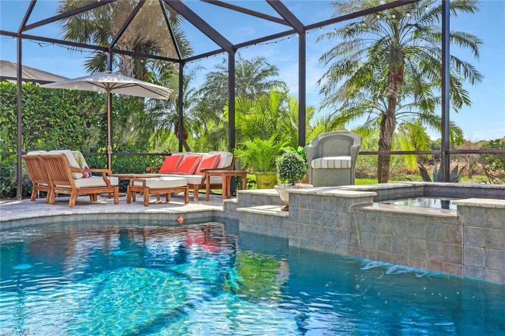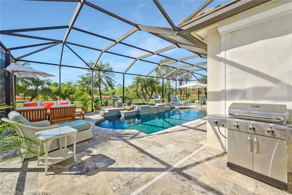 BREATHTAKING SUNSETS await you in your dream home in The Quarry! This stunning TURNKEY single-family home is just under 2700 square feet and offers 3 bedrooms plus a den, 3 bathrooms, and a 3-car garage, providing ample space for you and your family. The CUSTOM in-ground pool with spa surrounded by marble imported tile from Europe is perfect for relaxing and entertaining guests, while the office offers a quiet space to work from home. The NEWLY installed quartz countertops, refrigerator, and dishwasher add a touch of luxury to the kitchen, which also features an INDUCTION cook top for easy meal preparation. The crown molding throughout the home and the CUSTOM CABINETRY in the pantry and primary closet add an elegant touch, making this property truly stand out. Additionally, an OPTIONAL IMMEDIATE GOLF MEMBERSHIP available allows membership privileges without waiting! The natural beauty of Southwest Florida is evident everywhere in The Quarry with incredible nature preserves, abundant wildlife, and expansive lakes. Stone Lake is one of the few navigable lakes in Southwest Florida where residents enjoy boating, water skiing, and kayaking. The Quarry also has a lap pool, resort pool, fitness and wellness center, tennis, pickleball and bocce. Dining at its finest is available at the Indoor/Outdoor restaurant and Tiki Bar. In addition, optional golf memberships are offered at the privately owned Quarry Golf Club. Designed by world-renowned architectural team of Dr. Michael Hurdzan and Dana Fry in 2007, this Par 72 championship golf course offers an exceptional golf experience with spectacular views. Don’t miss out on the opportunity to make this house your forever home.