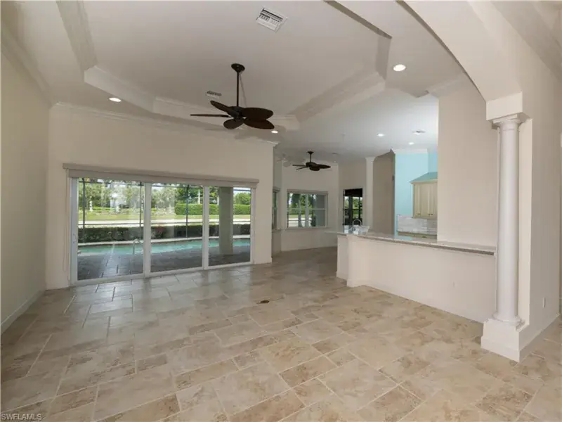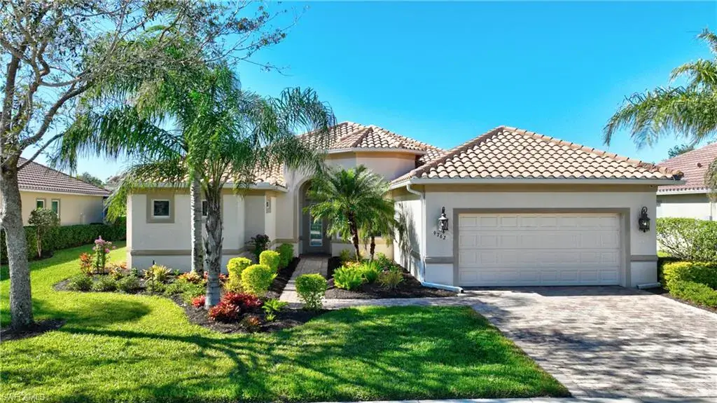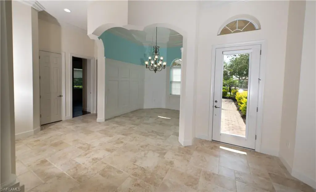 Upgrades galore! This home is a must-see with its fresh paint, a newer kitchen complete with KitchenAid appliances, Carrea Marble countertops, hurricane impact windows throughout, custom cabinetry and a walk-in pantry. The great room is spacious thanks to the removal of the interior partition. Enjoy dinner on the oversized covered lanai by your solar heated saltwater pool and watch the sunset across the lake. The dramatic master suite opens to the Lania and boasts 2 large custom closets, a soaking tub, dual shower heads and dual sinks. The stunning wainscot dining room overlooks the newly landscaped garden. Upscale features include 12 ft. ceilings, tray ceilings, large crown molding, solid wood cabinetry, custom closet cabinetry in every closet, granite and wood floors with upgraded tiles, epoxy garage floor, extended garage and storage. Nestled in North Naples. The Quarry is a one of a kind community built around 3 pristine lakes, approximately 500 acres of interlocking waterways and navigable Stone Lake at its heart. Enjoy boating, water skiing, kayaking or beach activities.