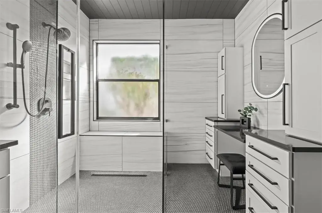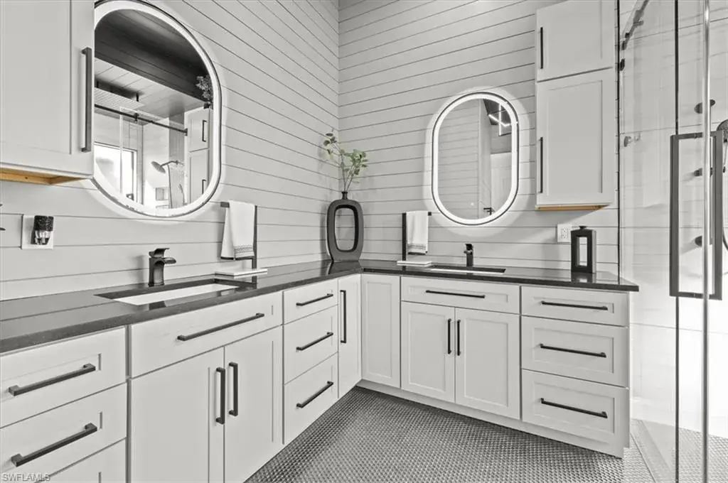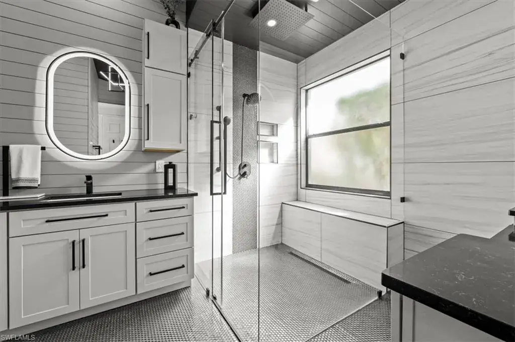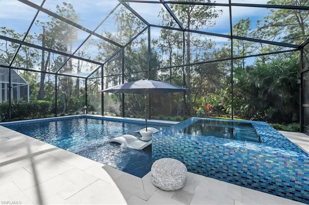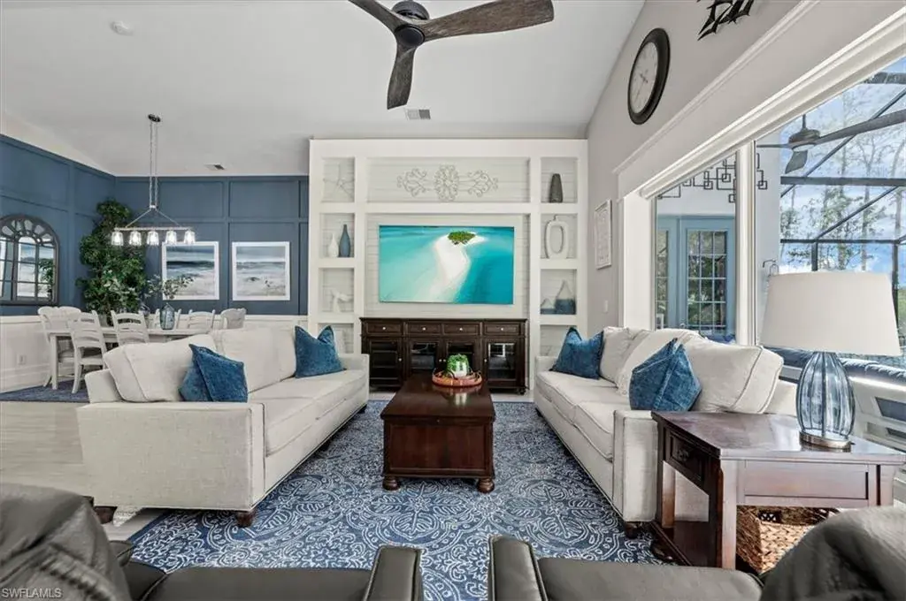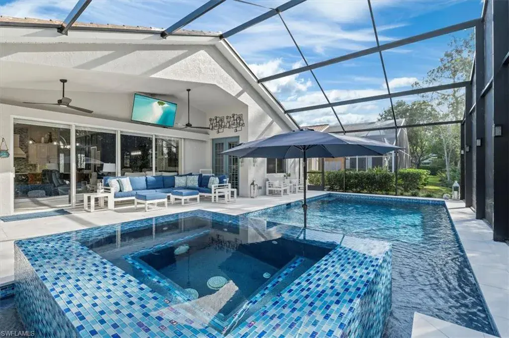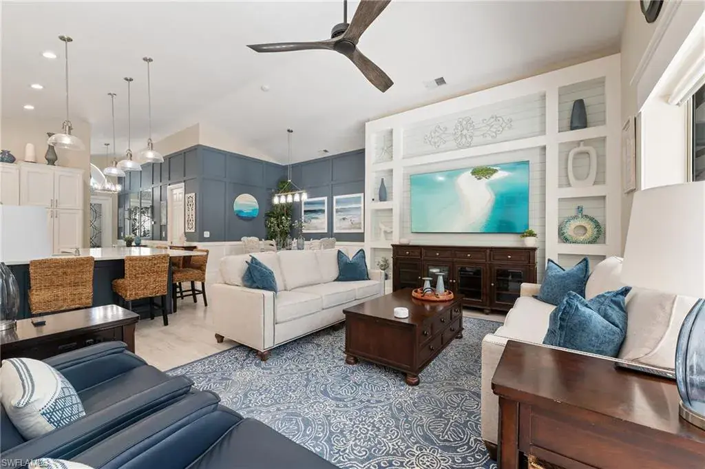 Welcome to one of the most impressive homes ever listed in The Shores at Berkshire Lakes! This fully renovated 3-bedroom, 2-bath home offers over 2,000 square feet of beautifully designed living space. Brand new roof installed 2025. From the moment you walk in, you’ll notice high ceilings, custom woodwork, and an abundance of natural light. The interior features wide plank tile flooring throughout, custom cabinetry, quartz countertops, and a hidden butler’s pantry. The chef’s kitchen is outfitted with brand-new Wi-Fi-enabled appliances, while the living and dining spaces are accented with shiplap, custom paint, upgraded lighting, and ceiling fans. The luxurious primary suite is a true retreat with motorized shades, custom closets and drawers, and a stunning spa-like bathroom complete with a frameless glass shower. Additional highlights include a newer HVAC system, Tesla EV charger, and protective Trulock PVC flooring in the garage. Step outside to your private backyard oasis featuring a brand-new infinity-edge spa, oversized spa, sun shelf, and a screened lanai. The outdoor kitchen includes a large BBQ grill table and mounted TV, all with ideal southern exposure for all-day sun. Located in an X Flood Zone (high and dry), this home combines peace of mind with luxurious comfort. The Shores is a gated, amenity-rich community with extremely low HOA fees of just $367/month, which include cable, Wi-Fi, lawn care, irrigation, and security. Residents enjoy access to a clubhouse, fitness center, large community pool, tennis and pickleball courts, playground, billiards, ping-pong, and more. Conveniently located just minutes from Berkshire Commons with Publix, First Watch, Walgreens, and other everyday conveniences, and only 10 minutes to Downtown Naples, 5th Avenue, 3rd Street South, Naples Pier, and the beaches. This is a rare opportunity to own a move-in-ready, fully furnished, luxury home in one of Naples’ most desirable communities. Don’t miss out—schedule your private tour today!