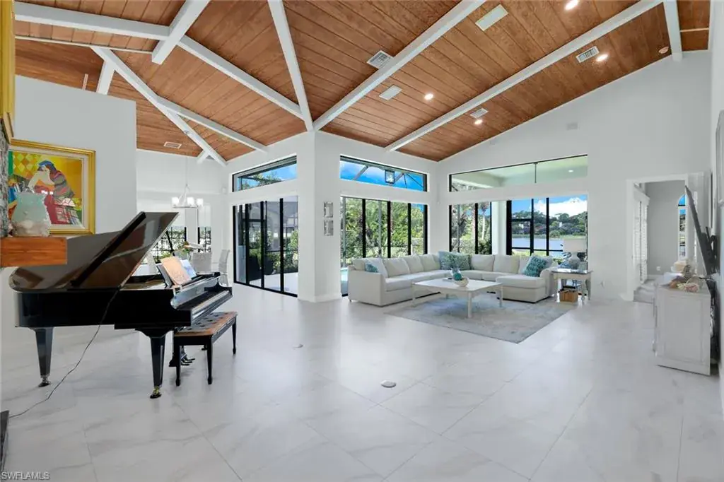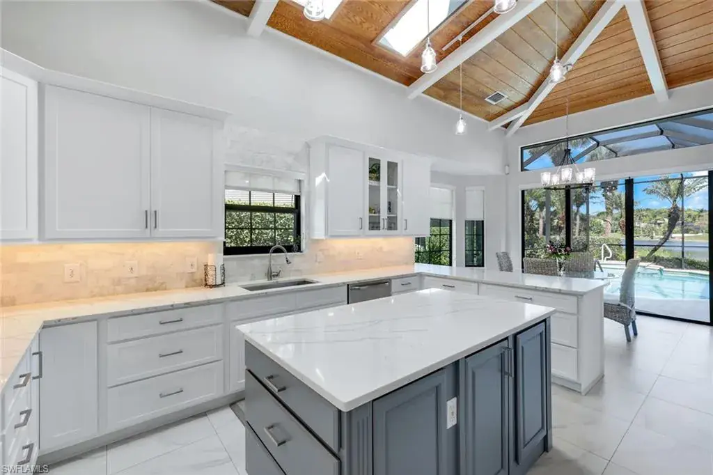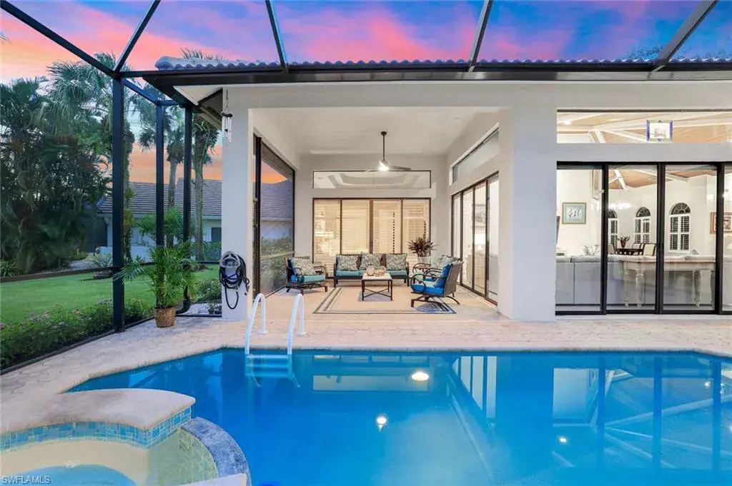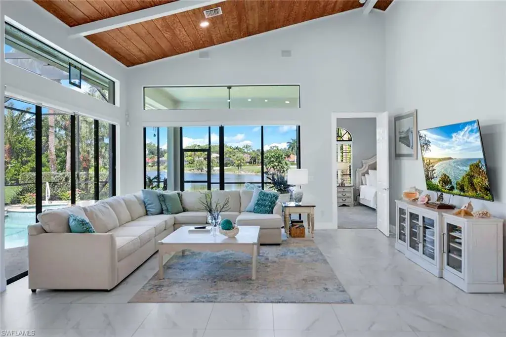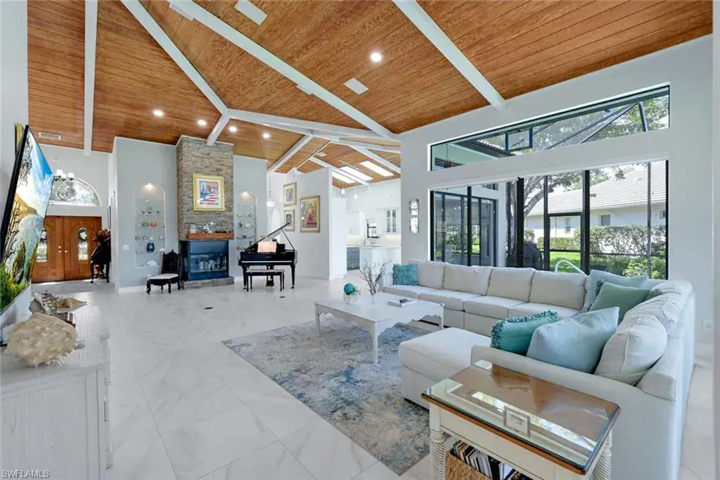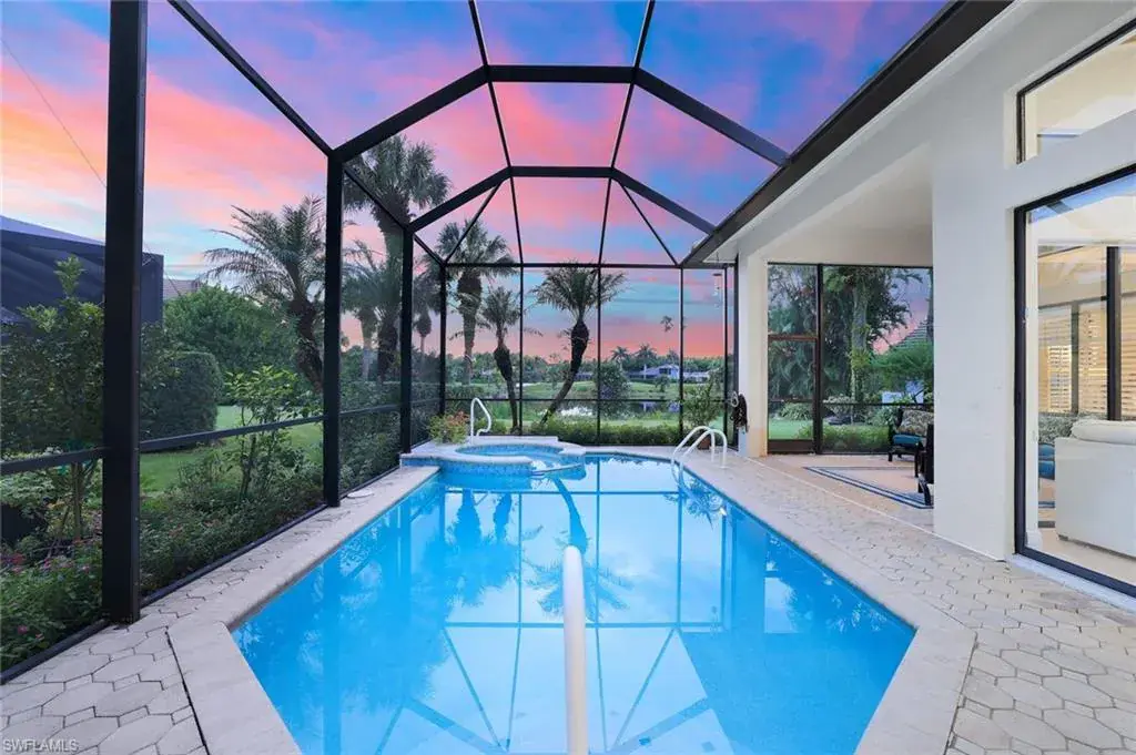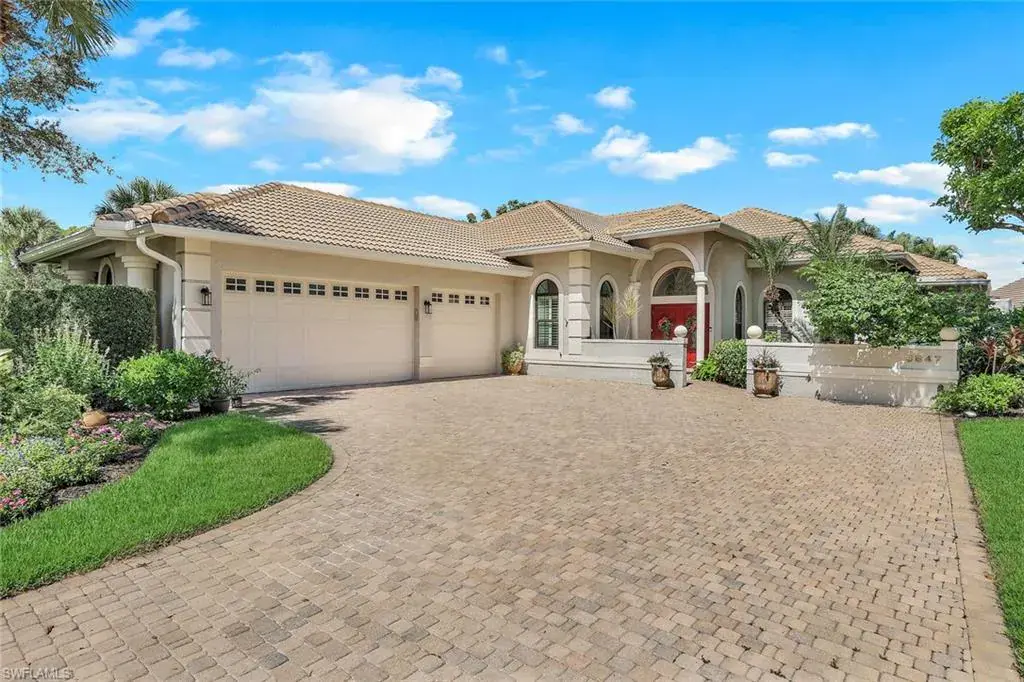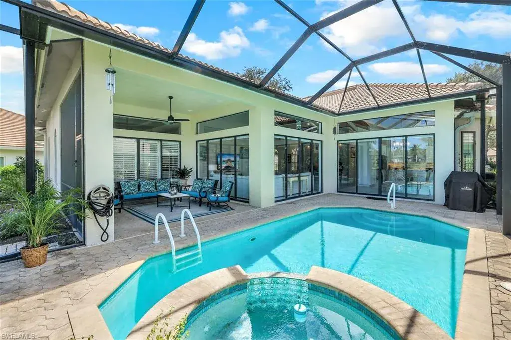 ***A 3rd BATHROOM IS BEING CONSTRUCTED*** Welcome to The Strand, a luxury membership based community located in North Naples. There is NO WAITING LIST and golf memberships are optional. Take pleasure in a well-balanced entertainment, dining, wellness, and recreational lifestyle. Enjoy every amenity you might want, all conveniently located near your daily needs and within a Top Rated School District! The picturesque community promotes privacy and tranquility while maintaining a friendly atmosphere. This estate home has outstanding curb appeal with a long paver driveway set on an appx .43-acre lot with stunning views overlooking the lake with golf course behind it that captivates you the instant you enter. 2,925 square feet of living space, 3 bedrooms plus a large enclosed den that can be used as a fourth bedroom if desired, 2 bathrooms (THE 3rd BATHROOM IS PLANNED FOR CONSTRUCTION), 3 car garage, vaulted ceilings, fireplace, large covered lanai, heated pool/spa, plenty of closet/storage, 8′ doors, window treatments + plantation shutters throughout, and lush – mature landscaping are all features of this spacious floor plan. Move in right away without any worries because all the most wanted upgrades and maintenance have been taken care of. TILE ROOF (2021), GUTTERS (2021), IMPACT WINDOWS (2023), POOL CAGE (2020), POOL EQUIPMENT and RESURFACE (2021), Double A/C UNITS (2020), EPOXY GARAGE FLOOR (2024), REMODELED CHEFS KITCHEN w/SOFT CLOSE CABINETS (2024), INTERIOR PAINT (2024), ENCLOSED ATRIUM (2021), IMPACT SKYLIGHTS (2021) and more…Watch video tour!
