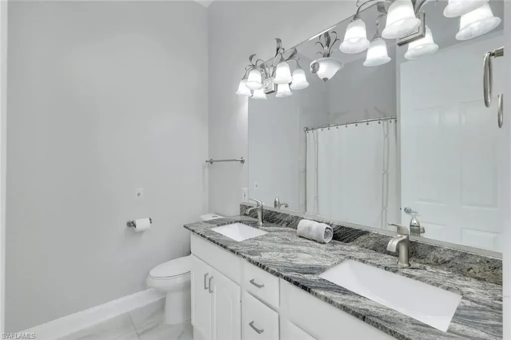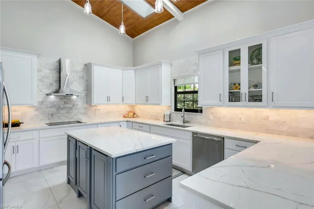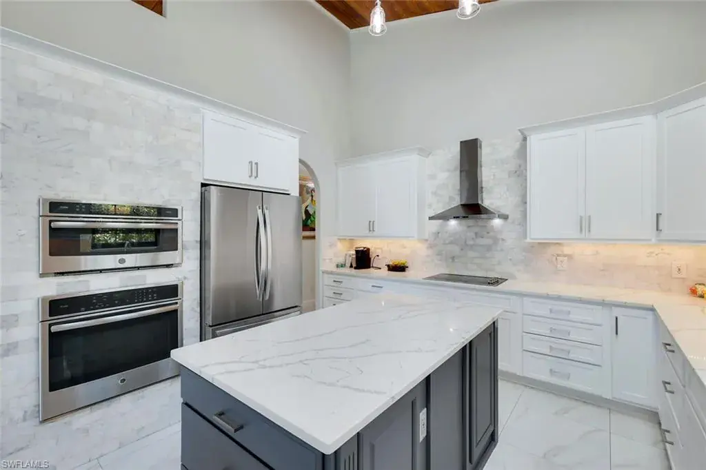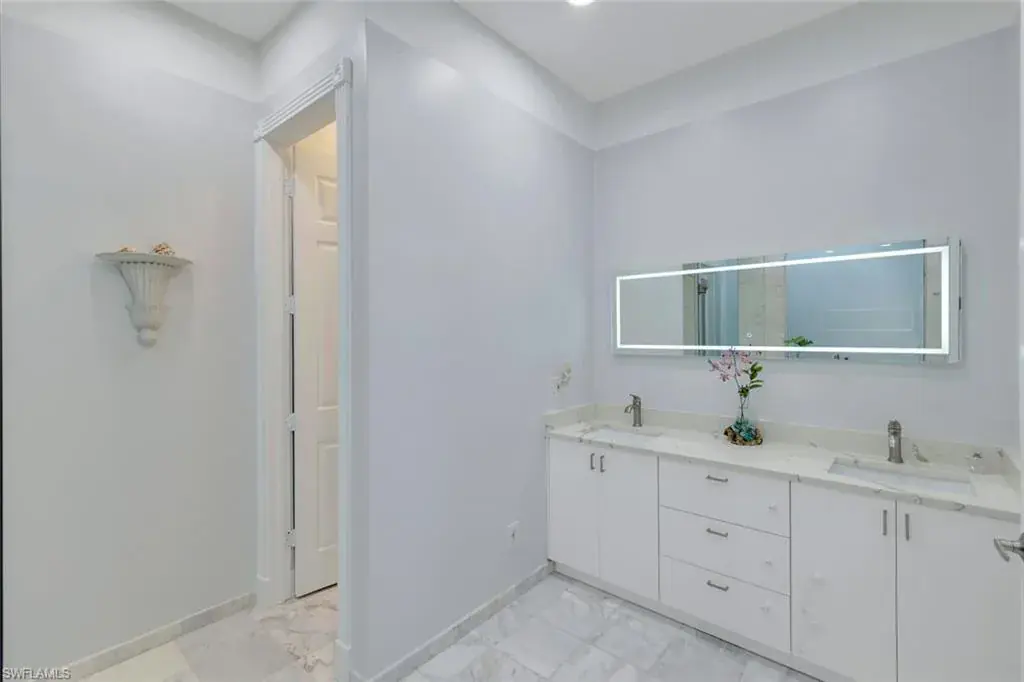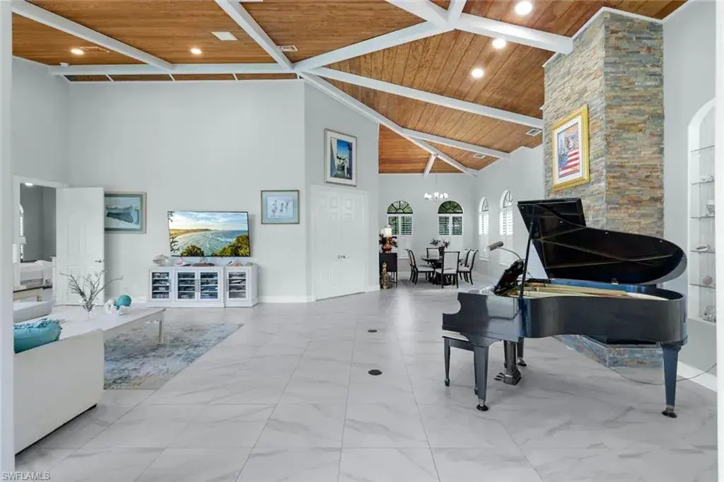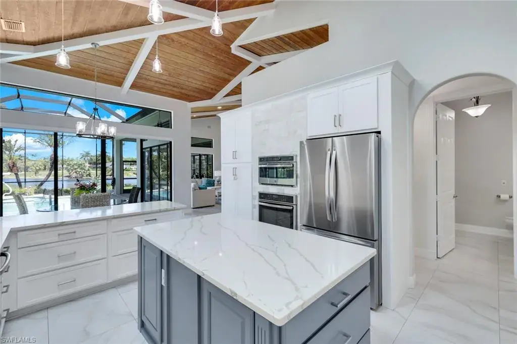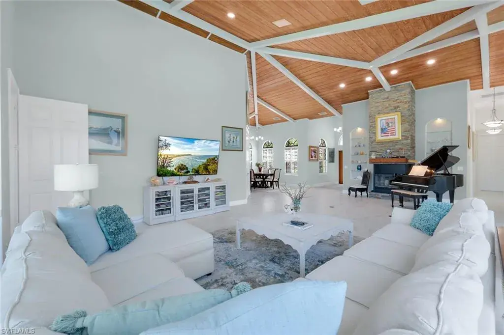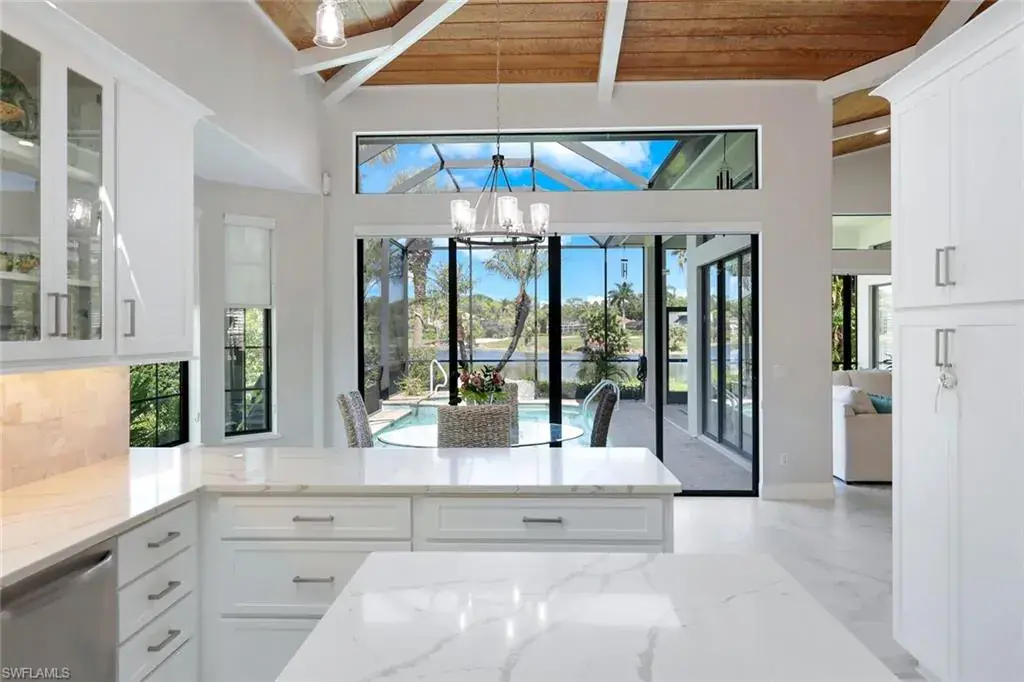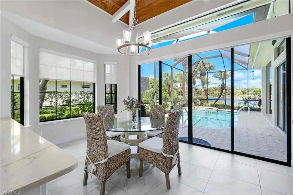 ***A 3rd BATHROOM IS BEING CONSTRUCTED*** Welcome to The Strand, a luxury membership based community located in North Naples. There is NO WAITING LIST and golf memberships are optional. Take pleasure in a well-balanced entertainment, dining, wellness, and recreational lifestyle. Enjoy every amenity you might want, all conveniently located near your daily needs and within a Top Rated School District! The picturesque community promotes privacy and tranquility while maintaining a friendly atmosphere. This estate home has outstanding curb appeal with a long paver driveway set on an appx .43-acre lot with stunning views overlooking the lake with golf course behind it that captivates you the instant you enter. 2,925 square feet of living space, 3 bedrooms plus a large enclosed den that can be used as a fourth bedroom if desired, 2 bathrooms (THE 3rd BATHROOM IS PLANNED FOR CONSTRUCTION), 3 car garage, vaulted ceilings, fireplace, large covered lanai, heated pool/spa, plenty of closet/storage, 8′ doors, window treatments + plantation shutters throughout, and lush – mature landscaping are all features of this spacious floor plan. Move in right away without any worries because all the most wanted upgrades and maintenance have been taken care of. TILE ROOF (2021), GUTTERS (2021), IMPACT WINDOWS (2023), POOL CAGE (2020), POOL EQUIPMENT and RESURFACE (2021), Double A/C UNITS (2020), EPOXY GARAGE FLOOR (2024), REMODELED CHEFS KITCHEN w/SOFT CLOSE CABINETS (2024), INTERIOR PAINT (2024), ENCLOSED ATRIUM (2021), IMPACT SKYLIGHTS (2021) and more…Watch video tour!