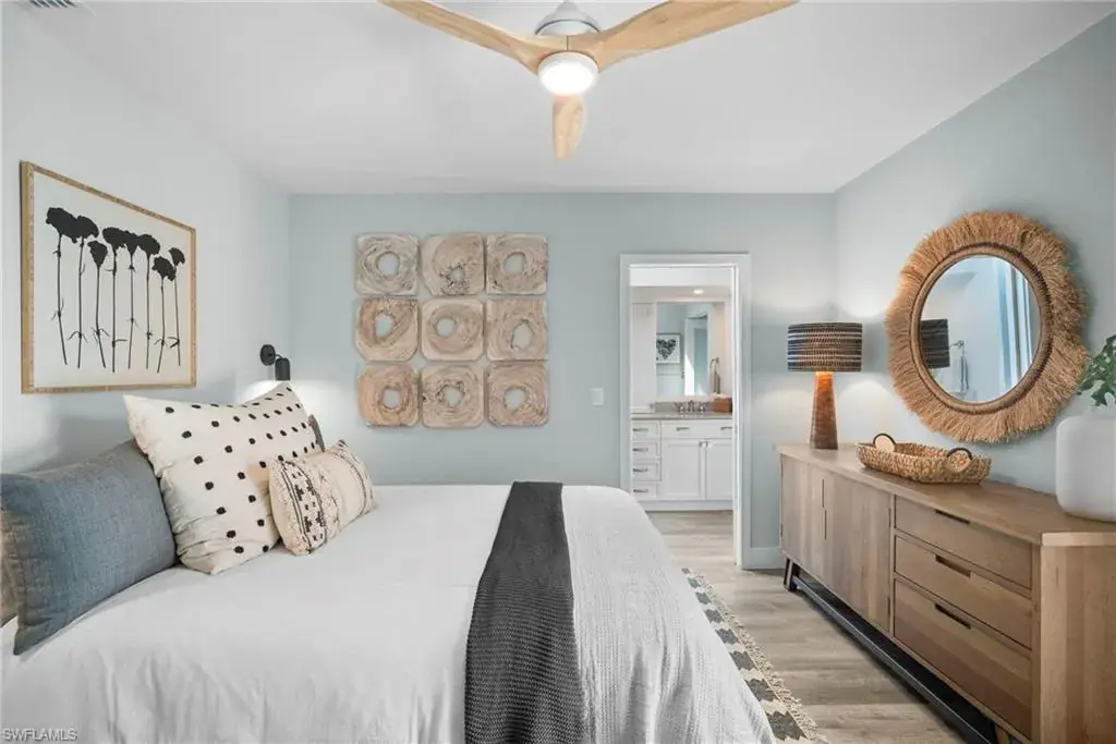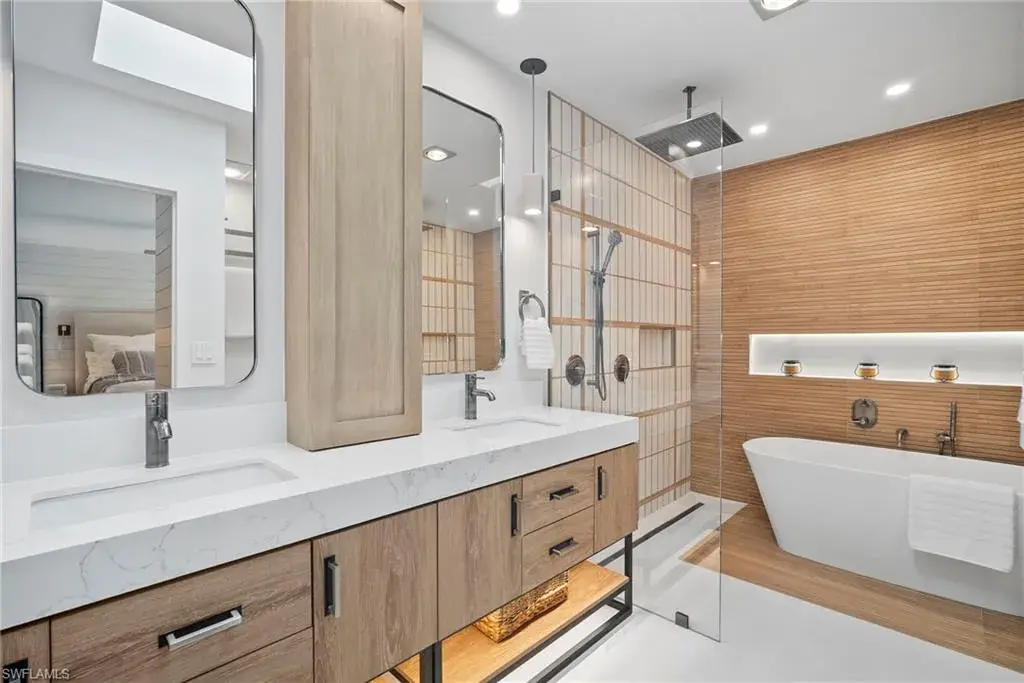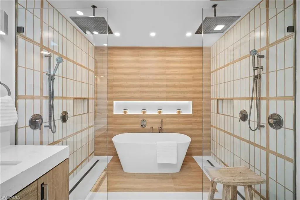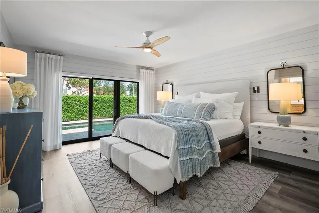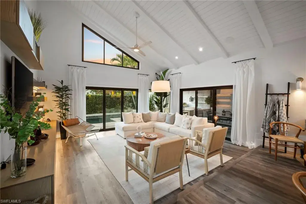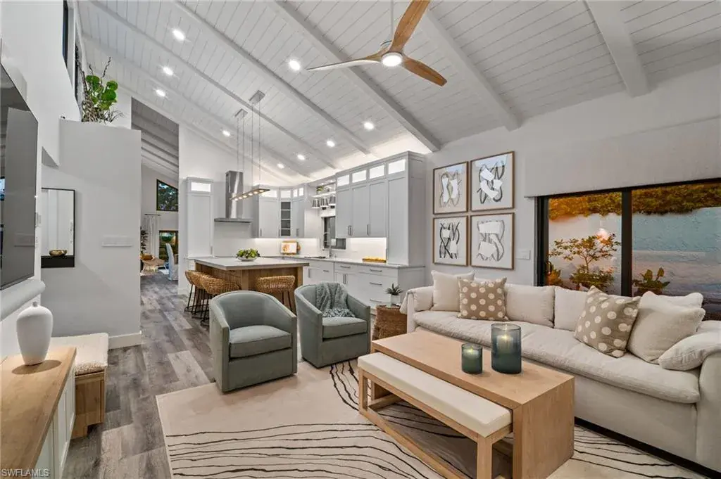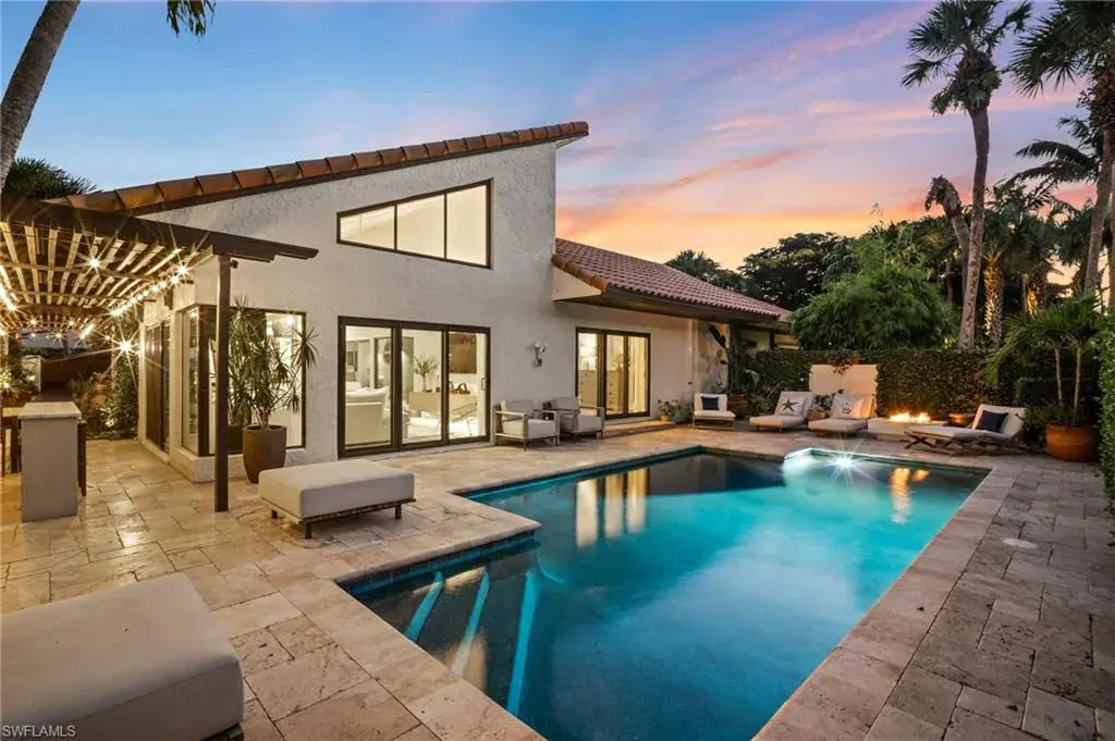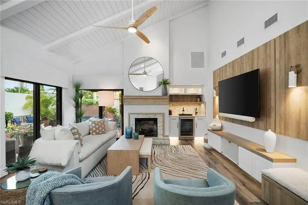 This exceptional, award-winning villa has undergone a complete, million-dollar transformation, seamlessly blending timeless charm with contemporary, luxury. Meticulously redesigned and remodeled by Bennett Design Group of Naples, every inch of this home exudes thoughtful design, quality, comfort, and coastal sophistication—perfectly suited for relaxed living in the heart of Naples. Beyond the private courtyard gate, a tropical oasis awaits. A serene water feature welcomes you into a lushly landscaped courtyard that serves as the heart of the home, complete with a newly installed outdoor kitchen, multiple entertaining areas, and a heated saltwater pool—capturing the true essence of Florida outdoor living. Boasting impeccable craftsmanship, custom finishes, and high-end details throughout, this residence truly stands apart. Inside, the home offers 3 bedrooms plus a den, 2.5 baths, and a spacious two-car garage. Vaulted, beamed ceilings, large windows and sliders, and an open layout welcome in the natural light. A unique interior atrium with a new fountain and a cozy fireplace adds a distinctive architectural touch. An expansive new kitchen opens to the casual den with multiple rooms having access to the courtyard. The home features all-new systems for peace of mind and investment confidence: new HVAC systems, a new water heater, new Halo water filtration system, new plumbing and piping, a new pool pump and heater, impact windows, sliders and doors and new automatic window treatments for modern convenience. Located in the highly desirable neighborhood of Tierra Mar within Pelican Bay, this home offers an unmatched lifestyle. You’re just a short walk to Artis–Naples, Waterside Shops, and pristine beach access close-by. Pelican Bay residents enjoy exclusive amenities, including private beachfront restaurants, beach services, tennis, fitness center, new pickleball courts, sailing, kayaking, canoes, beach trams, spa and wellness services, and a vibrant community center. Ideally located in X-500 flood zone with low HOA fees, this home is offered turnkey, with designer furnishings and accessories. This one-of-a-kind, move-in-ready villa presents a rare opportunity to enjoy luxury coastal living at its finest.