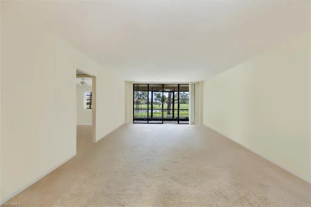 Discover Florida living at its finest in this spacious 1st-floor, 2-bedroom, 2-bath condo in the heart of Lely Country Club! Spanning 1,390 sq ft, this bright and airy residence boasts stunning golf course and pond views from nearly every room, framed by lush banyan trees and natural wildlife. The open split floor plan features a large living room with sliders to a private screened lanai, a separate dining area, and an eat-in kitchen. Convenience abounds with an in-unit washer and dryer, a newer A/C (2021), assigned covered carport, ample guest parking, and an extra-large storage unit. New roofs are scheduled for installation next year.