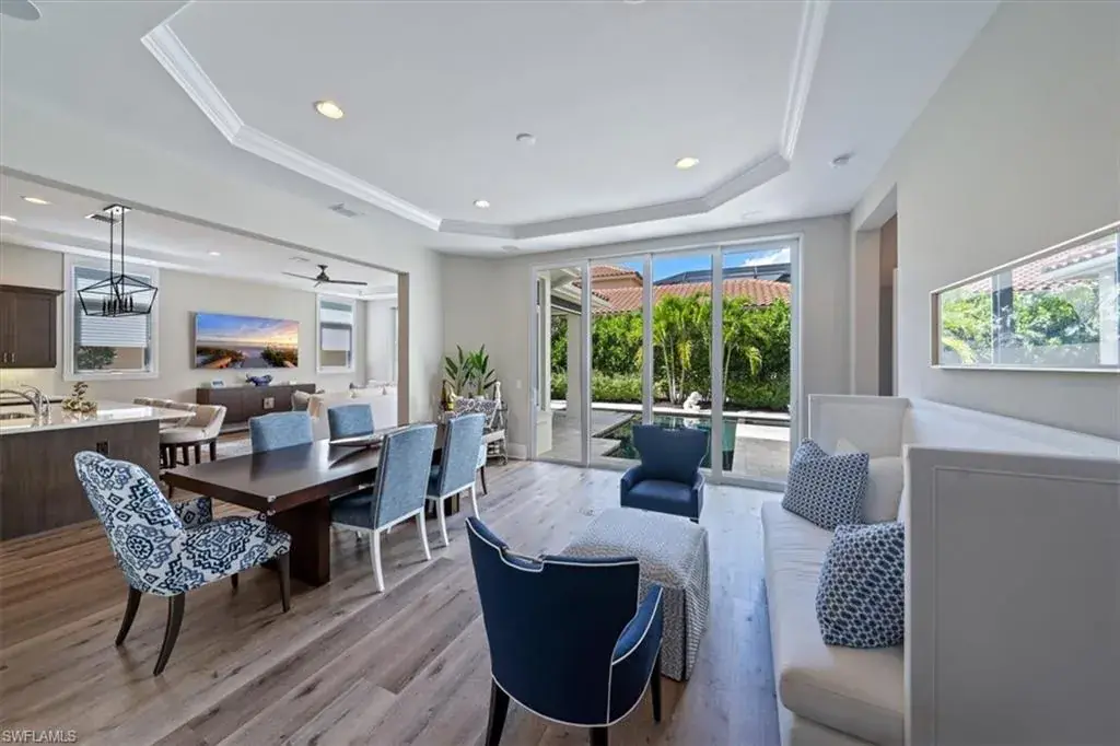 Excellent value! Open and bright 4-5 bedroom home built for family & entertaining yet designed to be comfortable for a couple & offered furnished. 4,462 sq ft on 2 levels, there are 2 principal suites & a large loft area with endless possibilities. A gracious foyer with elegant staircase welcomes guests & flows into the living room where a wall glass looks out to the very private dark bottom pool and spa with all day sun. The plan was opened so that the kitchen, family room and living room all function as one space allowing maximum usability. The kitchen is beautifully appointed and has a large pantry. It beckons gathering at the large island. Sliders lead to a covered lanai with outdoor kitchen & electric screens. Principal suites have excellent closets & large baths with both tubs and glass showers. Upstairs guest rooms also have great closets & two exposures allowing maximum natural light. Wired for home automation, there are speakers throughout. All of this is set in unmatched Grey Oaks with 3 championship courses, huge wellness center, multiple dining venues, tennis & pickle ball complex & resort pool. Minutes from 5th Ave & beach.