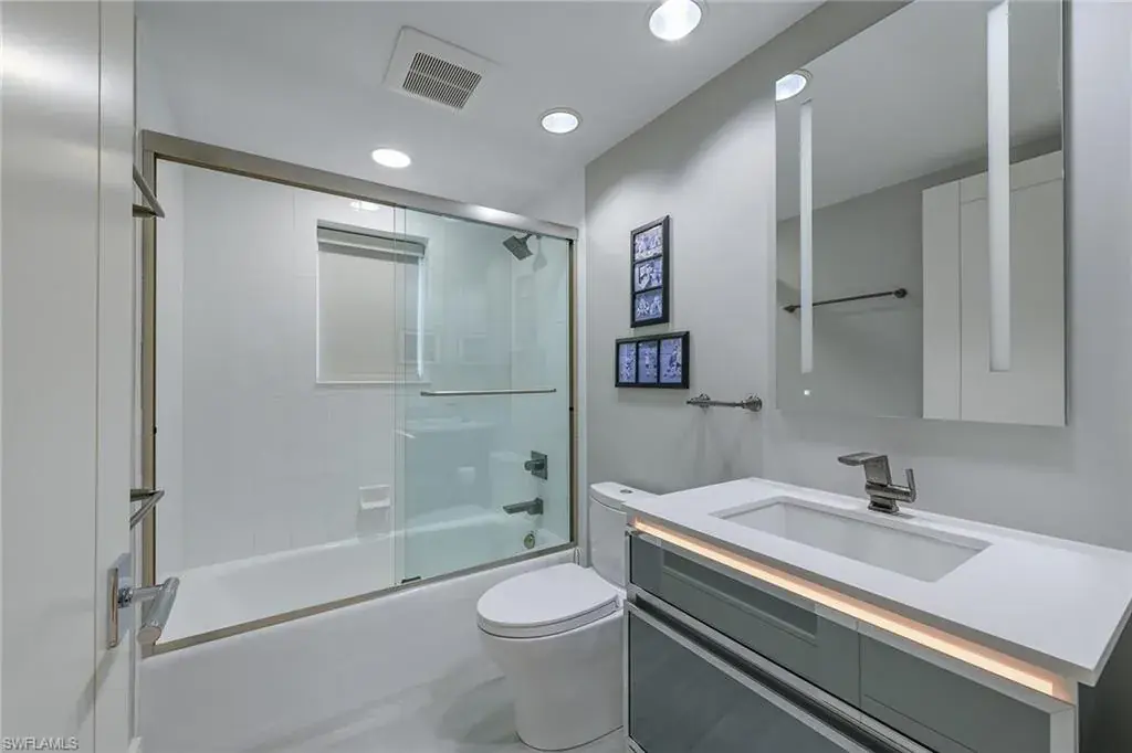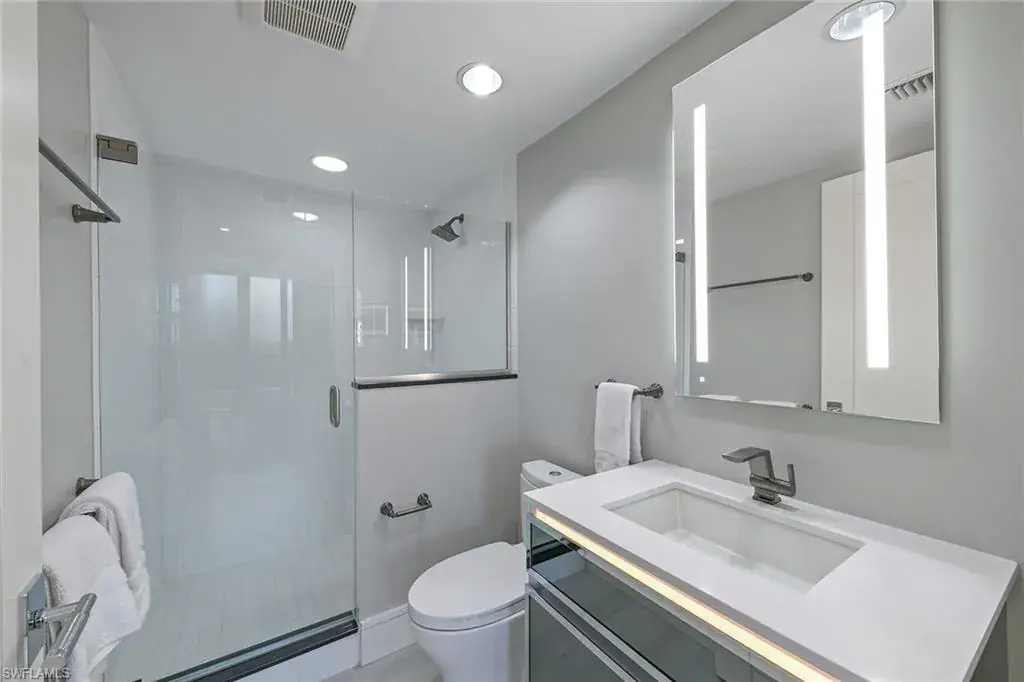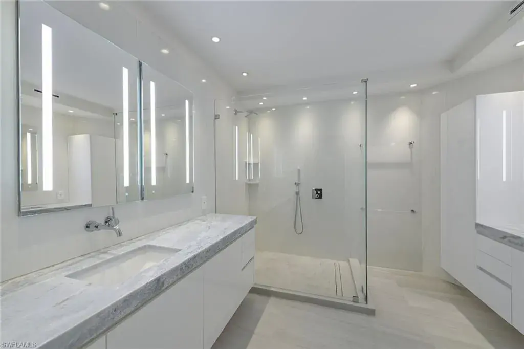 Gorgeous views and a masterful total renovation led by nationally renowned and award-winning architect Leif Kallquist who created an unmatched living experience in this custom designer three-bedroom three-bath Toscana residence. Featuring an open floor plan, a wall was removed to reveal a dream chef’s kitchen with a stunning oversized 10-foot quartz center island, custom soft-close Hans Krug cabinetry, Miele appliances with an induction cooktop, and designer-led cove lighting and fixtures. All ceilings were treated to coves or beams and LED lighting for art, mood and function, while doors and hardware were replaced throughout. Motorized shades and a smart-house control system were added as well. Custom entry doors welcome you as you step off the elevator with custom textured tile flooring sweeping into the open salon and dining area. The primary bath feels like an elevated spa experience with clean lines and designer white tile and fixtures. The Toscana common areas have been renovated and elevated to meet the discerning standards of its residents. Enjoy this one-of-a-kind residence in the gated enclave of Bay Colony with the privileged use of its private beach, tennis and beach club.