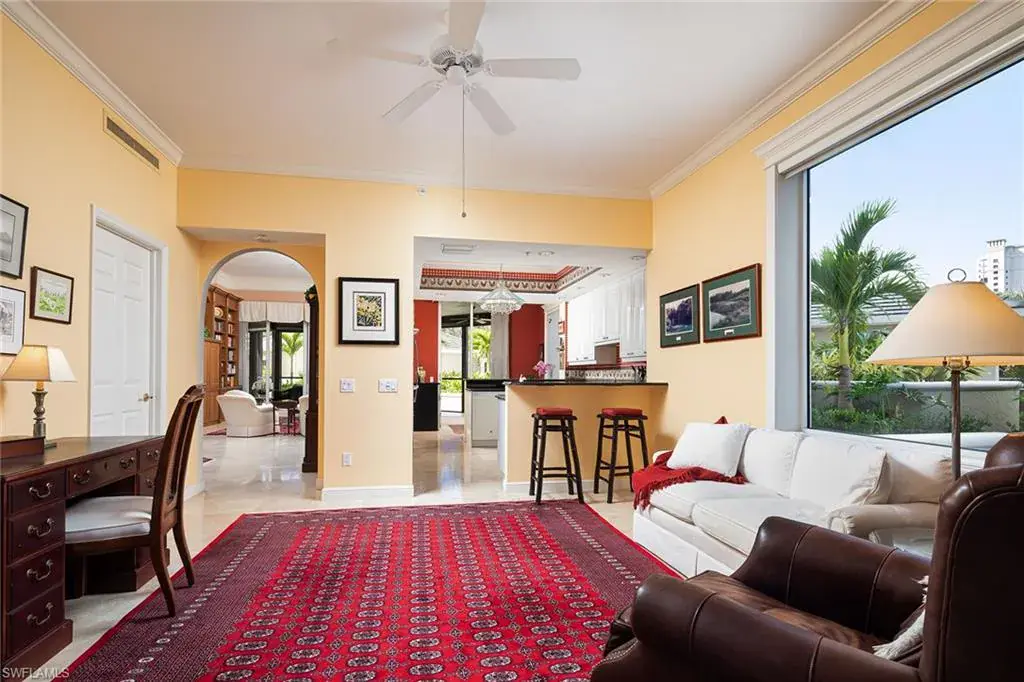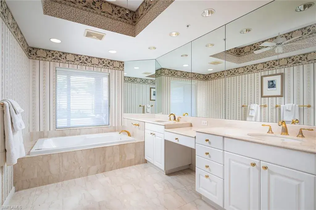 Seeking a gated beachfront community? Do not miss this exceptional opportunity in Bay Colony. Toscana has completed major improvements including new roof in 2024, a spectacular multi-million-dollar renovation of the lobby, social spaces, fitness area, guest suites, pool and spa and waterproofing. All this with condominium building fees decreasing in 2025. This three-bedroom, three-bath corner residence boasts volume ceilings up to 12 feet, the charm of a garden villa paired with all the amenities, carefree living, convenience and 24/7 security of a condominium. It features a great room, family room, two screened porches and your open-air terrace for seamless indoor and outdoor living and entertaining. With approximately 3,500 square feet of total living, this residence is move-in ready, freshly painted in a neutral palate that accommodates any décor. Additionally, unit 104 offers opportunities for renovations in 2026 and has secured a position in the 2027 construction schedule. The property includes two virtual tours: one showcasing the new palette and the other featuring photographs with furnishings. Also included are two under-building deeded parking spaces and personal air-conditioned storage. New modified elevators are scheduled for installation in 2026 without an assessment. MIRS and SIRS reports have been completed. Residents can enjoy access to the Bay Colony Beach Club, restaurant, and tennis club, as well as all Pelican Bay amenities, which include three beachfront restaurants, fully equipped and attended fitness facilities, tennis courts, and community centers. The community is adjacent to the Ritz-Carlton, providing many fine dining options and world-class shopping nearby.