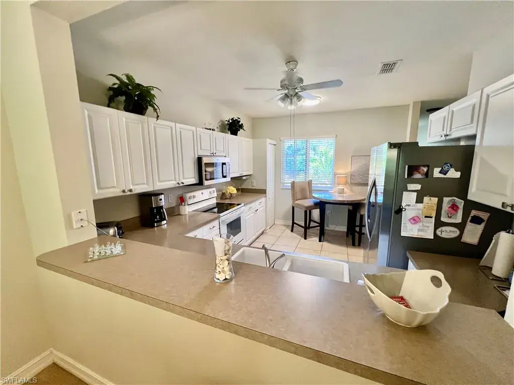Beautiful second floor coach home with soaring ceilings and attached 1 car garage. This well maintained is light and bright. The large eat in kitchen and spacious living room have lots of room for guests and entertaining and the peaceful preserve view from the screened lanai offers privacy and tranquility. A large master suite offers walk in closets and separate shower and soaking tub. A spacious one car garage has extra room for your toys, beach gear and even a grill, which can be used by rolling it out into your own driveway. Sapphire Lakes offers 4 pools, tennis, pickleball bocce and more. It is a lushly landscaped and gated community with an active social calendar and low fees. This unit is priced to sell based on recent closed sales. If you want value in a great location, come see this one before its gone.