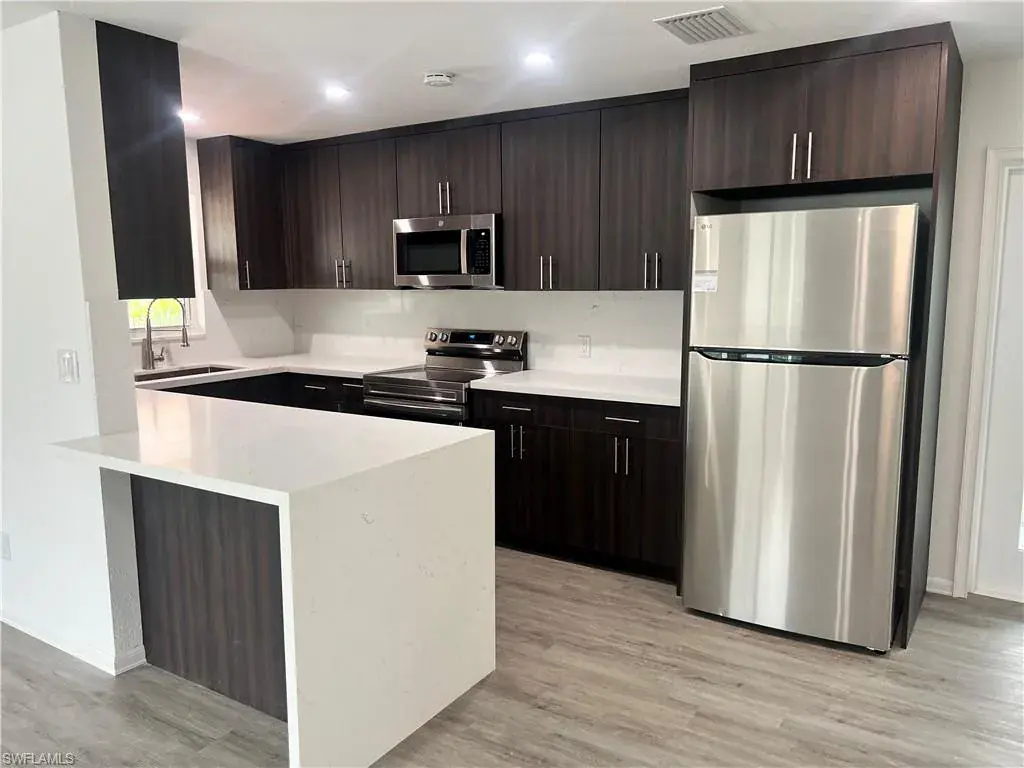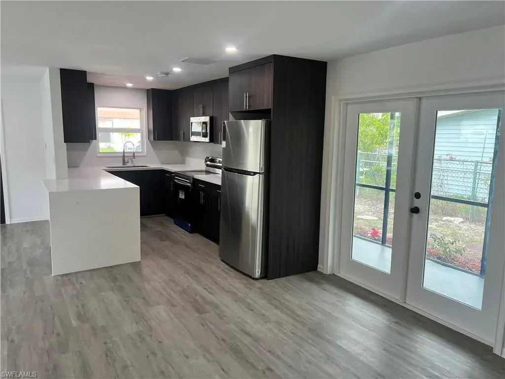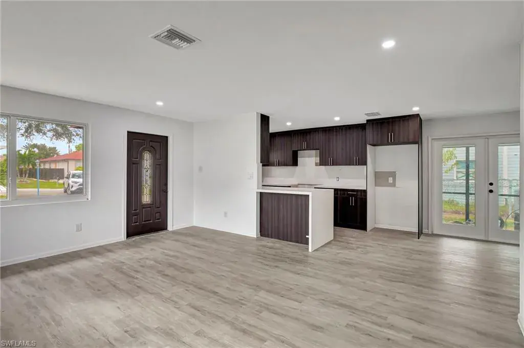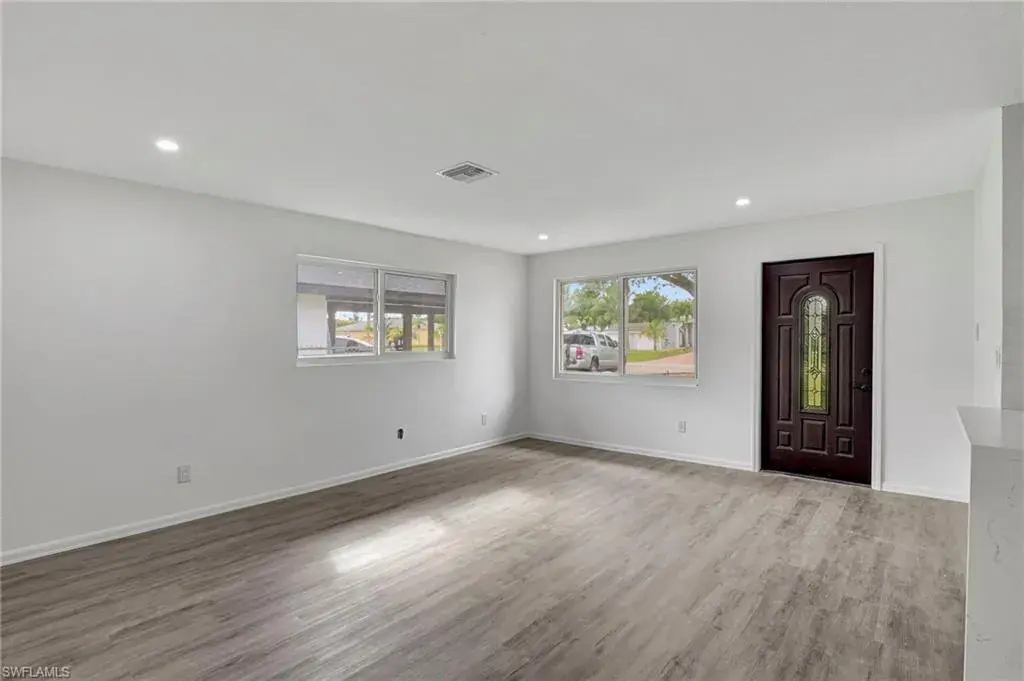 HURRICANE IMPACT WINDOWS AND DOORS provide storm-ready peace of mind. BRAND-NEW 2024 AC UNIT, REFRIGERATOR, AND MICROWAVE deliver modern convenience. NEW ELECTRICAL WIRING, RECESSED LIGHTING, AND PLUMBING throughout ensure safety and reliability. NEWLY REMODELED BATHROOM with updated plumbing offers a fresh and stylish retreat. NEW SPRAY FOAM INSULATION enhances energy efficiency, while LUXURY VINYL FLOORING adds style and durability throughout. DESIGNER KITCHEN WITH NEW CABINETRY AND COUNTERTOPS completes this stunning home. PRIME LOCATION – just 8 miles from Naples beaches and 10 miles from Marco Island, with Freedom Square, Publix, Lowe’s, Walmart, Starbucks, and more only 5 minutes away. MOVE-IN READY and crafted for long-term quality and comfort – schedule your private showing today!