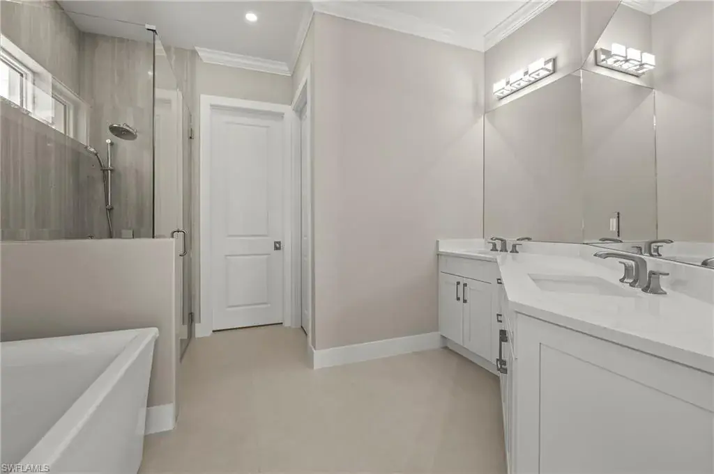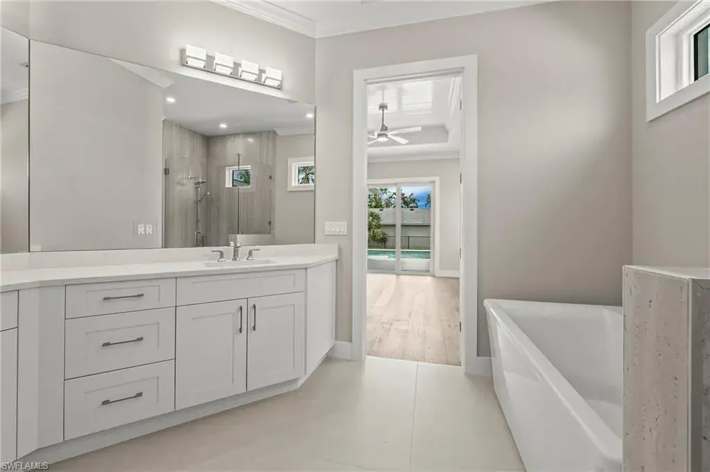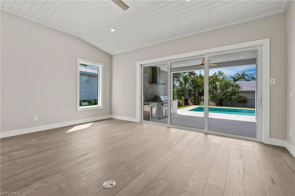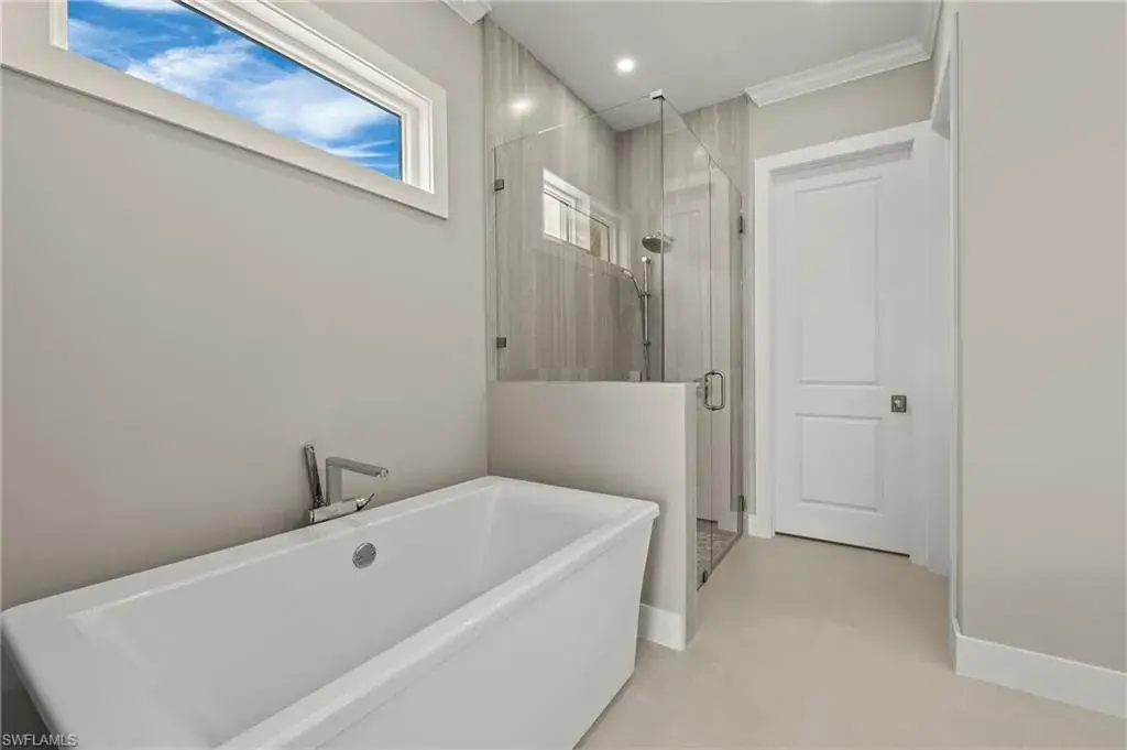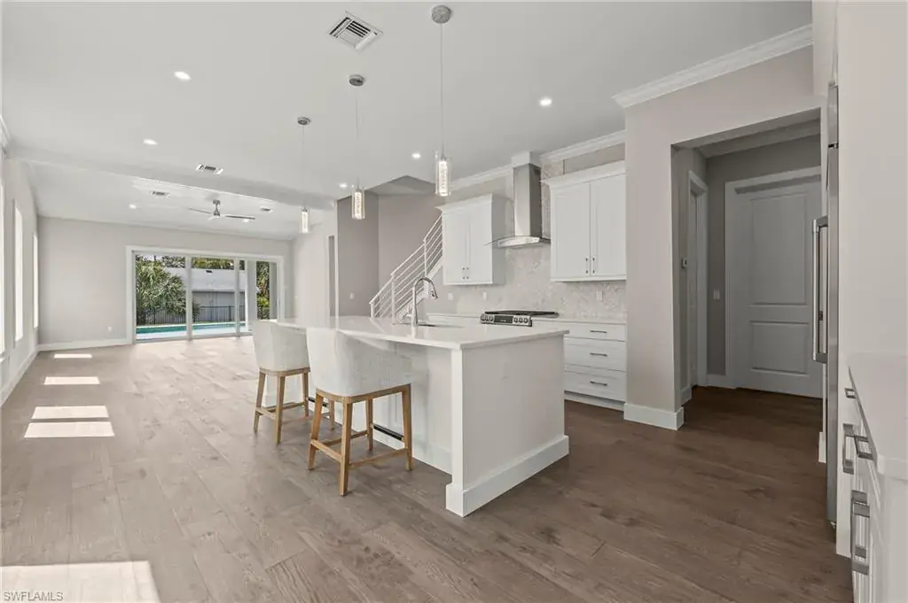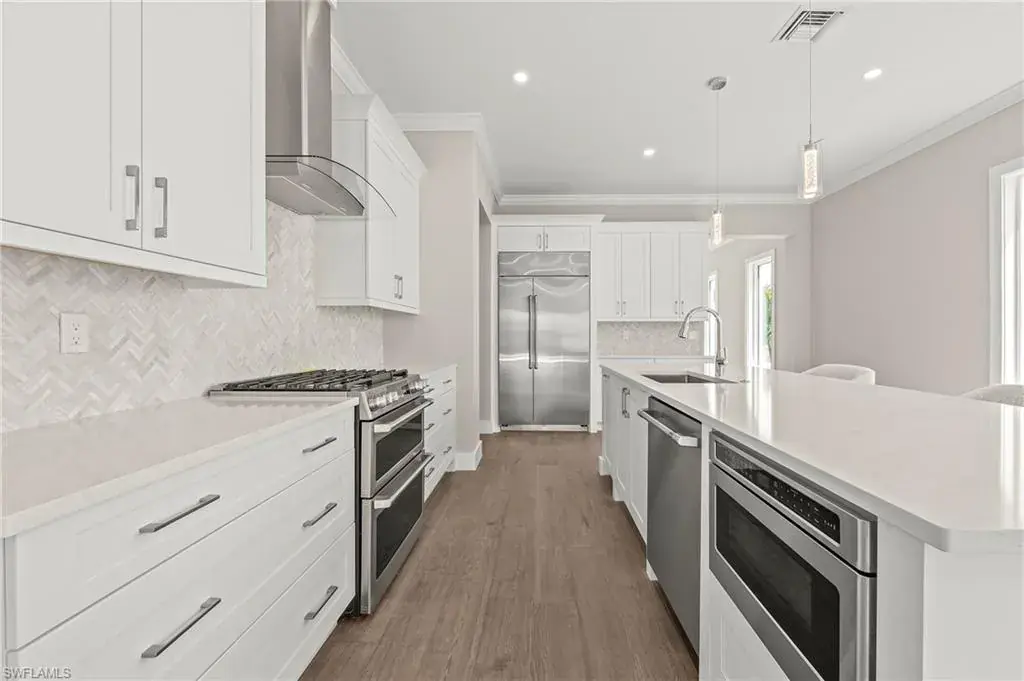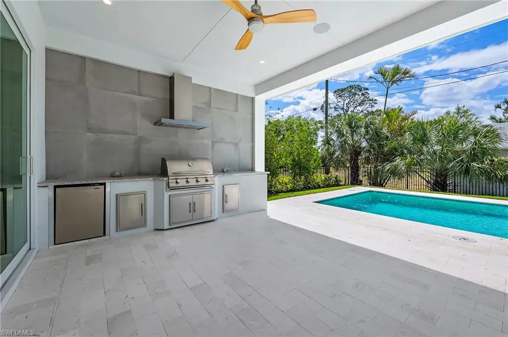Stunning New Construction Home, nestled just a mile from the pristine beaches of Naples along the Gulf of Mexico, offering exceptional coastal living. Built into X-500 zone, over 14 feet above sea level! Two beautiful brand-new properties offered side by side 1134 & 1136 Trail Terrace! Conveniently between US-41 & Goodlett-Frank. This nearly 2500 sq. ft. residence is thoughtfully designed with an open-concept floor plan, featuring 3 spacious bedrooms, an office/den, 3.5 baths, high ceilings, pool, summer kitchen and a large two-car garage. High end finishes include beautiful hardwood floorings, shiplap finishes, chef’s kitchen showcases a quartz countertop island, pendant lighting, GE Café stainless steel appliances, gas cooktop, a Zephyr exhaust hood, soft-close custom cabinetry, a spacious pantry and a tasteful chevron marble tile backsplash, tankless water heater, security system and more. City water and sewer. Situated in the vibrant and growing Naples area, this property is only 3 miles from the renowned 5th Avenue and even closer to the upscale Waterside Shops, known for its fine dining and luxury shopping. The first-floor master suite serves as the perfect retreat, with access to a covered lanai and a beautiful, oversized pool designed by Nassau Pools, ideal for relaxing or entertaining with southern rear exposure for maximum sunshine. The adjoining master bath boasts a freestanding soaking tub, a multi-head shower, dual vanities, and an expansive walk-in closet. On the second floor, two guest suites provide privacy and comfort, each with its own ensuite bathroom and walk-in closet, ensuring ample space for family or visitors. This home is built by Trademark Development Group, renowned for its attention to detail and high-quality craftsmanship. It’s equipped with PGT impact windows and doors, prewiring for advanced technology options, and a monitored central station alarm system for added security. Other notable features include a tankless hot water system, irrigation system, propane gas, fully fenced backyard. No HOA fees or restrictions. Whether you’re looking for a full-time residence or a luxurious vacation home or high-income vacation rental this property offers a blend of sophistication, comfort, and convenience in one of Naples’ most sought-after locations.