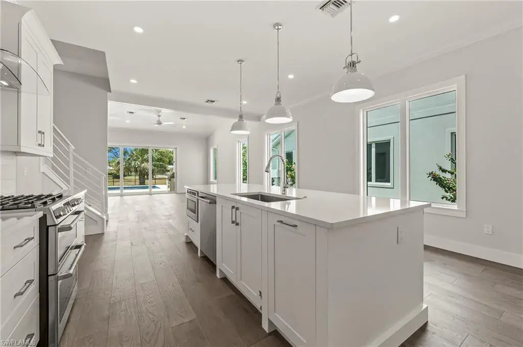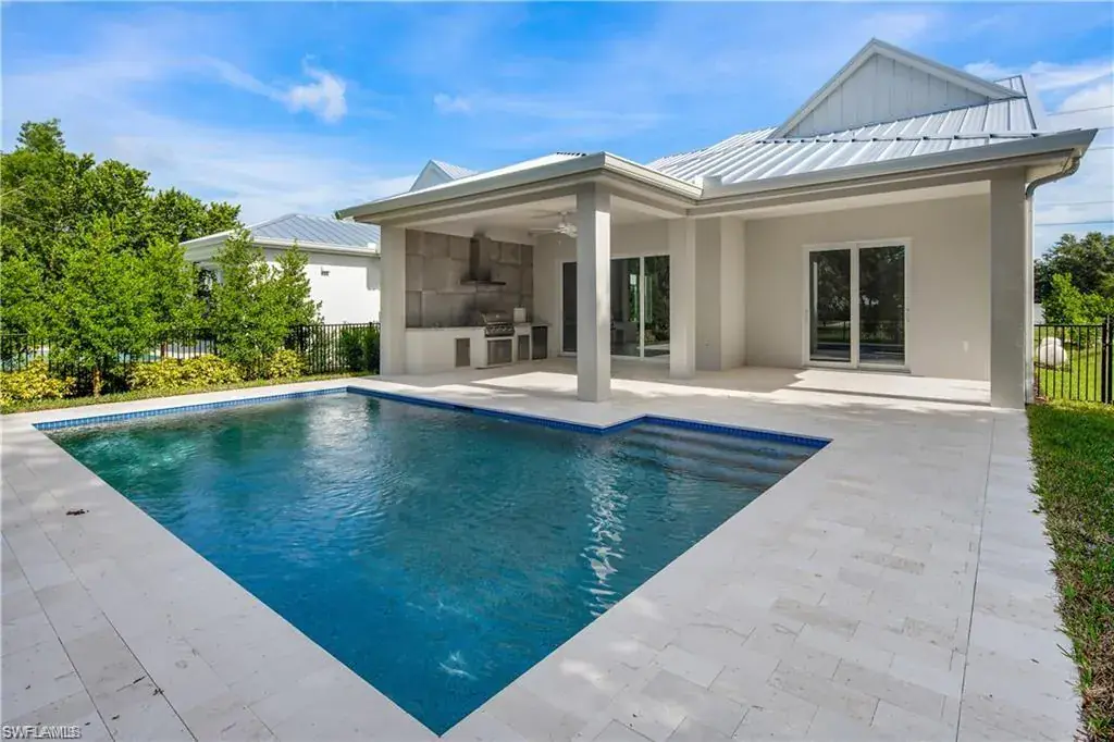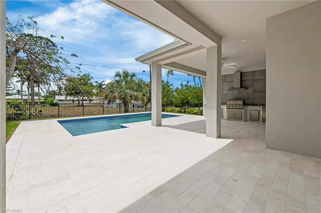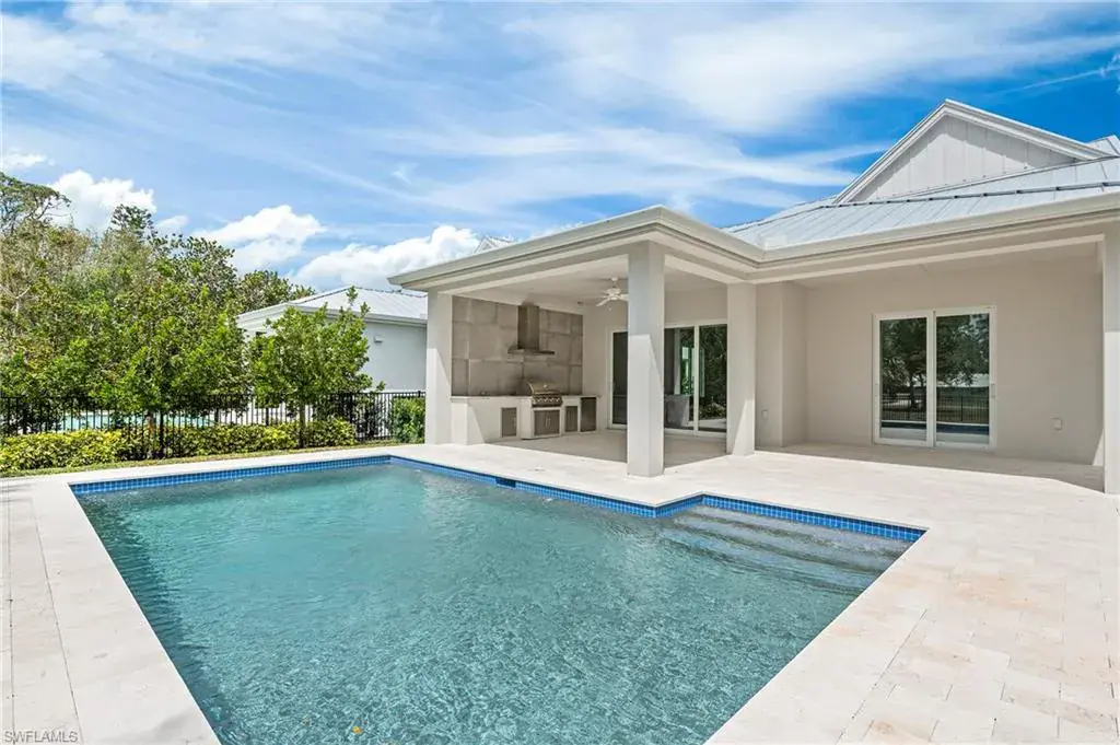 Stunning New Construction Home, nestled just a mile from the pristine beaches of Naples along the Gulf of Mexico, offering exceptional coastal living. Built into X-500 zone, over 14 feet above sea level! Two beautiful brand-new properties offered side by side 1134 & 1136 Trail Terrace! Conveniently between US-41 & Goodlett-Frank. This nearly 2500 sq. ft. residence is thoughtfully designed with an open-concept floor plan, featuring 3 spacious bedrooms, an office/den, 3.5 baths, high ceilings, pool, summer kitchen and a large two-car garage. High end finishes include beautiful hardwood floorings, shiplap finishes, chef’s kitchen showcases a quartz countertop island, pendant lighting, GE Café stainless steel appliances, gas cooktop, a Zephyr exhaust hood, soft-close custom cabinetry, a spacious pantry and a tasteful chevron marble tile backsplash, tankless water heater, security system and more. City water and sewer. Situated in the vibrant and growing Naples area, this property is only 3 miles from the renowned 5th Avenue and even closer to the upscale Waterside Shops, known for its fine dining and luxury shopping. The first-floor master suite serves as the perfect retreat, with access to a covered lanai and a beautiful, oversized pool designed by Nassau Pools, ideal for relaxing or entertaining with southern rear exposure for maximum sunshine. The adjoining master bath boasts a freestanding soaking tub, a multi-head shower, dual vanities, and an expansive walk-in closet. On the second floor, two guest suites provide privacy and comfort, each with its own ensuite bathroom and walk-in closet, ensuring ample space for family or visitors. This home is built by Trademark Development Group, renowned for its attention to detail and high-quality craftsmanship. It’s equipped with PGT impact windows and doors, prewiring for advanced technology options, and a monitored central station alarm system for added security. Other notable features include a tankless hot water system, irrigation system, propane gas, fully fenced backyard. No HOA fees or restrictions. Whether you’re looking for a full-time residence or a luxurious vacation home or high-income vacation rental this property offers a blend of sophistication, comfort, and convenience in one of Naples’ most sought-after locations.
