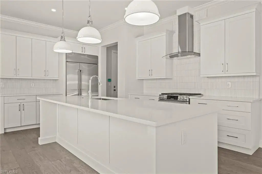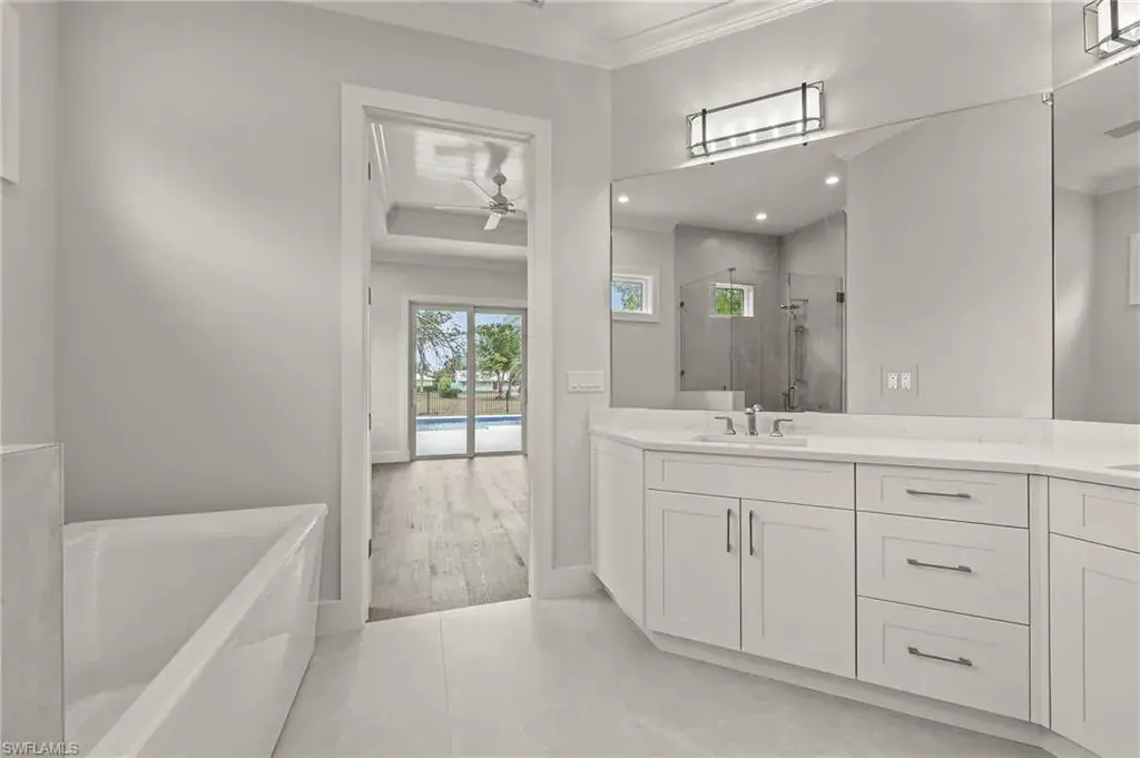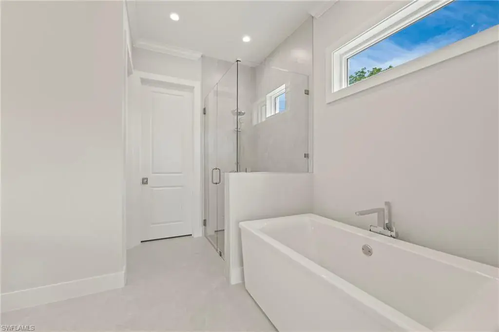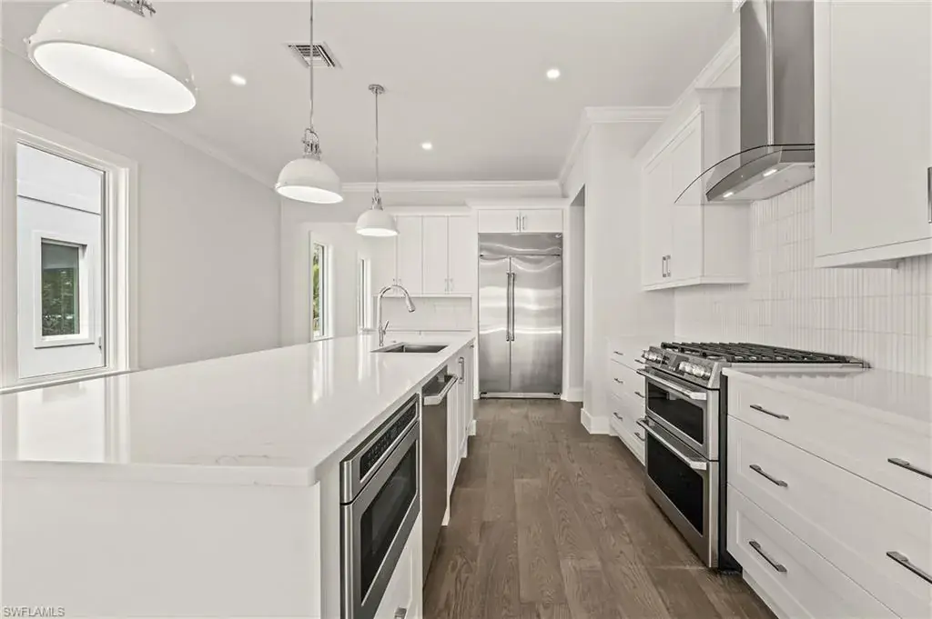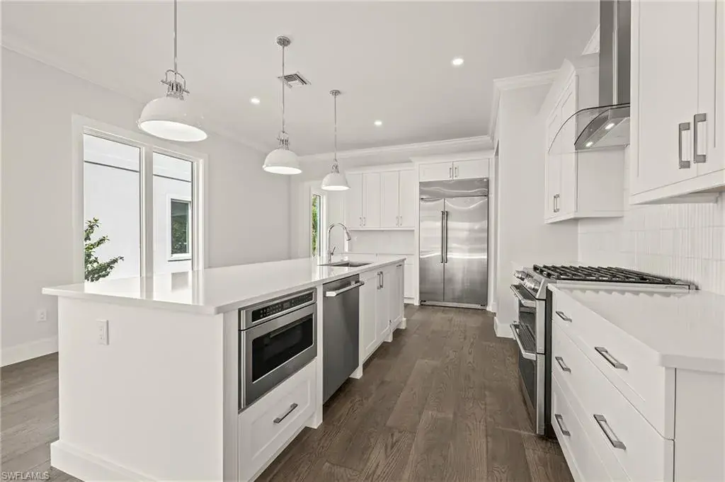 Stunning New Construction Home, nestled just a mile from the pristine beaches of Naples along the Gulf of Mexico, offering exceptional coastal living. Built into X-500 zone, over 14 feet above sea level! Two beautiful brand-new properties offered side by side 1134 & 1136 Trail Terrace! Conveniently between US-41 & Goodlett-Frank. This nearly 2500 sq. ft. residence is thoughtfully designed with an open-concept floor plan, featuring 3 spacious bedrooms, an office/den, 3.5 baths, high ceilings, pool, summer kitchen and a large two-car garage. High end finishes include beautiful hardwood floorings, shiplap finishes, chef’s kitchen showcases a quartz countertop island, pendant lighting, GE Café stainless steel appliances, gas cooktop, a Zephyr exhaust hood, soft-close custom cabinetry, a spacious pantry and a tasteful chevron marble tile backsplash, tankless water heater, security system and more. City water and sewer. Situated in the vibrant and growing Naples area, this property is only 3 miles from the renowned 5th Avenue and even closer to the upscale Waterside Shops, known for its fine dining and luxury shopping. The first-floor master suite serves as the perfect retreat, with access to a covered lanai and a beautiful, oversized pool designed by Nassau Pools, ideal for relaxing or entertaining with southern rear exposure for maximum sunshine. The adjoining master bath boasts a freestanding soaking tub, a multi-head shower, dual vanities, and an expansive walk-in closet. On the second floor, two guest suites provide privacy and comfort, each with its own ensuite bathroom and walk-in closet, ensuring ample space for family or visitors. This home is built by Trademark Development Group, renowned for its attention to detail and high-quality craftsmanship. It’s equipped with PGT impact windows and doors, prewiring for advanced technology options, and a monitored central station alarm system for added security. Other notable features include a tankless hot water system, irrigation system, propane gas, fully fenced backyard. No HOA fees or restrictions. Whether you’re looking for a full-time residence or a luxurious vacation home or high-income vacation rental this property offers a blend of sophistication, comfort, and convenience in one of Naples’ most sought-after locations.