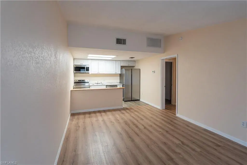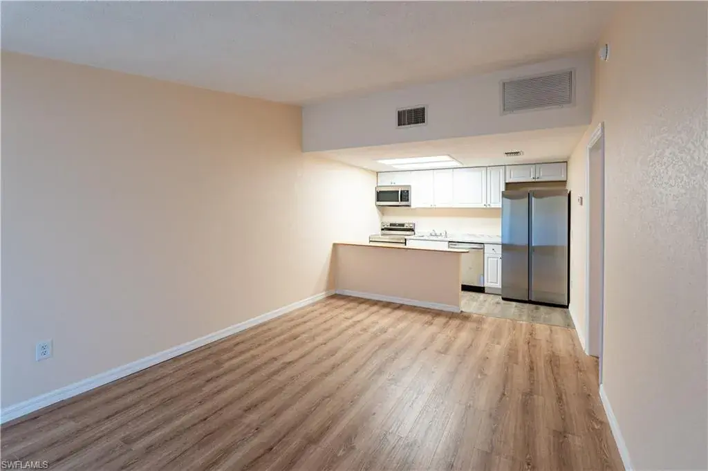 The most affordable one-bedroom end-unit on the market! Excellent investment opportunity. One-story villa with private entrance and huge covered concrete-based lanai. This house has been thoughtfully renovated with a modern kitchen and brand-new stainless steel appliances. A new laminate flooring and a freshly painted interior. Enjoy a fully renovated bathroom with a walk-in shower with new fixtures. All the rooms are spacious with plenty of natural light: New A/C 2023, a new water heater 2023. Relax and enjoy your own private screened lanai, perfect for outdoor gatherings. HOA fees include reserves/repairs, water/sewer, community pool & shuffleboard court. The neighborhood is a quick turn off 41, close to Naples downtown (7 miles to 5th Ave and beaches), and not far from Marco Island. Close to shopping/supermarkets/restaurants.
