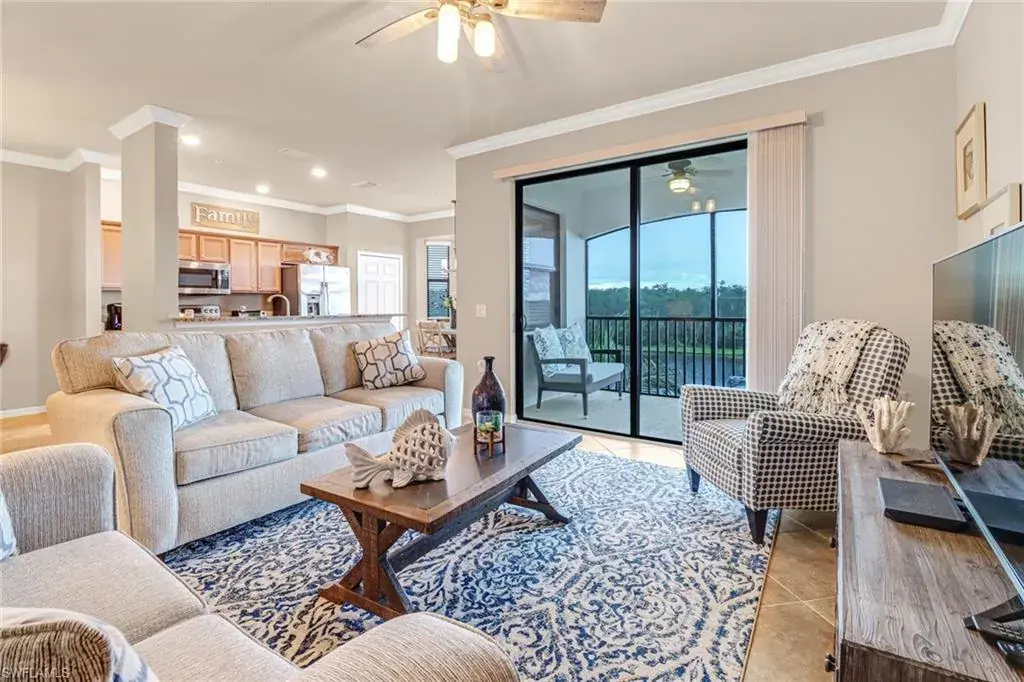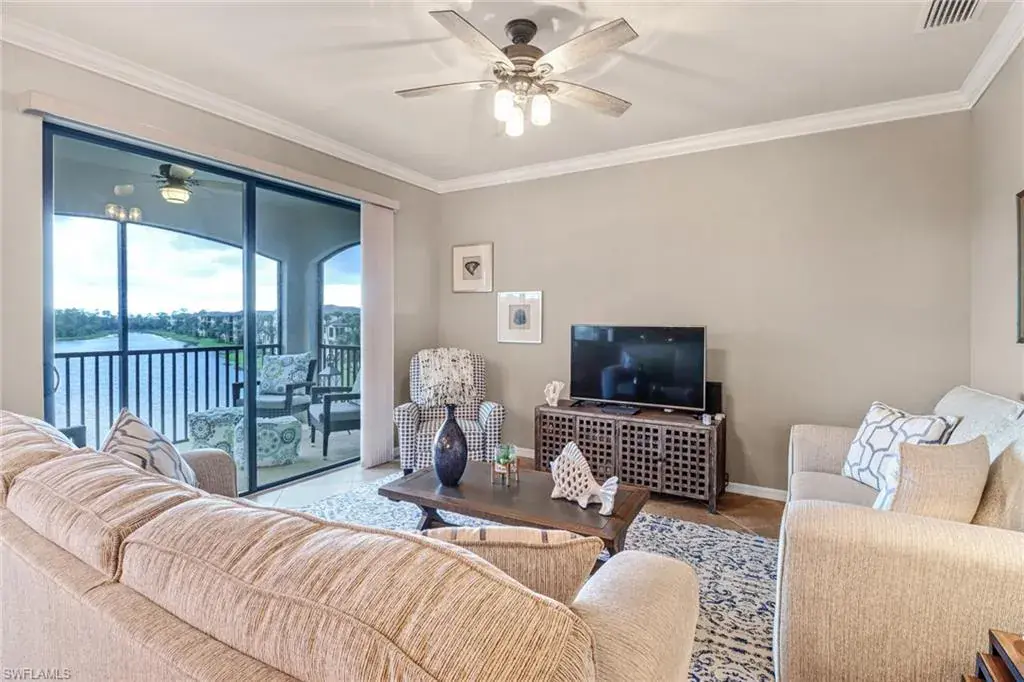 THEY SAY IT’S ALL ABOUT THE VIEW WHEN IN PARADISE AND THIS “NEW TO MARKET” 4th FLOOR CONDO WITH GORGEOUS LAKE AND PRESERVE VIEWS DOES NOT DISAPPOINT. Absolutely stunning TURNKEY 2 bedroom, 2 bath beautifully decorated unit, complete with open floor plan, stainless steel appliances, granite countertops, crown molding and custom light fixtures and fans. Additional features include a private storage unit and assigned covered parking. The Treviso Bay lifestyle represents the best of the best for SWFL communities. Enjoy restaurants and bars, 5 community pools, clubhouse, full-service salon and spa, state-of-the-art workout facility, pickleball, tennis, bocce as well as scenic walking paths and trails. You never have to leave the community! Conveniently located within 10-15 minutes of Naples and Marco beaches, 5th Avenue shopping, dining, and more. Naples is America’s number 1 spot for Fishing. This is a Social membership so all amenities, except golf, are included. If you have been waiting to own a second home in SWFL or want an amazing investment property, this MOVE IN READY unit is it!