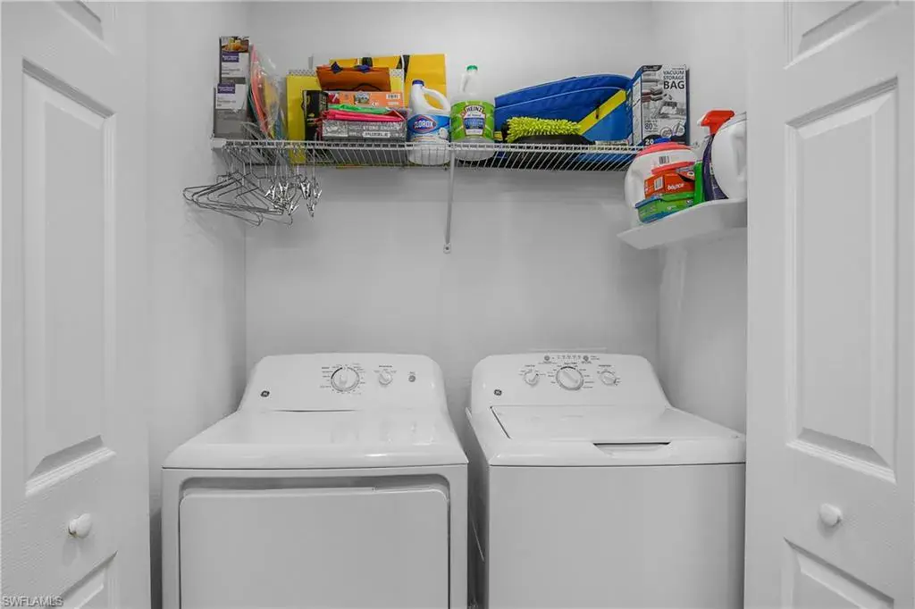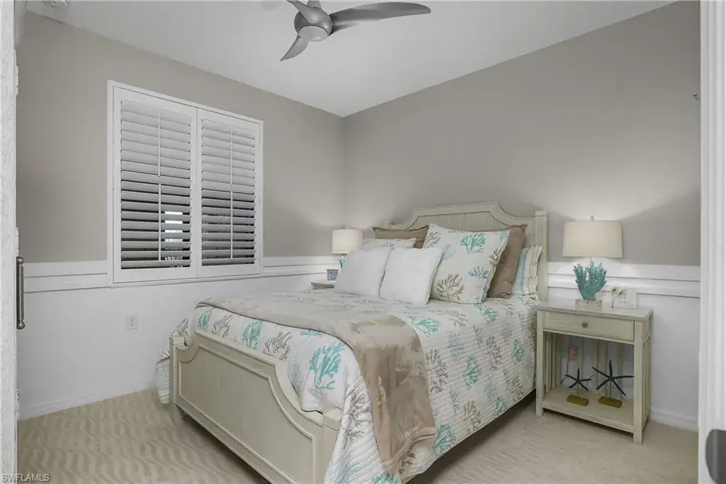 Experience resort-style living at its finest in this tastefully & functionally upgraded 2-bedroom, 2-bath second-floor condo in Treviso Bay, offering peaceful and private lake and preserve views along with a coveted social membership. Inside you’ll find newer interior paint, custom trim, designer lights and fans, and new carpet in the spare bedroom. The primary suite is a true retreat with two custom California closets and a seamless glass shower door. The washer and dryer are thoughtfully placed in the second bath, keeping them out of sight yet easily accessible. Additional thoughtful upgrades include plantation shutters on all windows, custom window treatments in the main living space, shelving in the storage room, no-see-um screens and a sun shade on the lanai, plus an invisible screen at the front door for breezy cross-ventilation.
