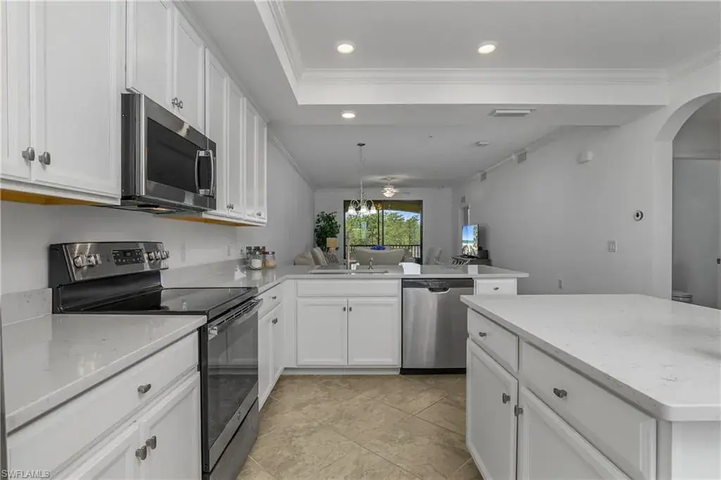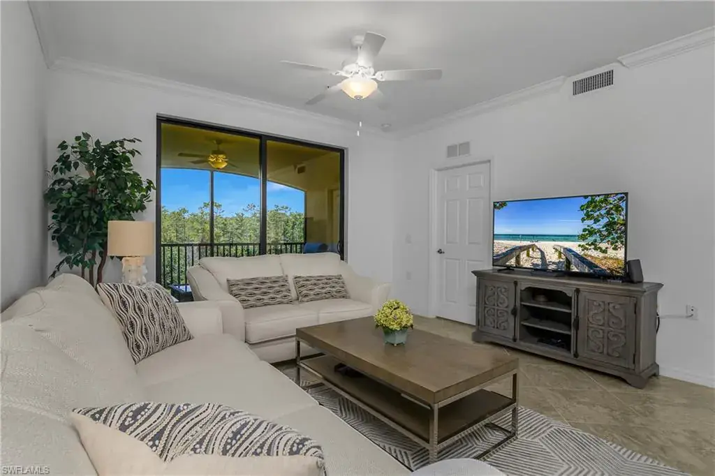 Live like others vacation in this beautiful 2 bed / 2 bath Arbor model condo featuring an open and airy floor plan filled with natural light. This furnished condo provides a welcoming and stylish retreat with a neutral palette and thoughtful finishes throughout. Enjoy your morning coffee or afternoon reading on your peaceful screen lanai and enjoy the sights and sounds of nature as you admire the lake and Rookery Bay Preserve. As a social membership property, residents enjoy access to all of Treviso Bay’s world-class amenities without the cost of bundled golf. Treviso Bay offers a resort-style experience with a stunning clubhouse, lagoon resort pool, hot tub, outdoor poolside restaurant and bar, full-service spa, cutting-edge fitness center, 8 tennis and 8 pickleball courts, 3 bocce courts, and miles of walking and biking paths. The main clubhouse overlooks the private TPC golf course (available to social members May – October) and offers indoor and outdoor dining and bars, a large event room, private dining room, activities room, library, business center, lounge locker rooms, a golf pro shop, and Arthur’s snack shop. The community’s social calendar is full of events, dining options, clubs, leagues, and activities, creating a vibrant lifestyle just minutes from downtown Naples and the beaches.